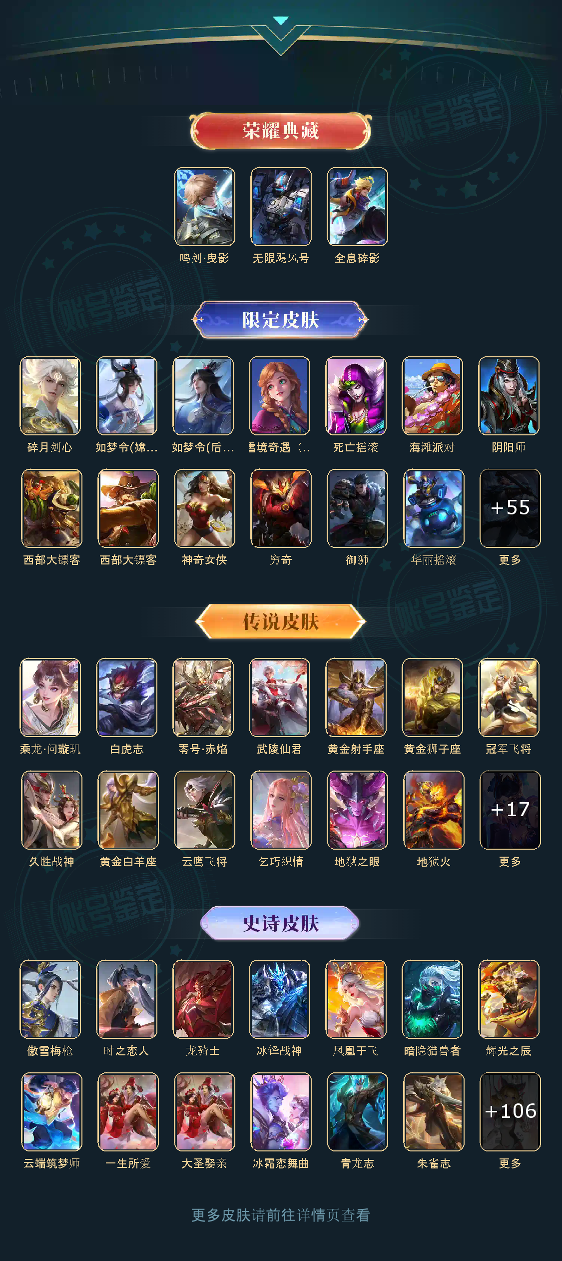 贵族等级V10,英雄数量123,典藏皮肤数3,皮肤数量389,至尊宝/无限飓风号/鸣剑·曳影