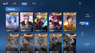贵族等级V10,英雄数量123,典藏皮肤数5,皮肤数量443,杀手不太冷/大秦宣太后/全息碎影/星域神启