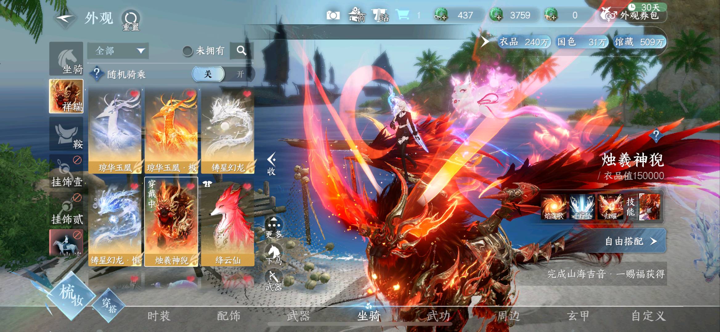 【苹果】 逆水寒手游顶奢账号 已用1200加天赏 龙凤神猊15W 神兵橙武 满衣柜 240W衣品 31W国色
