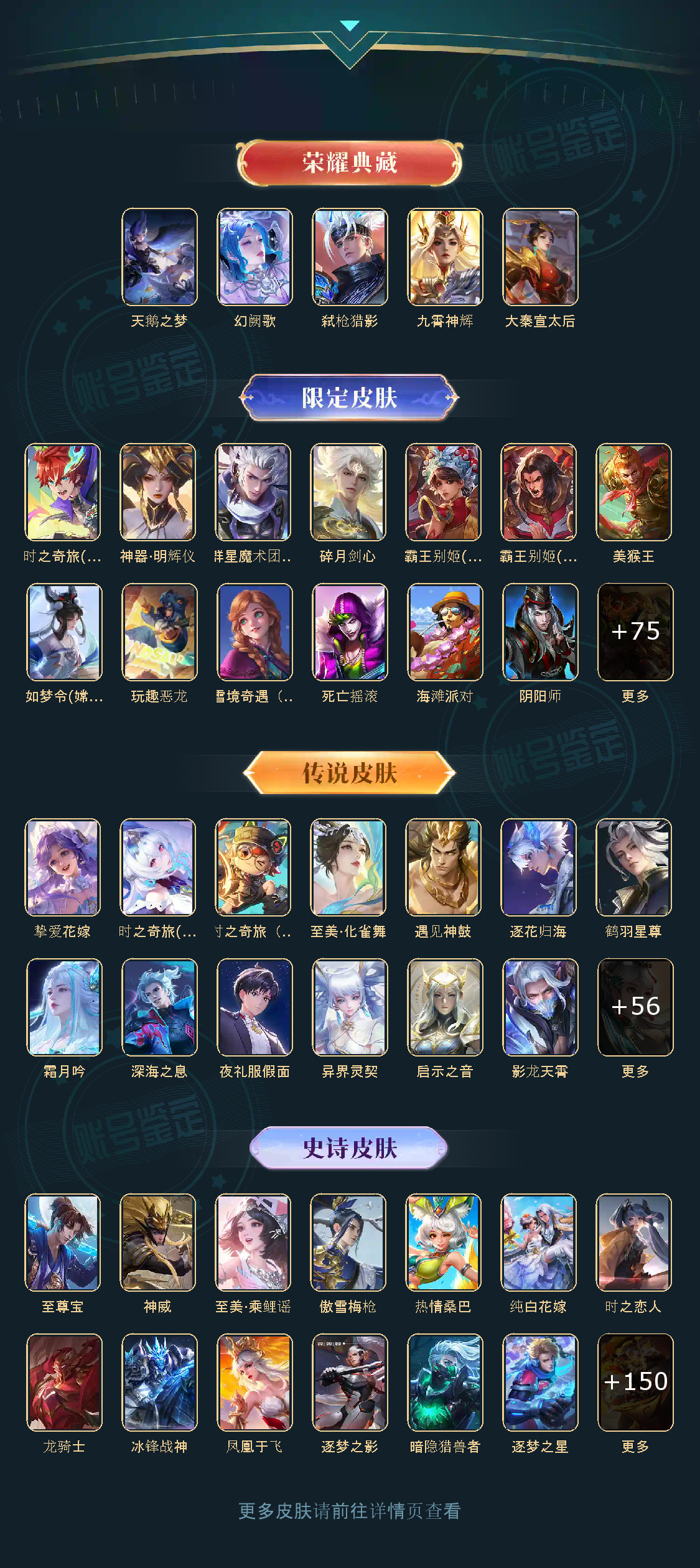 贵族等级V10,英雄数量124,典藏皮肤数5,皮肤数量515,天鹅之梦/大秦宣太后
