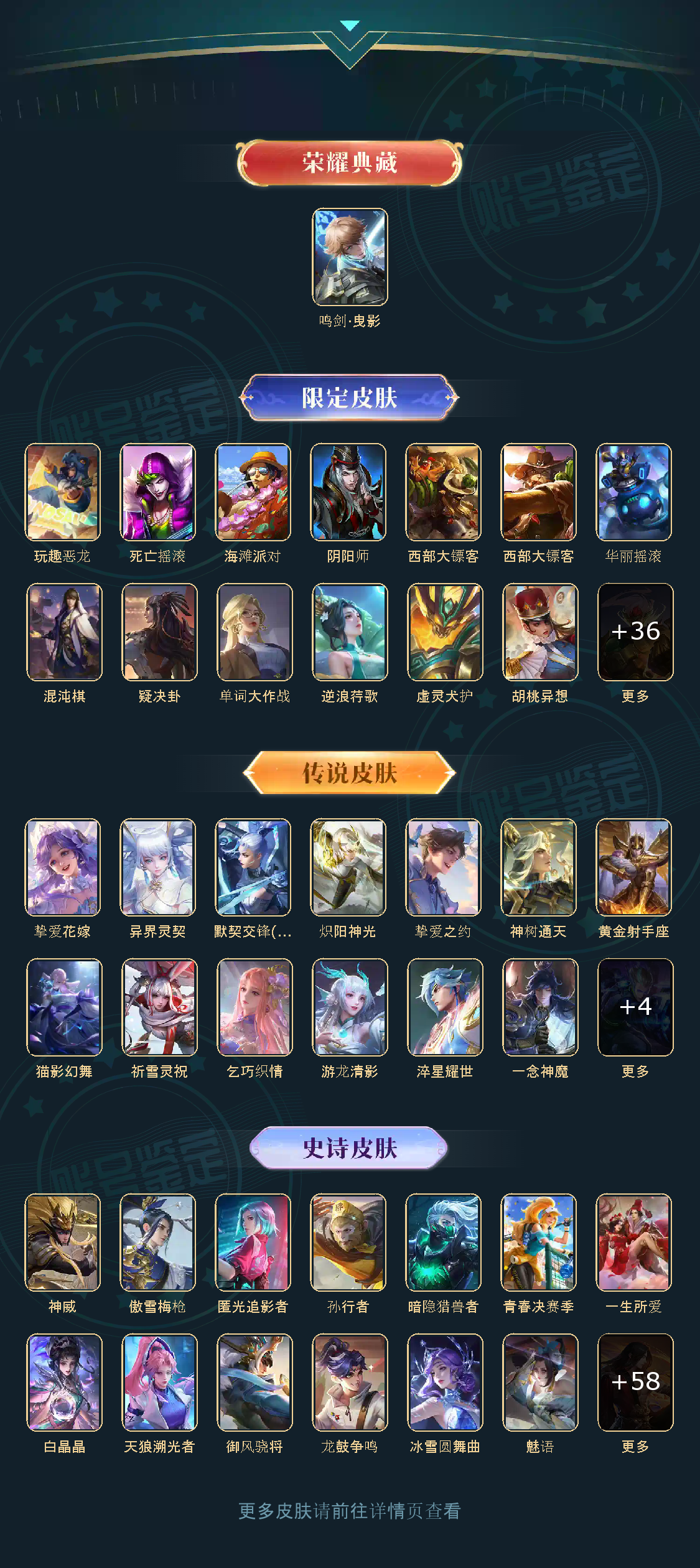 纯白花嫁/天魔缭乱/至尊宝/真爱至上/圣诞老人/热情桑巴/梅西/青龙志/白虎志/朱雀志/久胜战神/飞衡/匿光追影者/鸣剑·曳影/星域神启/李逍遥/武圣/玉兔公主/补天/异界灵契/神威/启示之音/傲雪梅枪/时雨天司