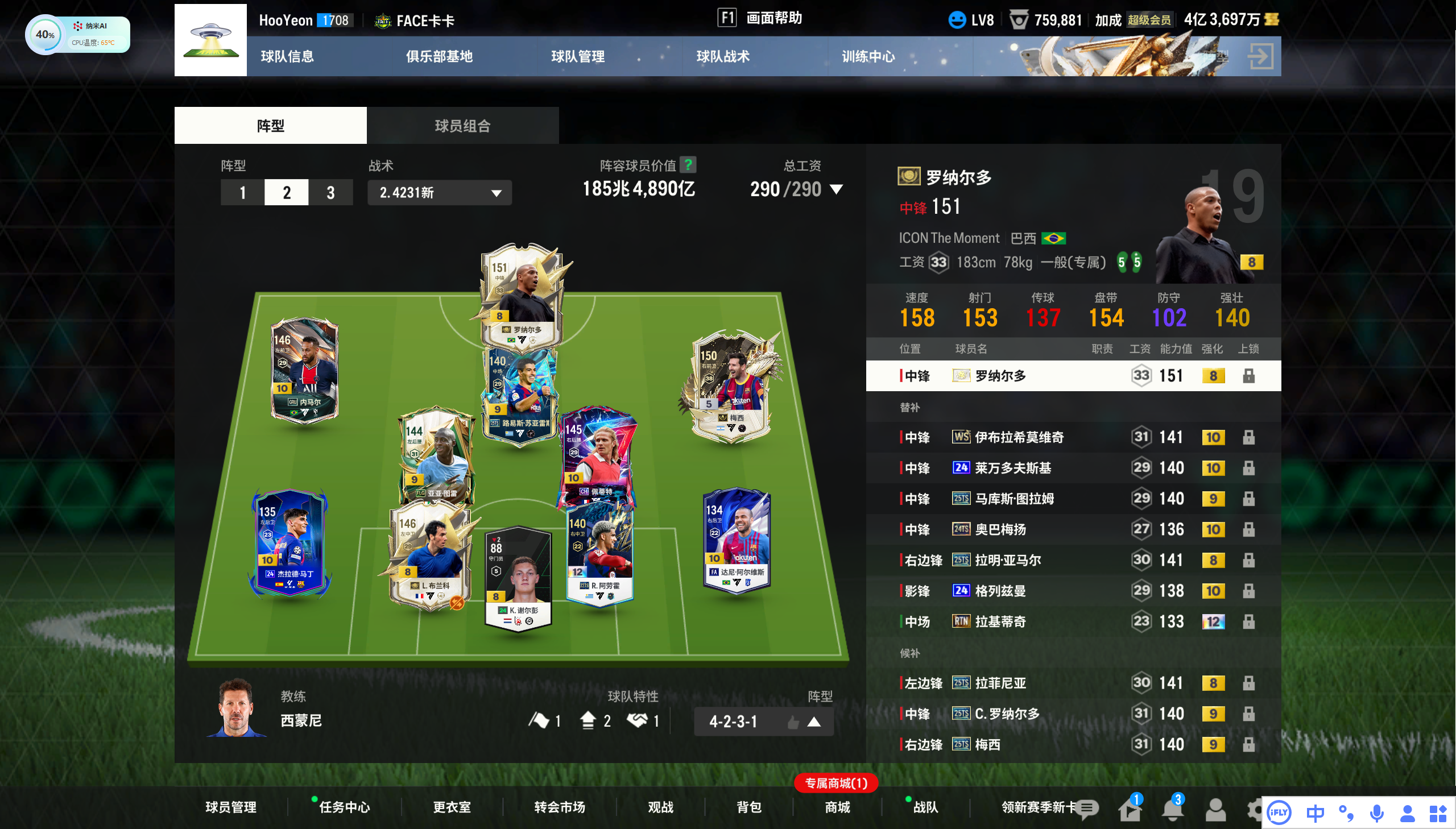 230兆阵容时刻大罗8梅西5巴萨套,25tots9卡套!如需验证绿泡联系!!一定联系我,我给你验证码