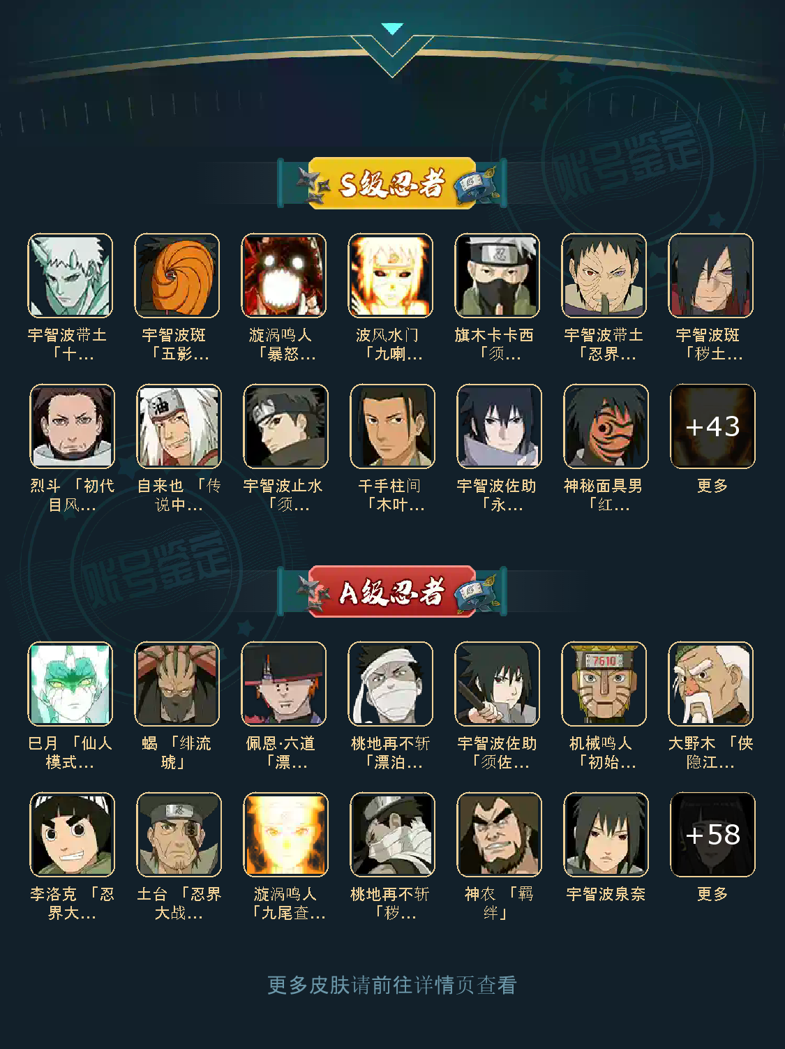 52S 64A 345忍者 金身水门 桃地再不斩「漂泊武士」/蝎 「绯流琥」/佩恩·六道 「漂泊浪客」/神秘面具男 「红夜之刃」/宇智波斑 「秽土转生·解」/自来也 「传说中的三忍」/波风水门「秽土转生」/千手柱间 「木叶创立」/宇智波止水 「须佐能乎」/漩涡鸣人 「九喇嘛连结」/大筒木舍人 「最终章」/宇智波斑「白面具」/艾 「忍界大战」/宇智波带土「忍界大战」/三代目风影 「秽土转生」/宇智波佐助 「永恒万花筒」/大筒木桃式/佩恩·天道「超」/旗木卡卡西 「须佐能乎」