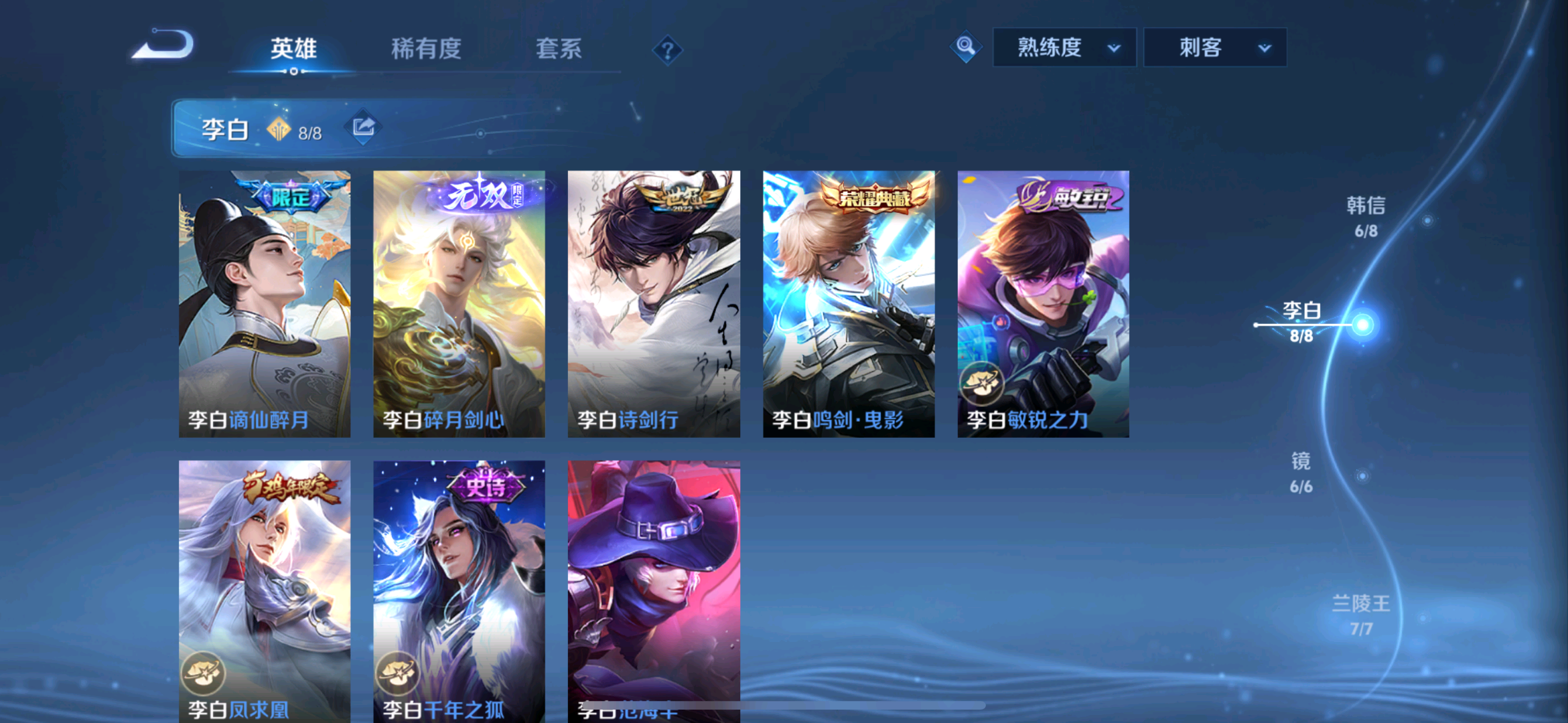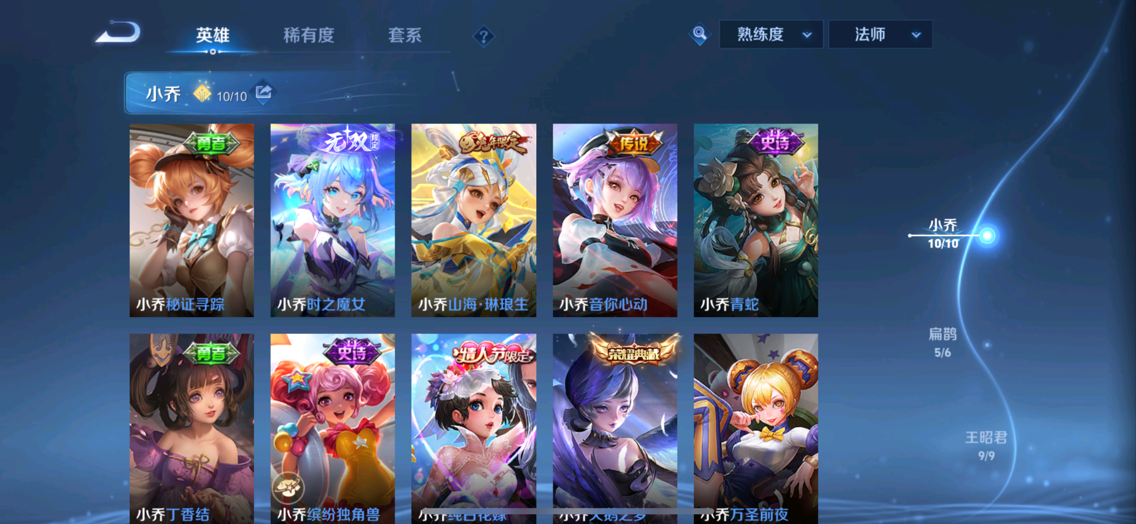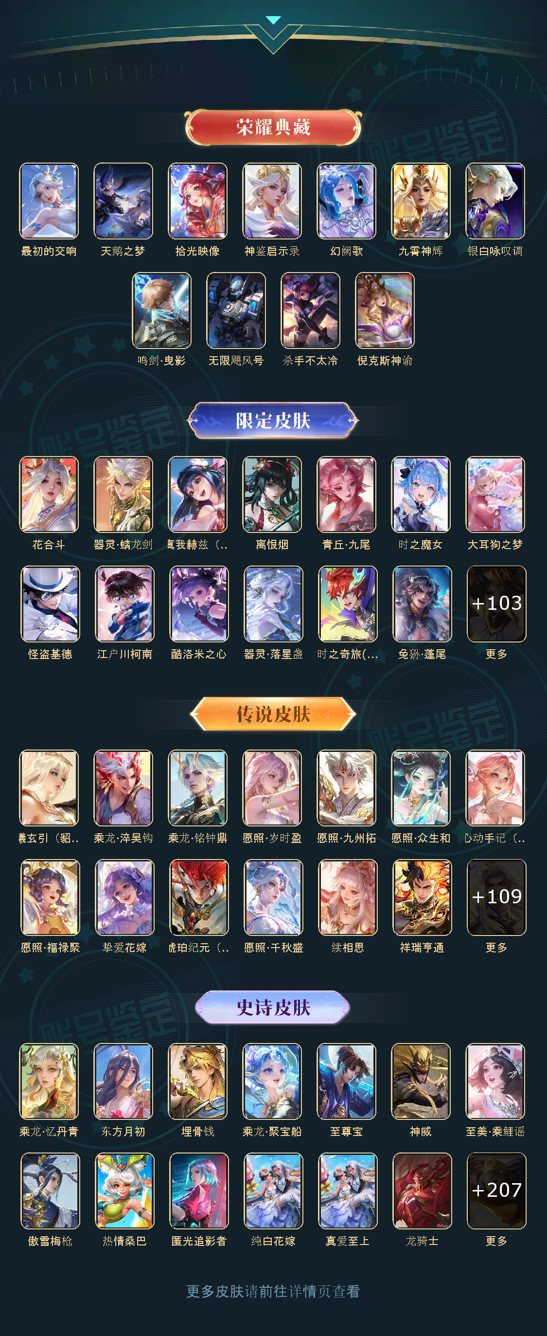 贵族等级V10无双贵族,英雄数量125,典藏皮肤数11,皮肤数量665,纯白花嫁/至尊宝/真爱至上/热情桑巴/青龙志/朱雀志/久胜战神/飞衡/器灵·螭龙剑/愿照·九州拓/愿照·众生和/匿光追影者/冥王哈迪斯/神器·明辉仪/鸣剑·曳影/群星魔术团(上官婉儿)/乘龙·问璇玑/神鉴启示录/心动手记(朵莉亚)/时之奇旅(大乔)/真我赫兹(瑶)/时之奇旅(鲁班七号)/落雪白狼/愿照·福禄聚/无双飞将/至美·化雀舞/时之祈愿瑶/遇见神鼓/李逍遥/群星魔术团(云中君)/花合斗/涂山红红/霜北刀/逐花归海/器灵·落星盏/琥珀纪元(马超)/武圣/幻阙歌/至美·乘鲤谣/琥珀纪元(伽罗)/鹤羽星尊/时之奇旅(孙策)/曦玄引(貂蝉)/离恨烟/碎月剑心/愿照·千秋盛/霜月吟/雪境奇遇(甄姬)/乘龙·淬吴钩/东方月初/拾光映像/乘龙·铭钟鼎/妄想实况/大耳狗之梦/埋骨钱/深海之息/最初的交响/黄金天蝎座/夜礼服假面/兔狲·蓬尾/玉兔公主/补天/怪盗基德/愿照·岁时盈/乘龙·聚宝船/惊梅引/续相思/异界灵契/神威/炽阳神光/启示之音/乘龙·忆丹青/影龙天霄/心动手记(海诺)/九霄神辉/青丘·九尾/江户川柯南/鹤归松栖(云缨)/银白咏叹调/愿照·山河定/酷洛米之心/时之魔女/傲雪梅枪/时雨天司/纯白花嫁/至尊宝/真爱至上/热情桑巴/青龙志/朱雀志/久胜战神/飞衡/器灵·螭龙剑/愿照·九州拓/愿照·众生和/匿光追影者/冥王哈迪斯/神器·明辉仪/鸣剑·曳影/群星魔术团(上官婉儿)/乘龙·问璇玑/神鉴启示录/心动手记(朵莉亚)/时之奇旅(大乔)/真我赫兹(瑶)/时之奇旅(鲁班七号)/落雪白狼/愿照·福禄聚/无双飞将/至美·化雀舞/时之祈愿瑶/遇见神鼓/李逍遥/群星魔术团(云中君)/花合斗/涂山红红/霜北刀/逐花归海/器灵·落星盏/琥珀纪元(马超)/武圣/幻阙歌/至美·乘鲤谣/琥珀纪元(伽罗)/鹤羽星尊/时之奇旅(孙策)/曦玄引(貂蝉)/离恨烟/碎月剑心/愿照·千秋盛/霜月吟/雪境奇遇(甄姬)/乘龙·淬吴钩/东方月初/拾光映像/乘龙·铭钟鼎/妄想实况/大耳狗之梦/埋骨钱/深海之息/最初的交响/黄金天蝎座/夜礼服假面/兔狲·蓬尾/玉兔公主/补天/怪盗基德/愿照·岁时盈/乘龙·聚宝船/惊梅引/续相思/异界灵契/神威/炽阳神光/启示之音/乘龙·忆丹青/影龙天霄/心动手记(海诺)/九霄神辉/青丘·九尾/江户川柯南/鹤归松栖(云缨)/银白咏叹调/愿照·山河定/酷洛米之心/时之魔女/傲雪梅枪/时雨天司
