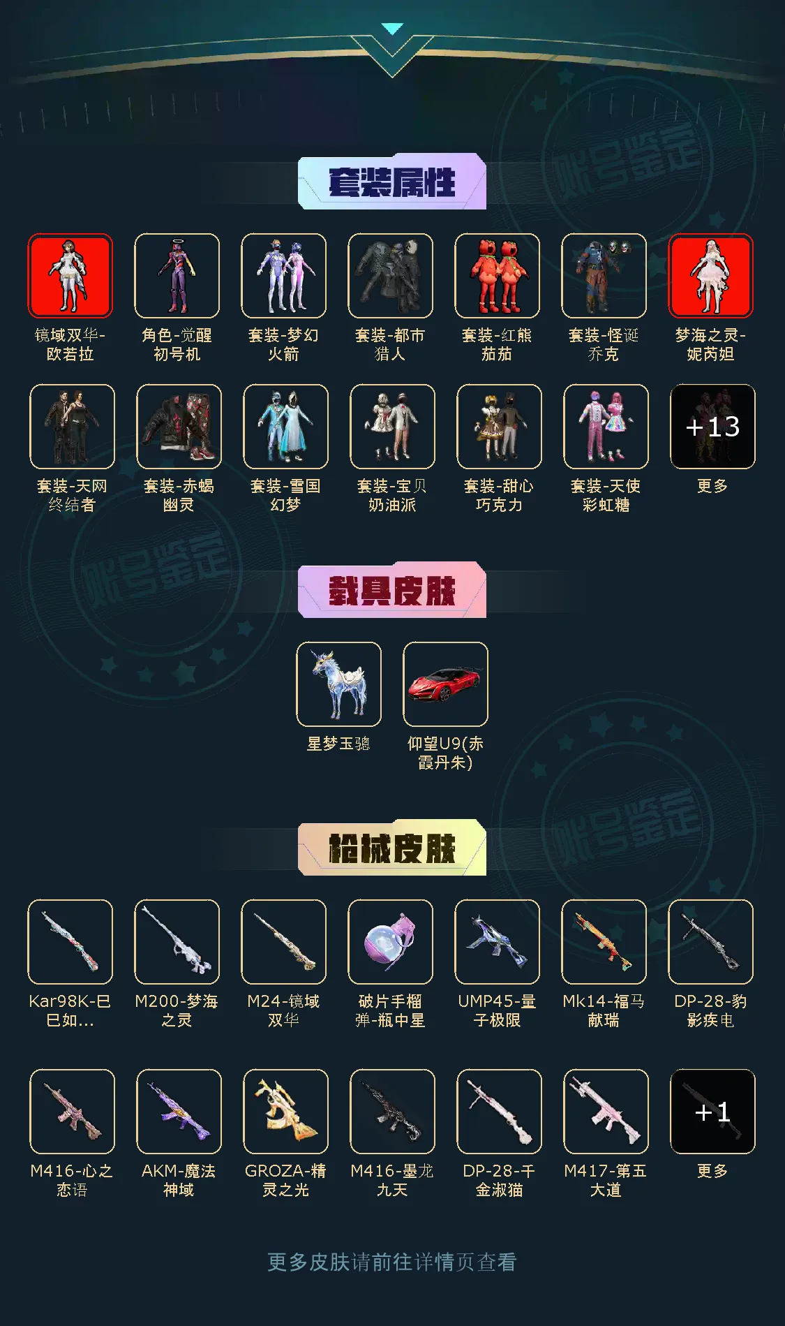 【粉色枪皮】M416-心之恋语/AKM-魔法神域/M416-墨龙九天/GROZA-精灵之光/Kar98K-巳巳如意/M24-镜域双华/M200-梦海之灵/M417-第五大道/UMP45-量子极限/SPAS-12-蜜语绒猫/DP-28-千金淑猫/破片手榴弹-瓶中星球