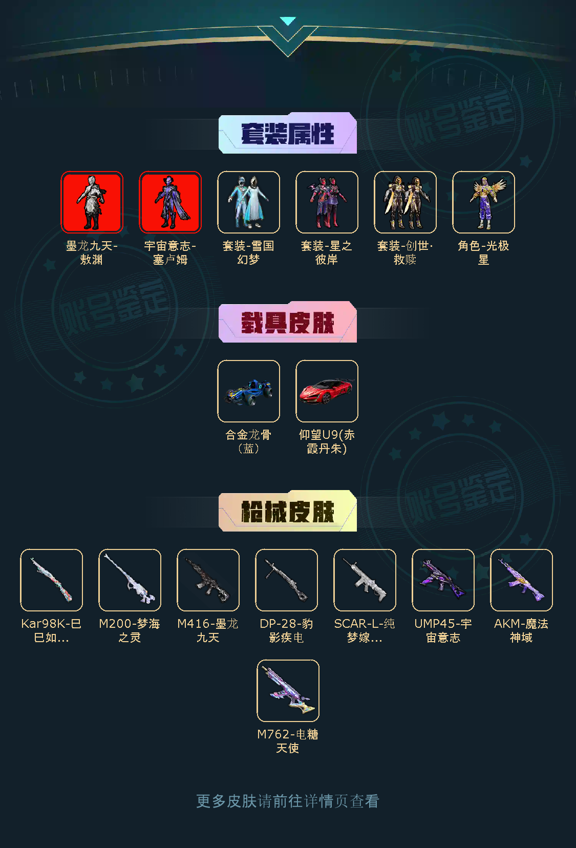 【粉色枪皮】AKM-魔法神域/SCAR-L-纯梦嫁纱/M416-墨龙九天/M762-电糖天使/Kar98K-巳巳如意/M200-梦海之灵/UMP45-宇宙意志