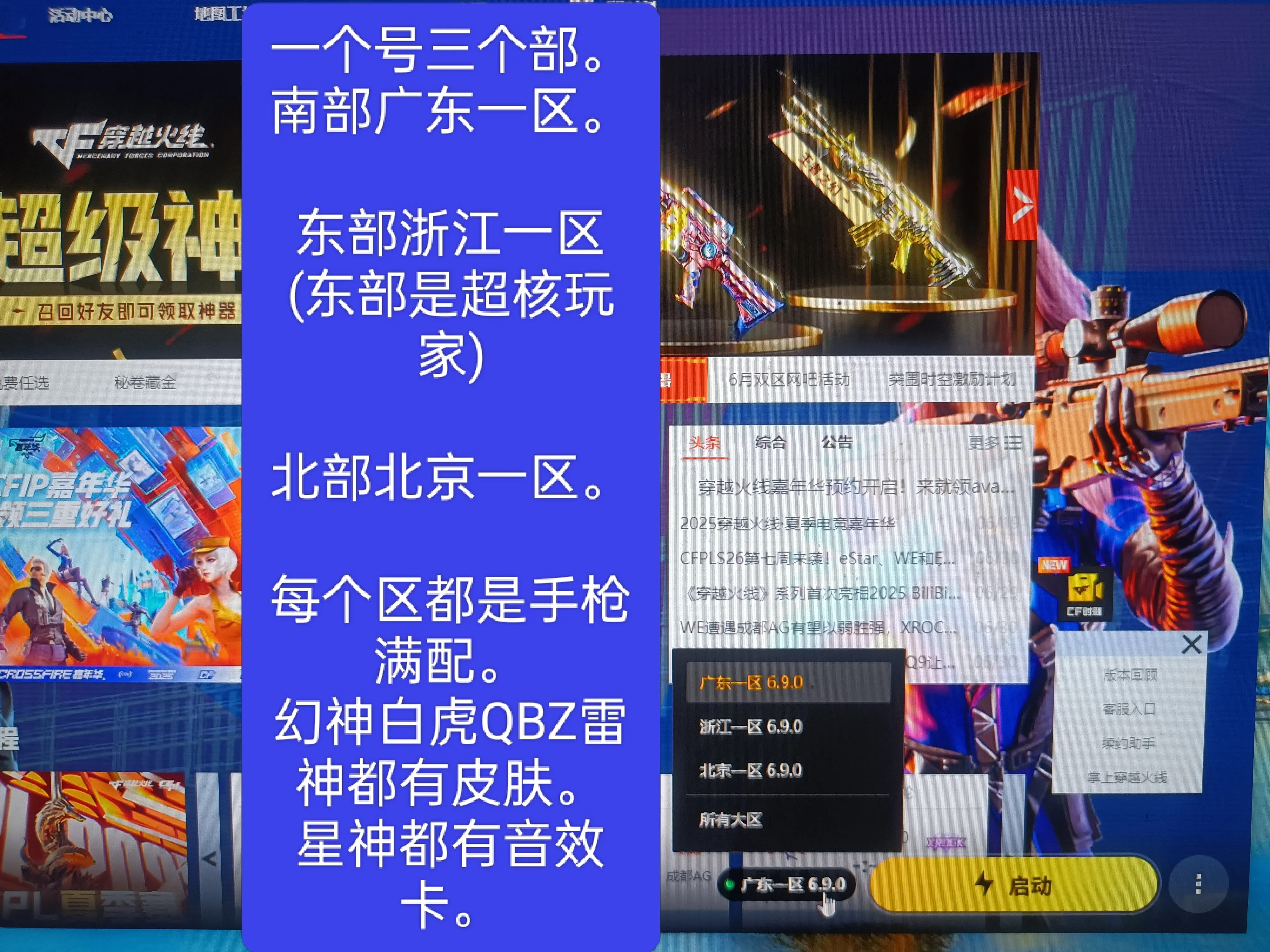 每个区都有幻神星神白虎QBZ蝴蝶刀,手枪很多把。