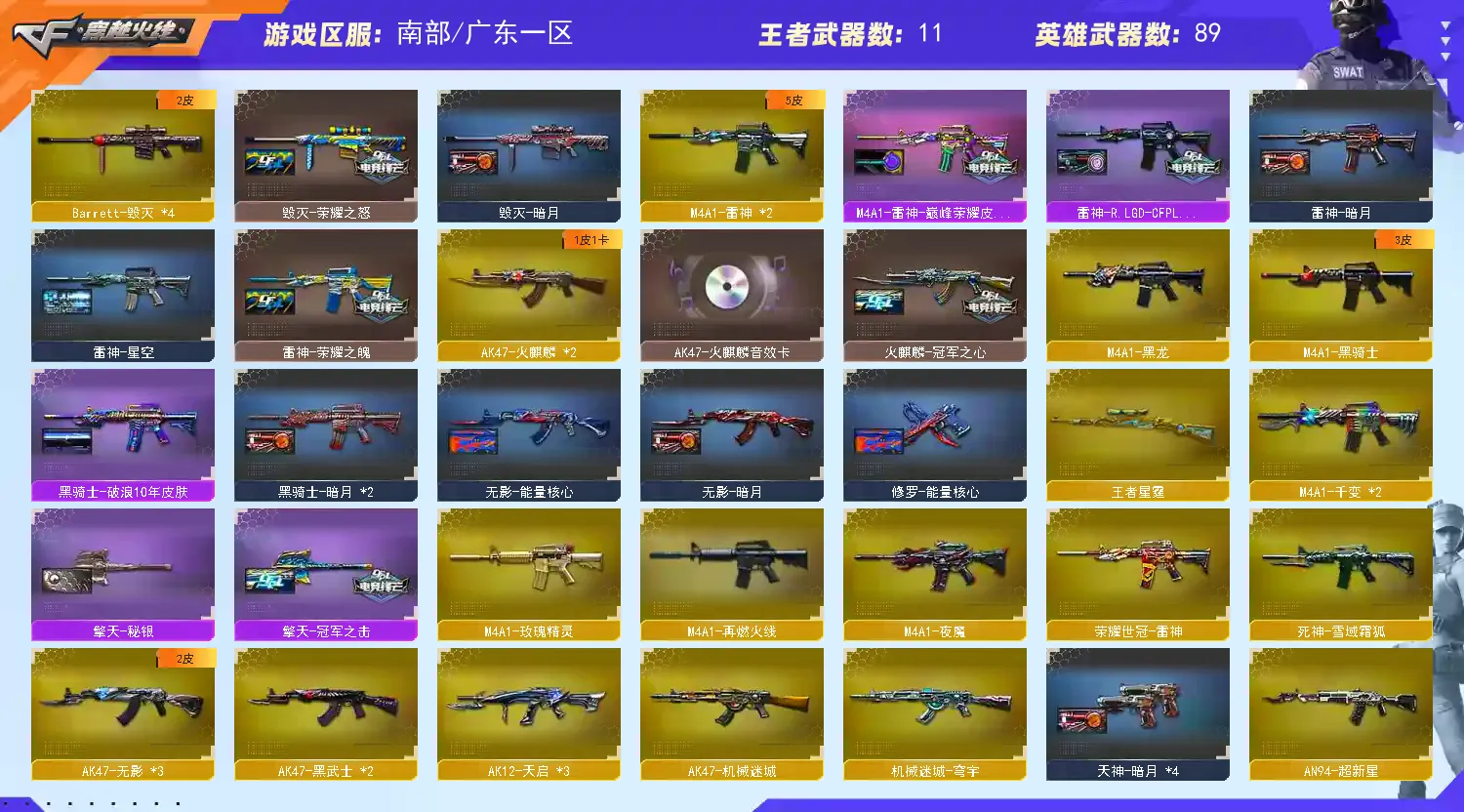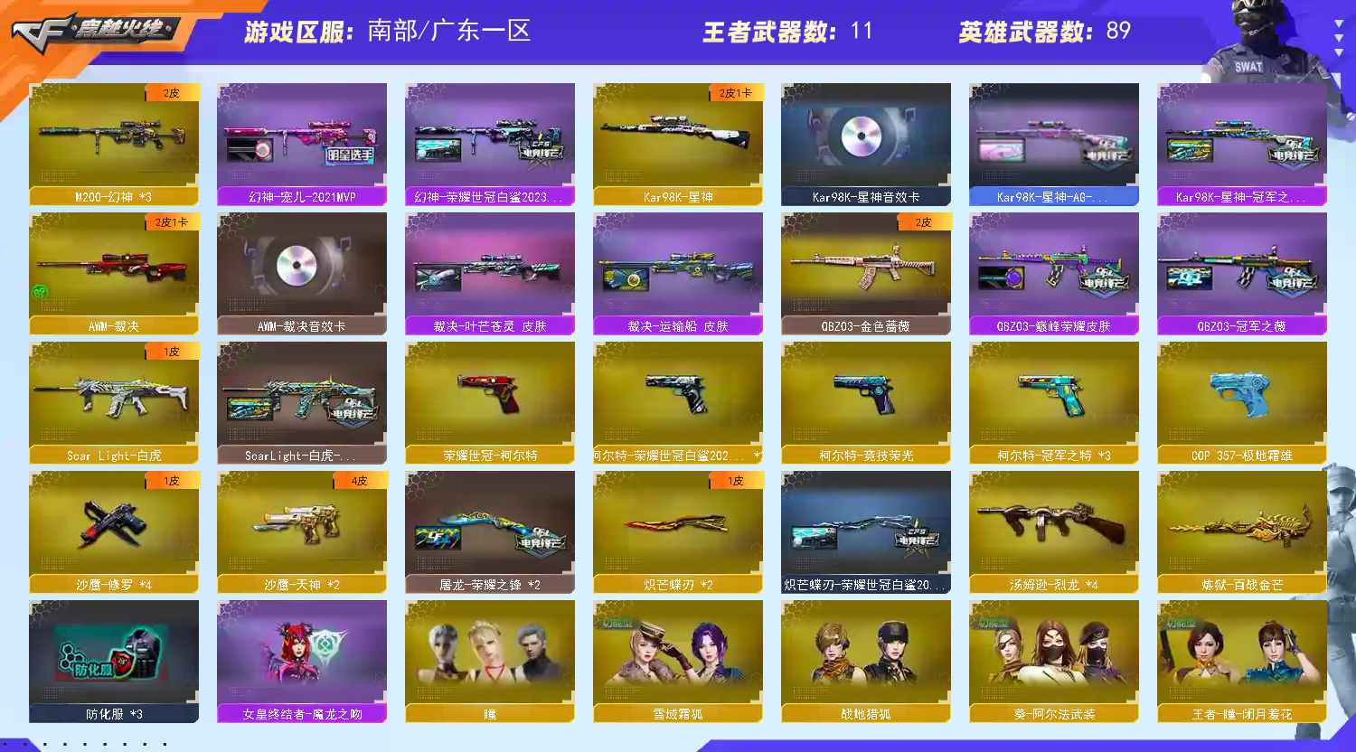 【允许排位】南部②把幻神②皮肤+星神俩皮带卡+裁决三件套+⑦柯尔特+冠军白虎+QBZ②皮。可玩东部北部装备差不多