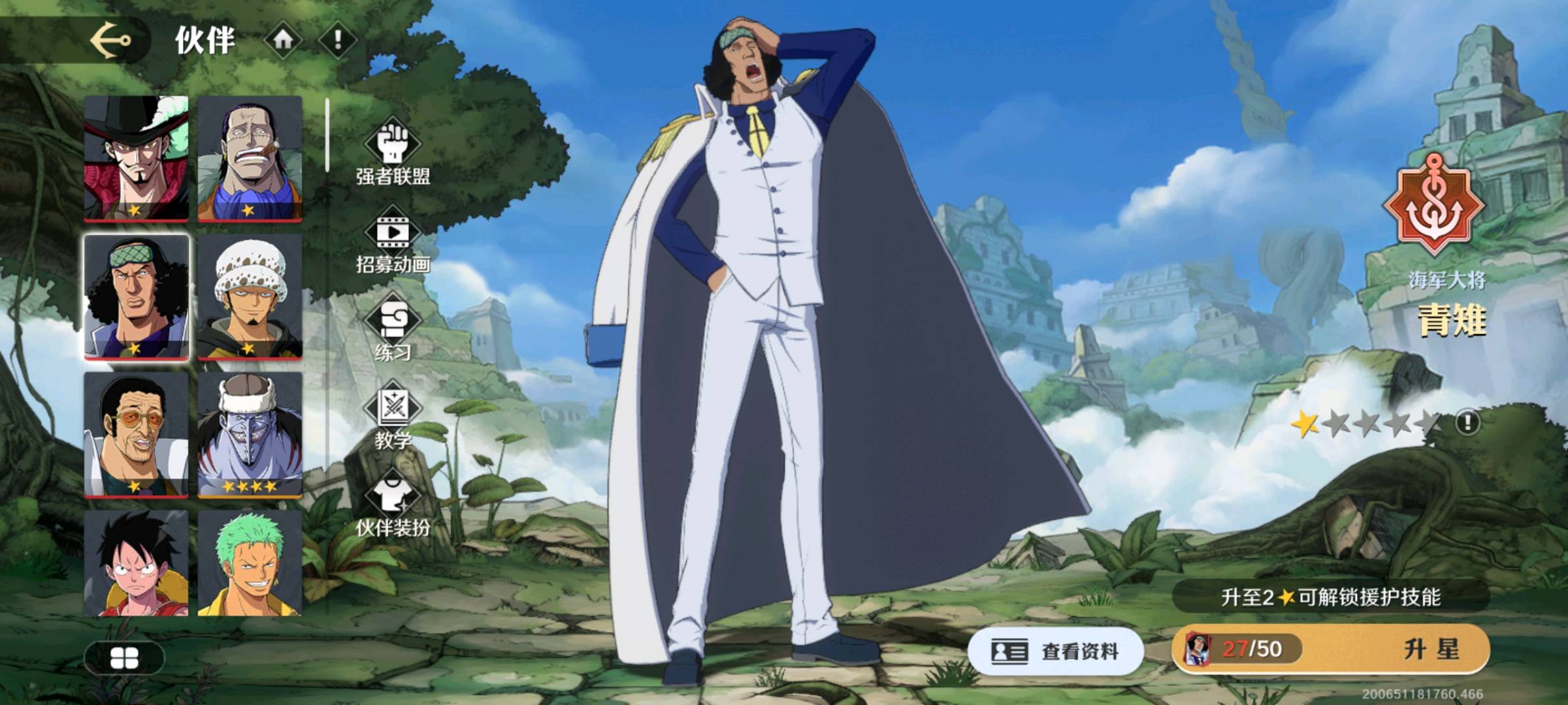 【安卓】 鹰眼,青雉,司索,司法岛娜美,老沙,卡库,佩罗娜,加布拉,龙马,司法岛路飞,司法岛山治,德雷克,黄猿