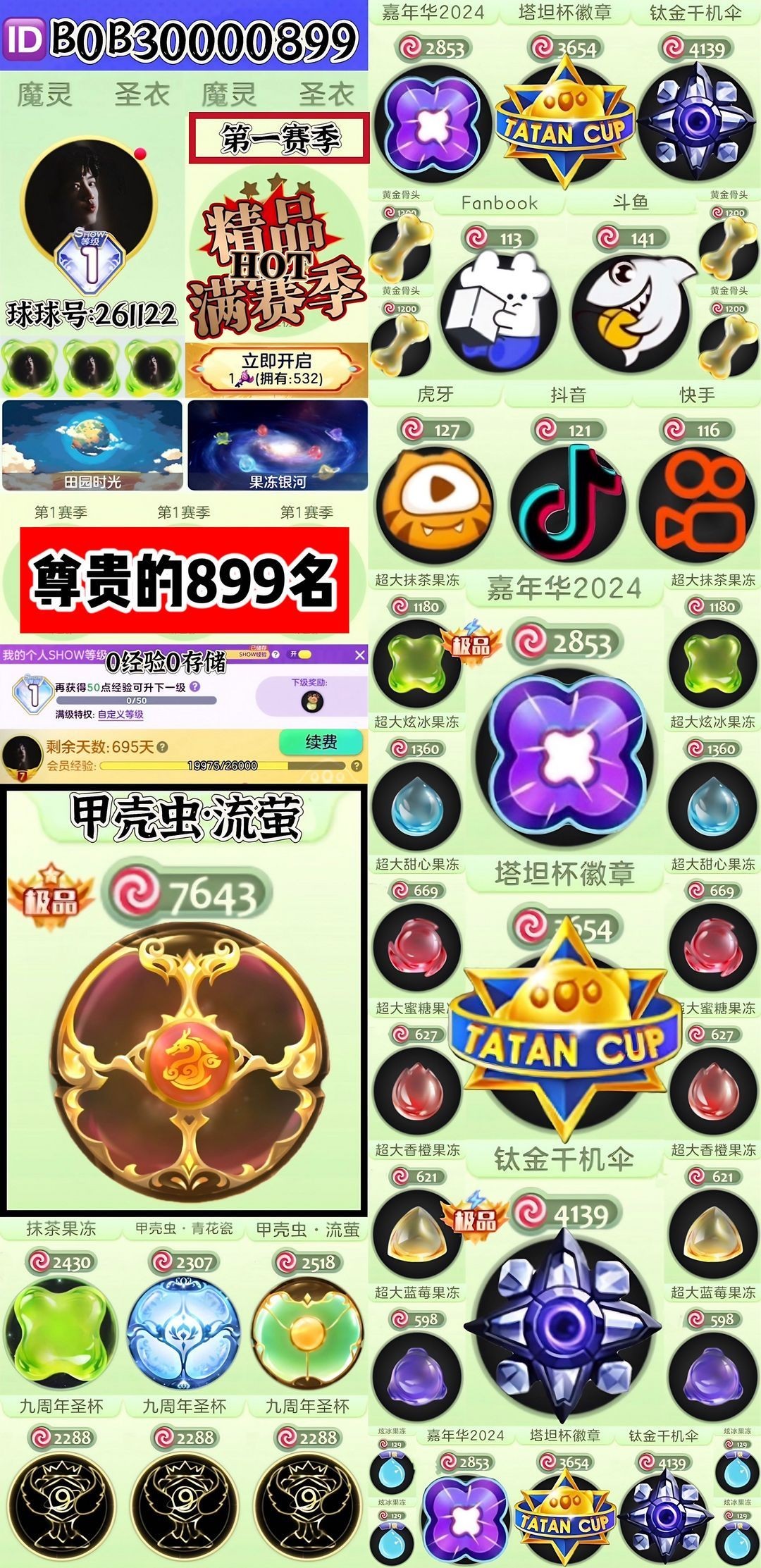一秀❤️满赛季899名 ❤️❤️金色塔坦杯 ❤️2024嘉年华,钛金千几伞,多平台袍子