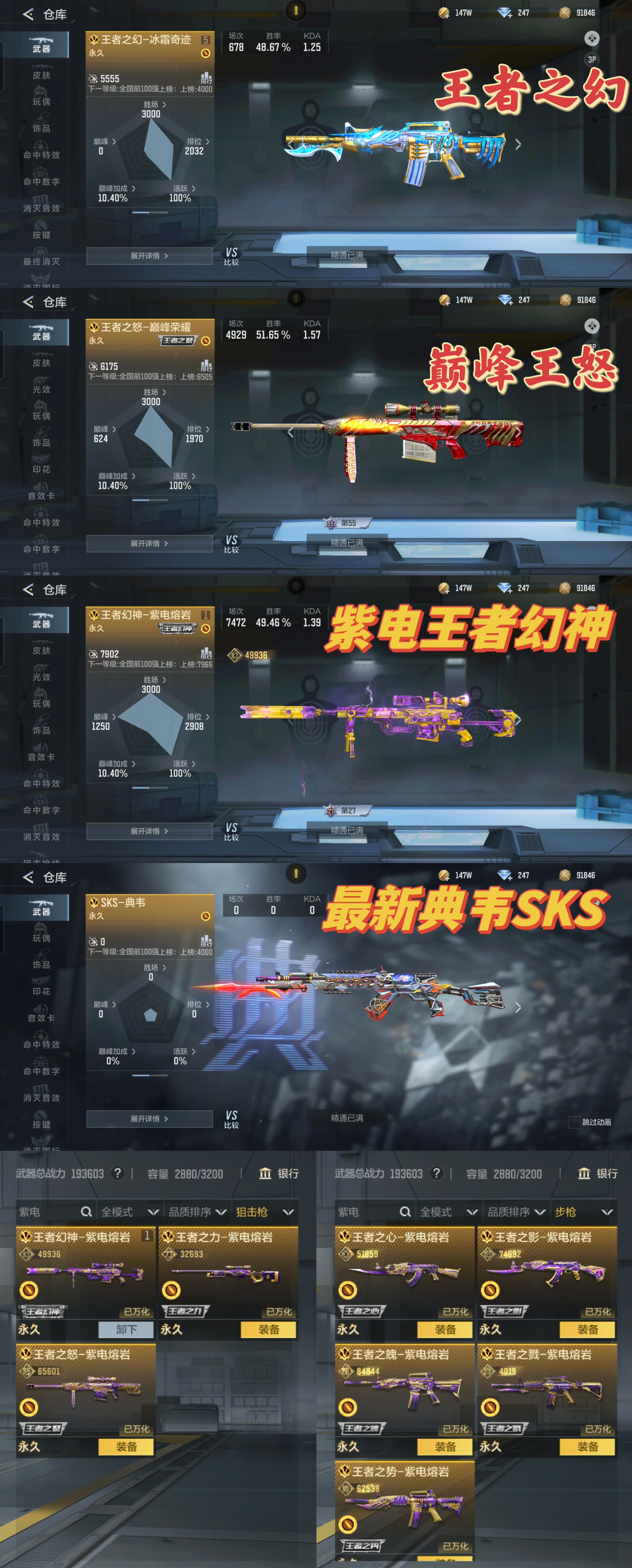 ❤️🔥狙击枪:紫电熔岩王怒至尊✨紫电熔岩王力✨冰霜王者幻神至尊✨雷霆王者狙✨女团王光至尊✨秒才过载✨幻神战舞✨极光✨星神✨王掣✨太史慈 紫电王力