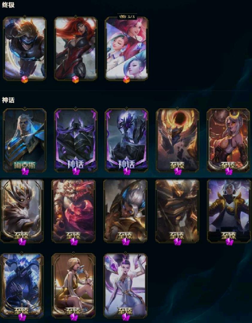 733P=DRX亚托克斯至臻魔女婕拉至臻真实伤害亚索至臻王国机神玄武盖伦至臻暗星墨菲特至臻神龙尊者炎