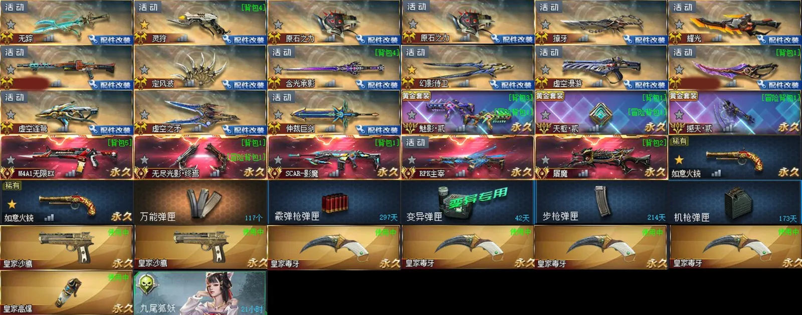 V10潘多拉黑化比伯✨火铳无限EX✨魅影贰天枢贰撼天贰✨屠魔狐妖✨皇家毒牙✨含光幻锋