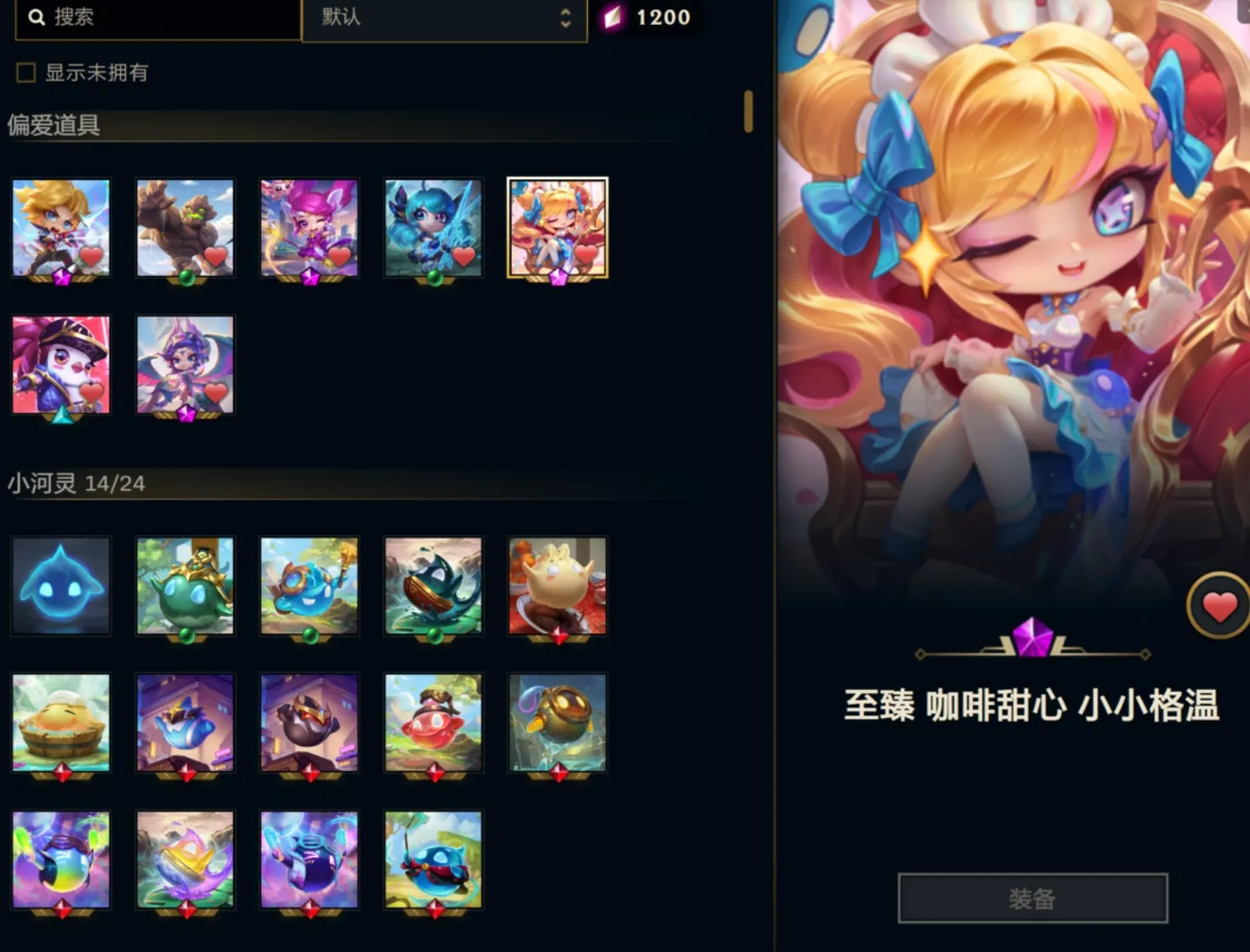 云顶之弈至臻格温+战斗学院EZ+星守拉克丝+莫甘娜+咖啡甜心棋盘+斗魂棋盘+水云棋盘