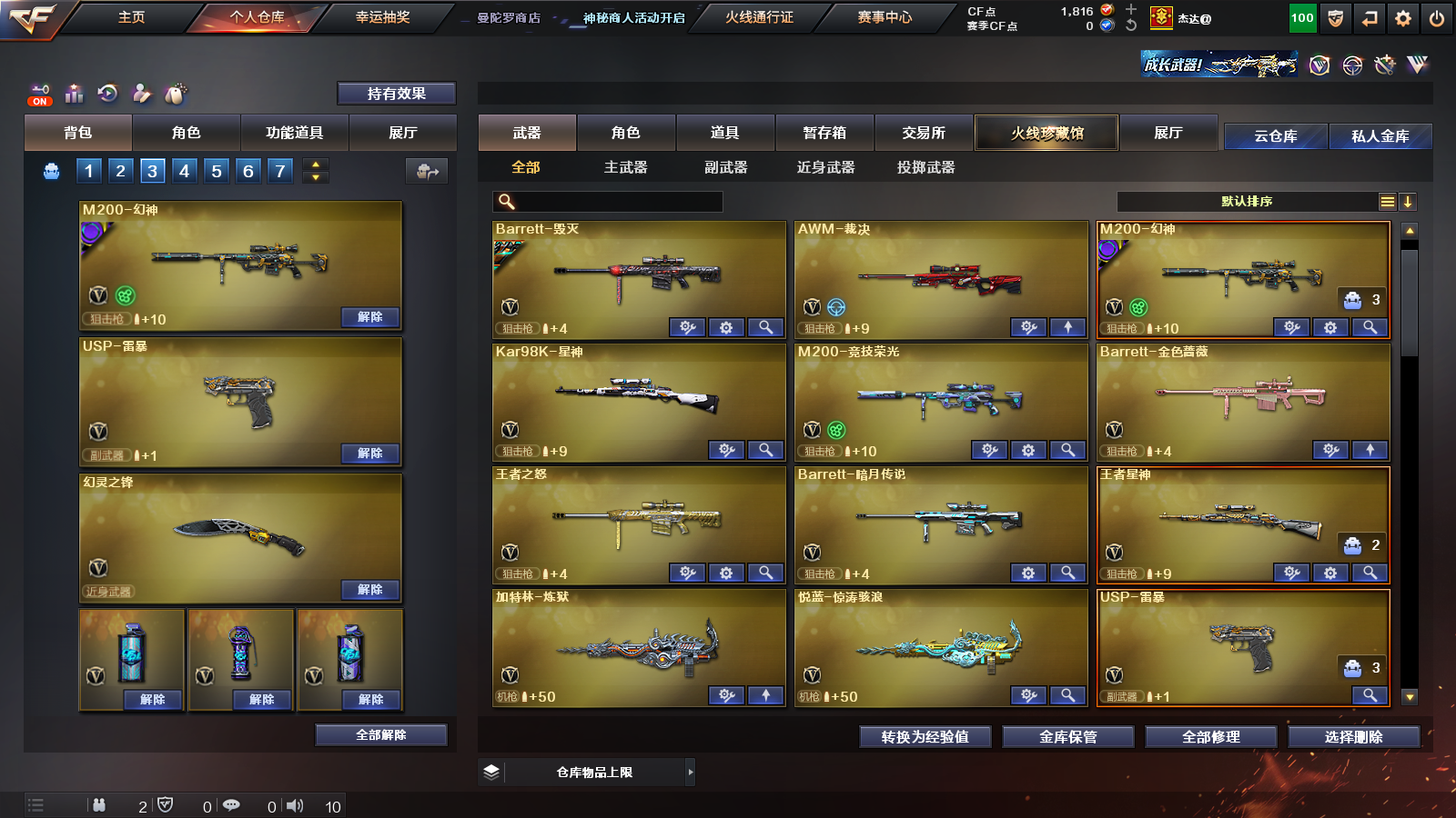 幻神+幻神巅峰荣耀✨竞技柯尔特+usp雷暴✨传说暗裔✨竞技荣光套✨星神✨觉醒王者星神✨白虎✨王者涂鸦+王者葵貂蝉+王者葵惊若翩鸿✨白虎电玩蓝兔✨qbz金色蔷薇+金色蔷薇音效卡✨觉醒王者冰魄✨火麒麟盘古+雷神机甲刑天+雷神传奇n9+毁灭2020mvp✨雷神荣耀之魄+毁灭荣耀之怒+屠龙荣耀之锋✨黑骑士音效卡+裁决音效卡+毁灭音效卡