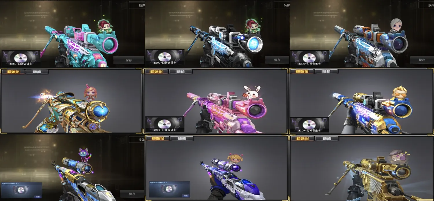 [重要音效卡]Kar98K-星神音效卡、M200-幻神音效卡、M4A1-黑骑士音效卡、QBZ03-金色蔷薇音效卡、M4A1-雷神音效卡、擎天-云海游龙音效卡、屠龙-云海游龙音效卡、修罗-云海游龙音效卡