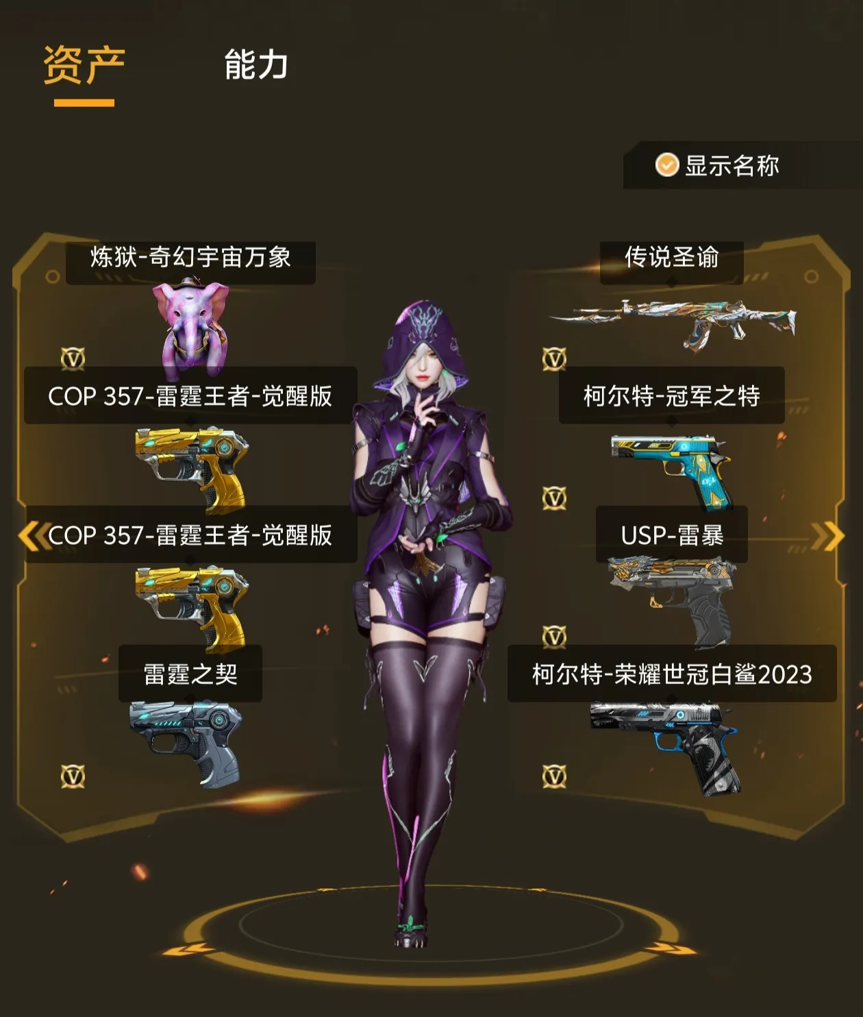 357-雷霆王者-觉醒版(2)、雷霆之契、柯尔特-冠军之特、USP-雷暴、麒麟刺-堕天神、龙啸-堕天神、擎天(4)、屠龙、雷霆之锋、幻灵之锋、斩神刀-雷暴、炽芒蝶刃(4)、高爆手雷-幻灵(5)、高爆手雷-雷暴(5)、高爆手雷-雷霆(5)、高爆手雷-堕天神(7)、烟雾弹-幻灵(5)、烟雾弹-雷暴(2)、烟雾弹-雷霆(6)、烟雾弹-堕天神(8)、闪光弹-幻灵(5)、闪光弹-雷暴(4)、闪光弹-雷霆(6)、闪光弹-堕天神(7)、闪光弹-雷霆王者-觉醒版、机械迷城-穹宇、G36C-幻影、黑武士-锦绣游龙、超新星-热带奇洋、王者芳薇-觉醒版、王者风神-觉醒版、烈龙-云海游龙、柯尔特-荣耀世冠白鲨2023、修罗-云海游龙、龙啸-烈火龙威、龙啸-热带奇洋、屠龙-云海游龙、擎天-云海游龙、手雷-热带奇洋、手雷-云游龙