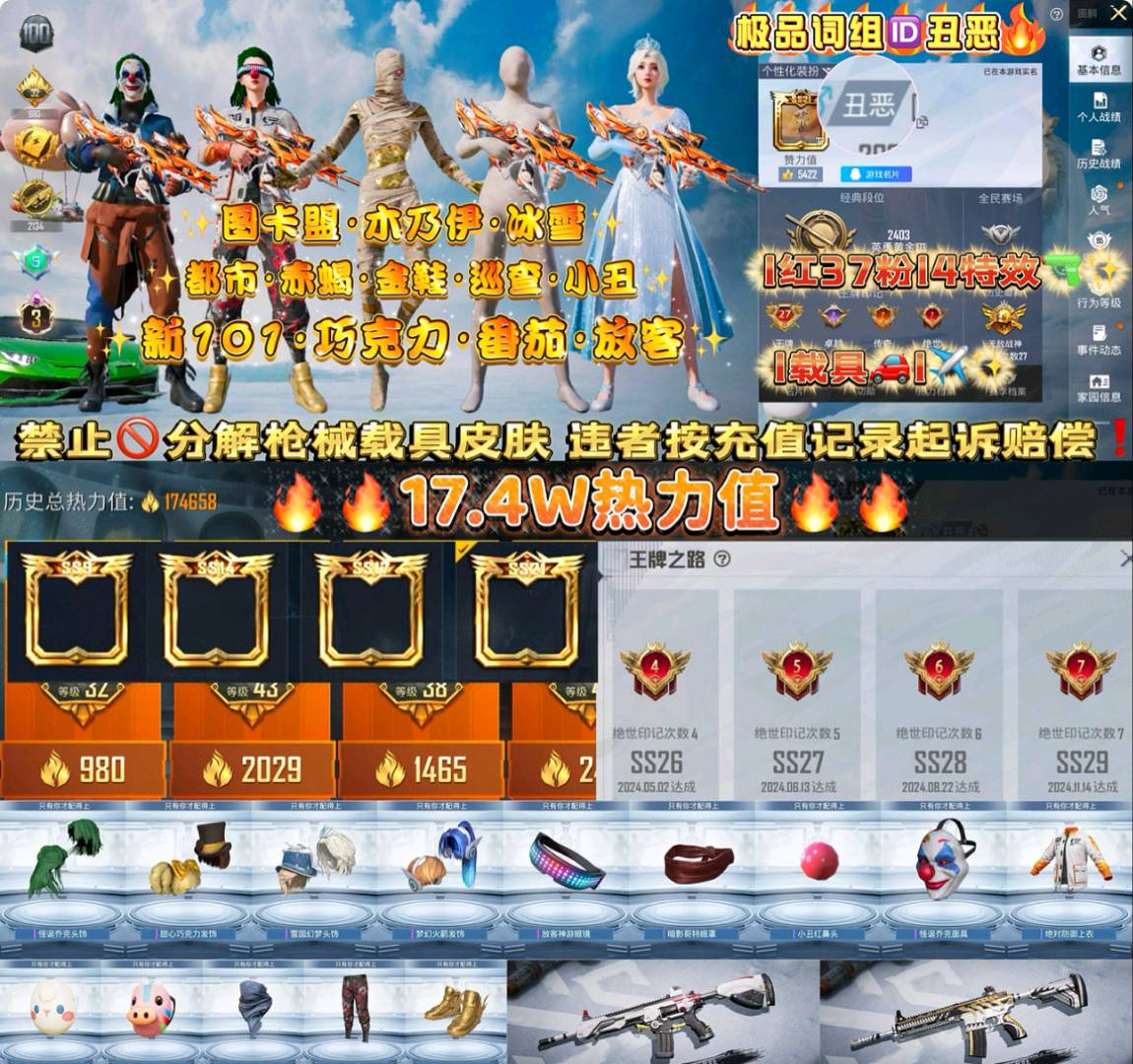 【安卓】 极品ID【丑恶】3级木乃伊雪国新101巧克力小丑都市赤蝎金鞋满级至情1红35粉13特1车