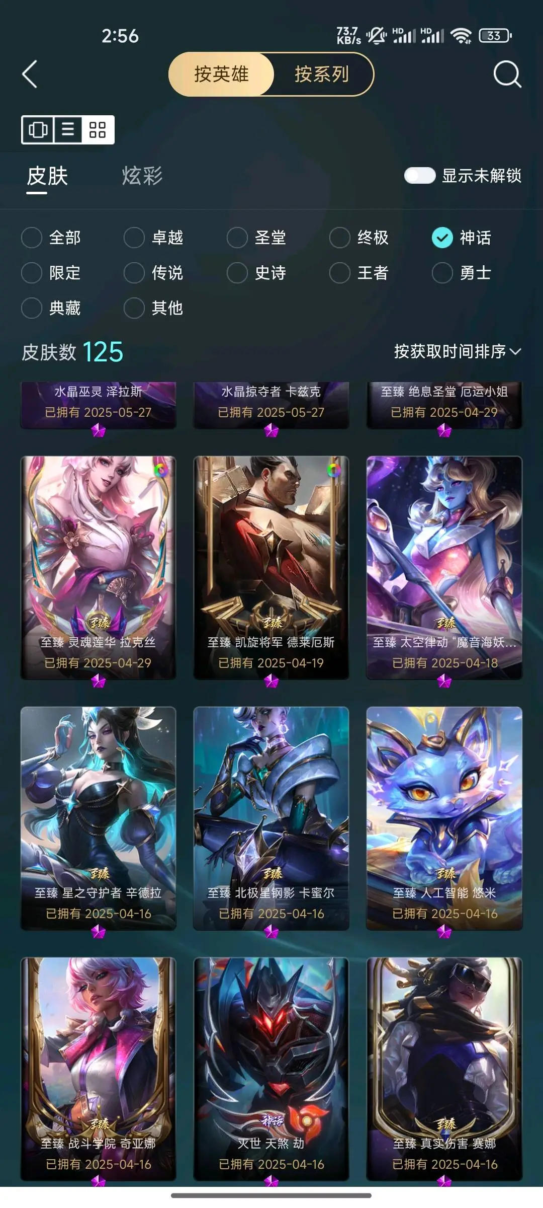 - 神话皮肤数量: 125