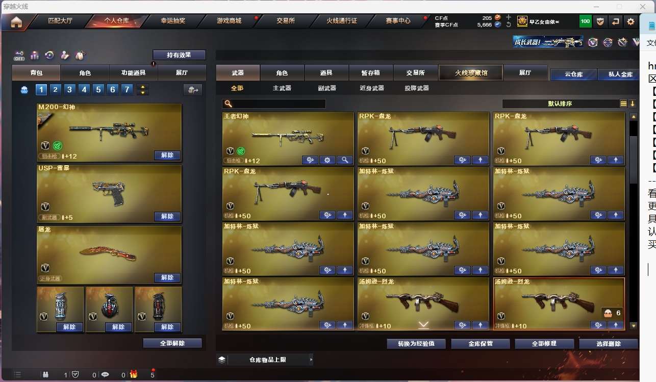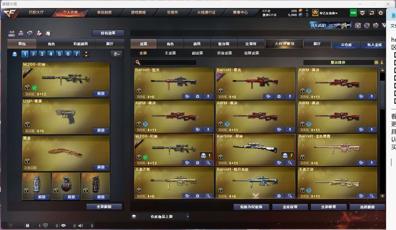 【亮点解析 幻神三件套 生化满配 白虎带皮】【m200幻神+音效卡+黄忠+usp雷暴】【98k星神】【王者幻神 】【6烈龙 6炼狱 盘龙*3 斯太尔蝴蝶 】【scar白虎+暗星】【qbz金色蔷薇】【hk417朱雀】【火麒麟+卡+cfs2018】【黑龙】【雷神+卡】【黑骑士*5+卡+白马银呛】【毁灭+卡+ag15冠军】【极光】【裁决】 【武器:武圣 青龙 夜魔 王者冰魄 海王 天龙 】 【10手呛:修罗*4 武圣 雷暴 堕天神 夜魔 】 【21刀具:屠龙*2 龙啸*4 擎天*6 麒麟刺 尼泊尔雷霆 斩神刀雷暴 王者之啸 王者之击 玄豹 王者之击 】 【13雷套:夜魔雷*7 雷霆雷 雷暴雷*5】 【小人呛:雷神精英刀锋 火麒麟绝迹 火麒麟灵狐 天龙曼陀罗 】 【音效卡:毁灭音效卡 黑骑士音效卡 火麒麟音效卡 雷神音效卡 黑骑士音效卡 幻神音效卡 火麒麟音效卡 】 【四防角色:王者春】