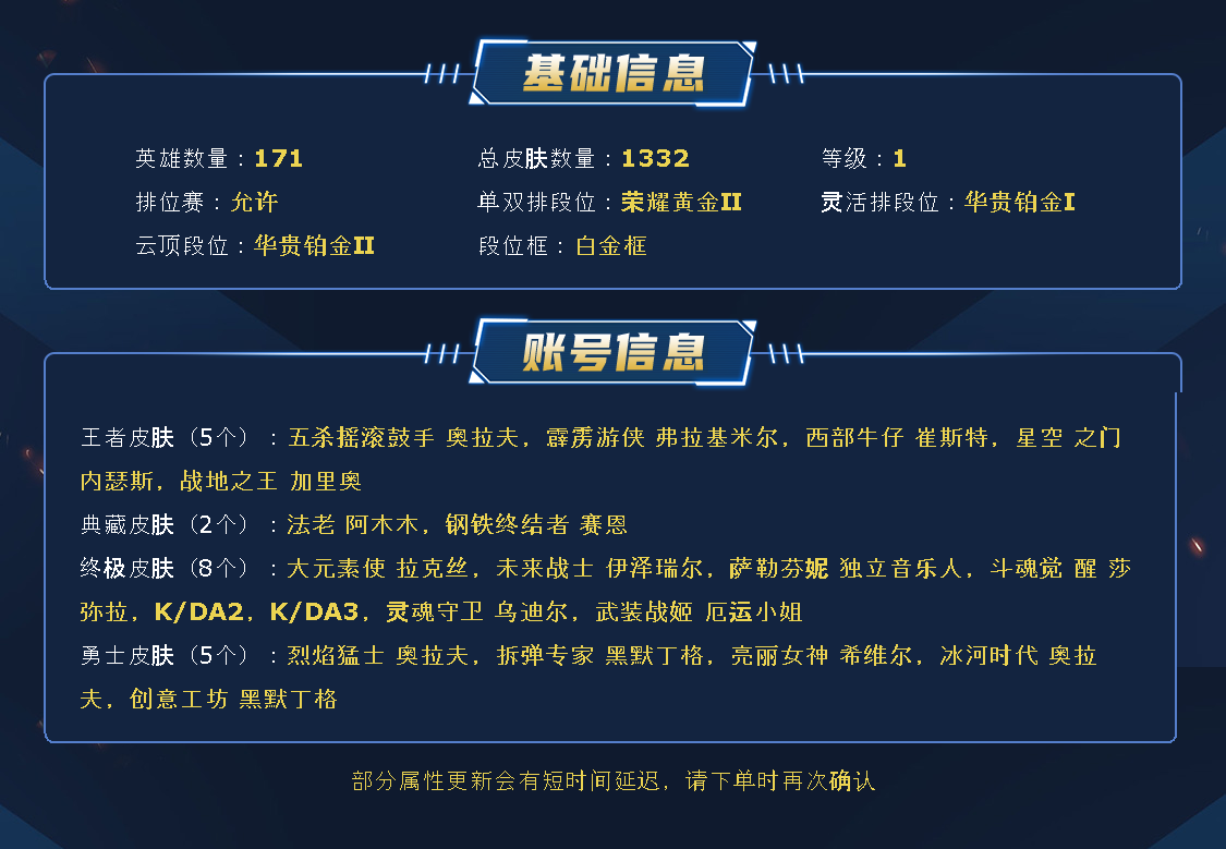 1321皮丨70神话丨5氪金皮 圣堂铁男 腕豪丨神话幻想狐狸 诺手 盖伦丨殿堂狐狸卡莎丨云顶神话发条