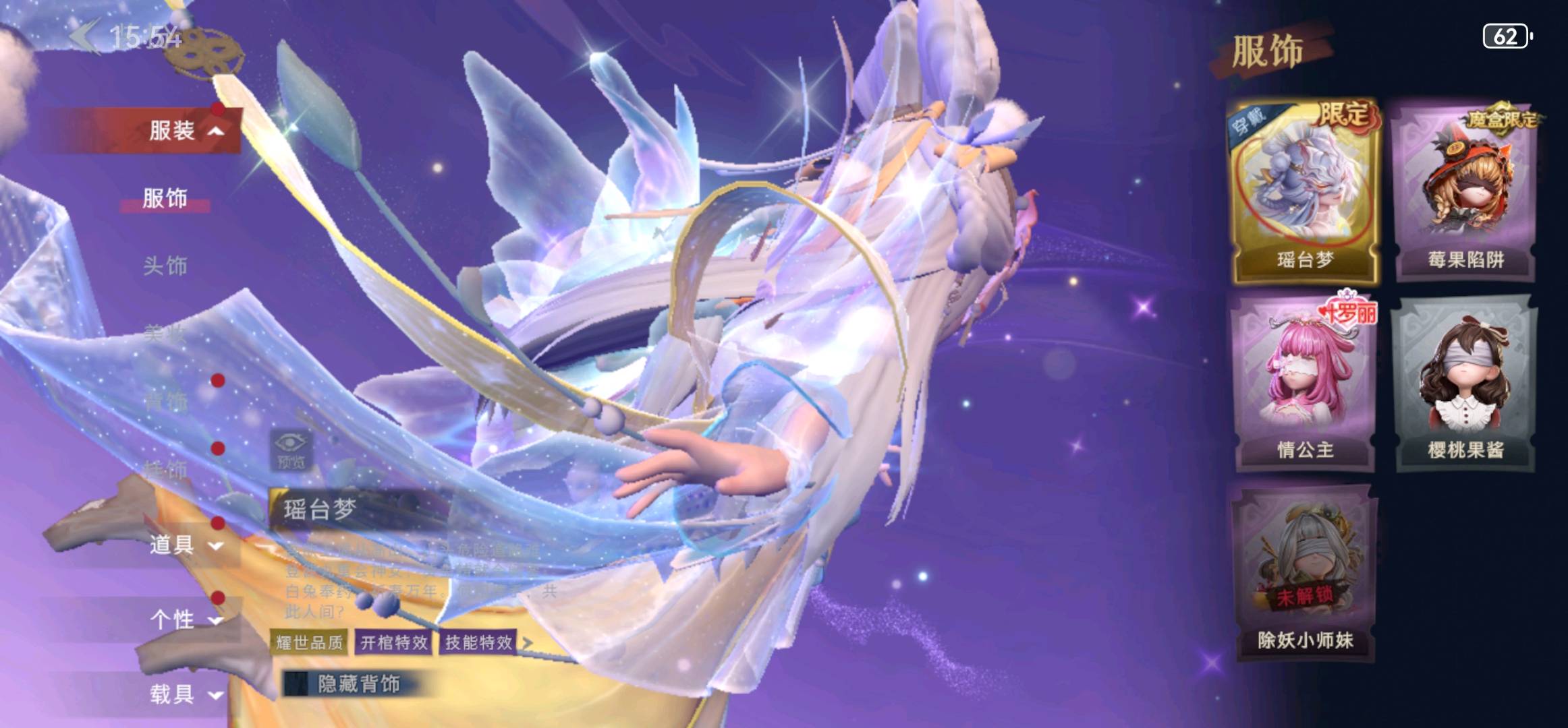 【全平台】 瑶台梦❤累氪条4.6k❤1幻镜生6金24紫50饰道❤赤练3魔盒莓果❤白泽3神兽❤黑月挽歌素影瑶光