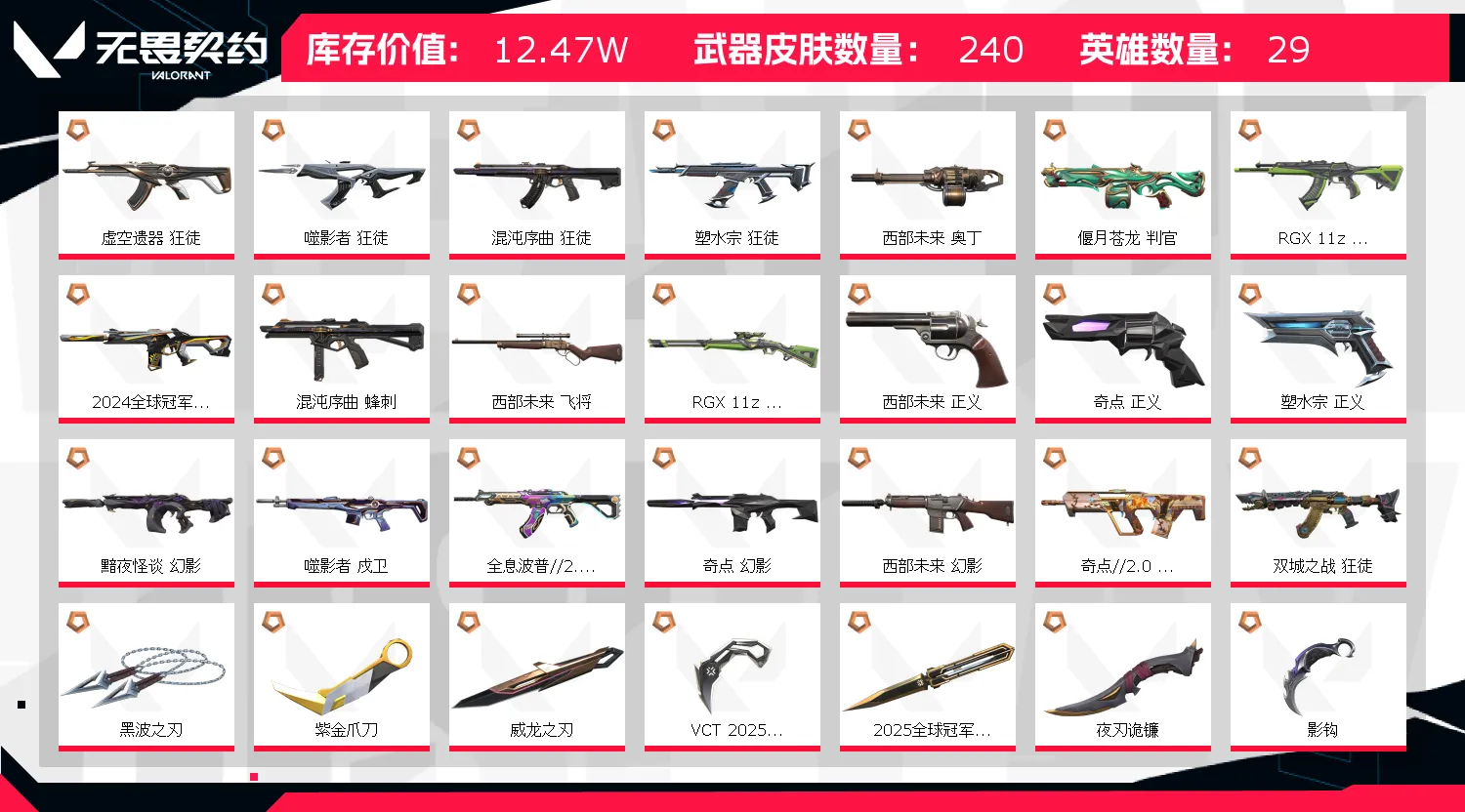 【当前段位:未定级】赋能挂坠❤️25冠军套❤️14w库❤️24冠军黑波之刃❤️vct爪❤️离子西部未来紫金盖亚显卡奇点