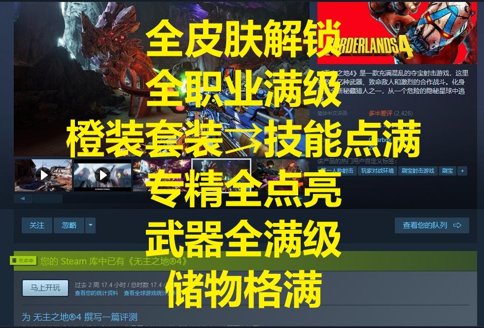 无主之地4⭐️超级豪华版⭐️全DLC⭐️通关存档⭐预购奖励光辉荣耀包⭐️密藏猎人包⭐️华美教团包