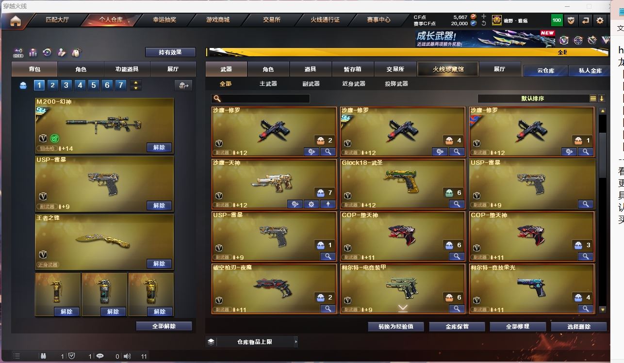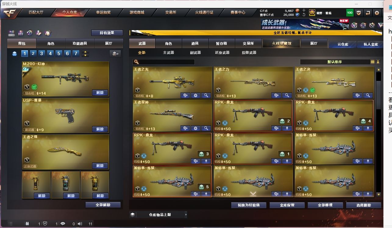 【亮点解析 幻神三件套 生化高配 裁决带卡】【m200幻神+音效卡+黄忠+冠军之幻】【m200竞技荣光套+usp雷暴*2+四防云悠悠】【王者星神】【6烈龙 斯太尔蝴蝶 6黑骑士 盘龙*4 5炼狱】【传说圣灵 传说光耀(7175)】【scar白虎】【qbz金色蔷薇】【hk417朱雀】【火麒麟+卡+冠军之心】【黑龙+卡】【雷神+卡+宠儿】【黑骑士+卡+cfs2021】【毁灭+卡+cfs2018+冠军之怒+荣耀之怒】【极光+卡】【裁决+卡】【雷暴套】 【武器:武圣 雷暴 青龙 堕天神 夜魔 王者之心 王者之影 王者之翼 王者之魄 王者之势 王者冰魄 王者火魄 荣耀世冠火麒麟 荣耀世冠雷神 】 【18手枪:修罗*3 天神 武圣 雷暴*2 堕天神*2 夜魔 电竞装甲 竞技荣光 王者之魂*4 荣耀世冠柯尔特 】 【24刀具:屠龙 龙啸*3 擎天*3 麒麟刺*3 斩神刀雷暴 电竞装甲 幻灵之峰 王者之锋 王者之啸 王者之击 荣耀世冠龙啸 】 【4雷套:雷暴雷 堕天神 电竞装甲 竞技荣光】 【小人枪:雷神精英刀锋 裁决雪莉杨 天龙曼陀罗 】 【音效卡: 雷神音效卡 极光音效卡 黑龙音效卡 雷神音效卡 黑骑士音效卡 火麒麟音效卡 毁灭音效卡 幻神音效卡 裁决音效卡 】 【四防角色:云悠悠 沙漠玫瑰 鹰 王者春 王者魅影 王者玲珑小乔 职业经理 】