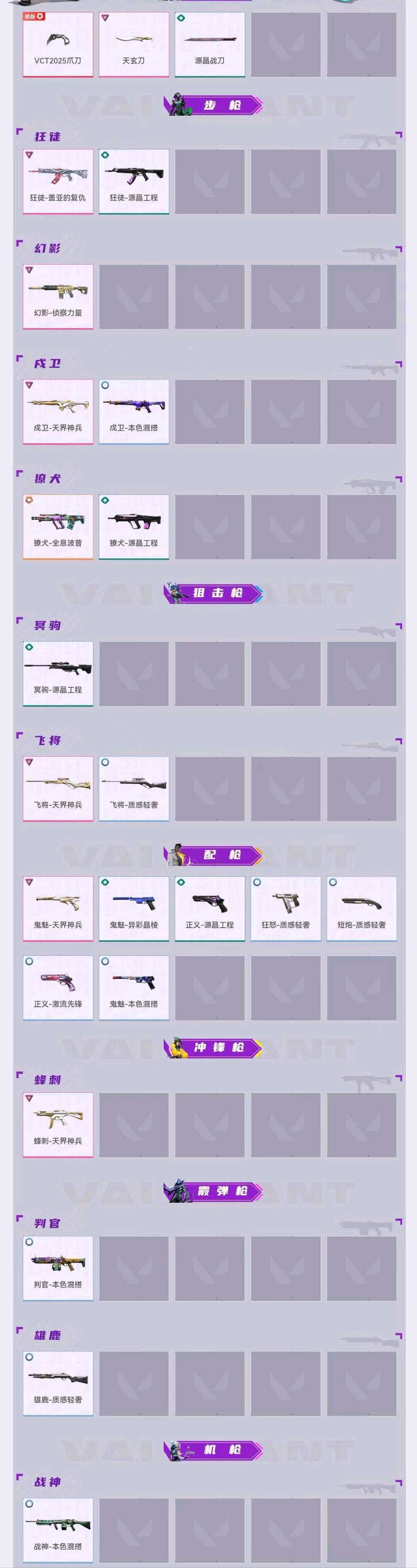 【全平台】 VCT2025爪刀,天玄刀,天界神兵套,獠犬全息波普,狂徒盖亚的复仇,幻影侦察力量,戍卫天界神兵