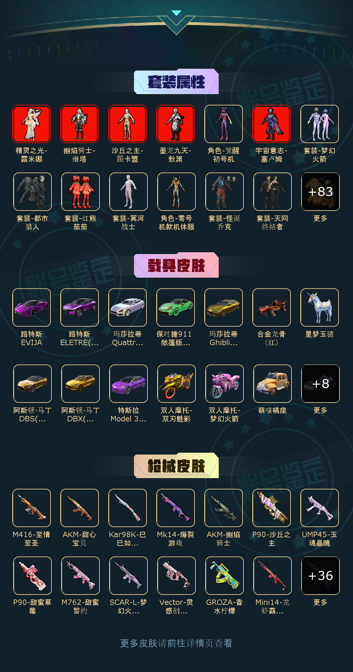 89粉,21载具,445套装,28王牌印记,无敌战神历史最高段,333470热力值 平底锅-林间仙鹿/AKM-甜心宝贝/SCAR-L-梦幻火箭/SCAR-L-童趣迷兔/AUG-星之彼岸/GROZA-旋转彩虹/SCAR-L-桃夭倾城/GROZA-香水柠檬/AKM-幽焰骑士/M416-心之恋语/SCAR-L-纯梦嫁纱/M416-五爪金龙/M16A4-垂柳戏鸭/AKM-炫紫旋律/GROZA-精灵之光/M416-墨龙九天/M416-至情至圣/M762-甜蜜誓约/SCAR-L-机甲封神/AKM-梦之光华/M417-第五大道/SKS-诡面斩/Mk14-爆裂游戏/Mini14-荧光虫舞/SLR-暗夜玫瑰/Mini14-龙虾霸霸/DP-28-扶摇飞仙/M249-彩虹甜喵/DP-28-枪炮玫瑰/MG3-洛神天依/MG3-突变脉冲/DP-28-千金淑猫/UZI-绮梦青鸾/汤姆逊-怪笑疯兔/P90-甜蜜草莓/UMP45-宇宙意志/AKS-74U-星穹咏叹调/Vector-灵感创作师/UMP45-相思残雪/P90-沙丘之主/汤姆逊-冰川粉黛/UMP45-玉魂晶魄/破片手榴弹-美味星星糖/爆炸猎弓-拳皇·狂花道/Kar98K-伏魔团/AWM-花间之火/Kar98K-巳巳如意/M24-翩跹演武/M24-星之信仰/玛莎拉蒂Ghibli(金)/特斯拉Roadster(尊享铂)/兰博基尼Estoque(炫光金)/特斯拉Model 3(奇幻紫)/阿斯顿·马丁DBS(金)/玛莎拉蒂Quattroporte(幻星粉)/宾利欧陆GT敞篷(深空蓝)/萌喵橘座/路特斯ELETRE(电光紫)/阿斯顿·马丁DBX(金)/鬼马风驰/金龙耀世/灵鼠银迹/合金龙骨(红)/路特斯EVIJA(电光紫)/幽澜尊爵(静谧蓝)/兰博基尼SVJ(尊享铂)/星梦玉骢/疾风龙骑/双人摩托-梦幻火箭/双人摩托-双刃魅影(金)/