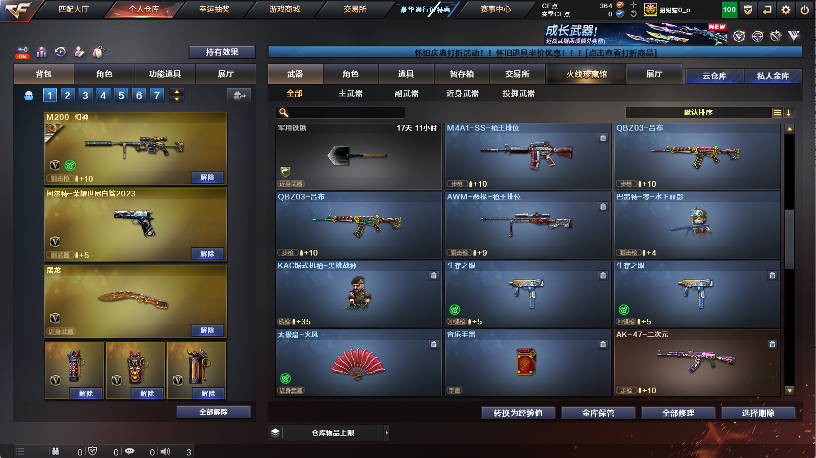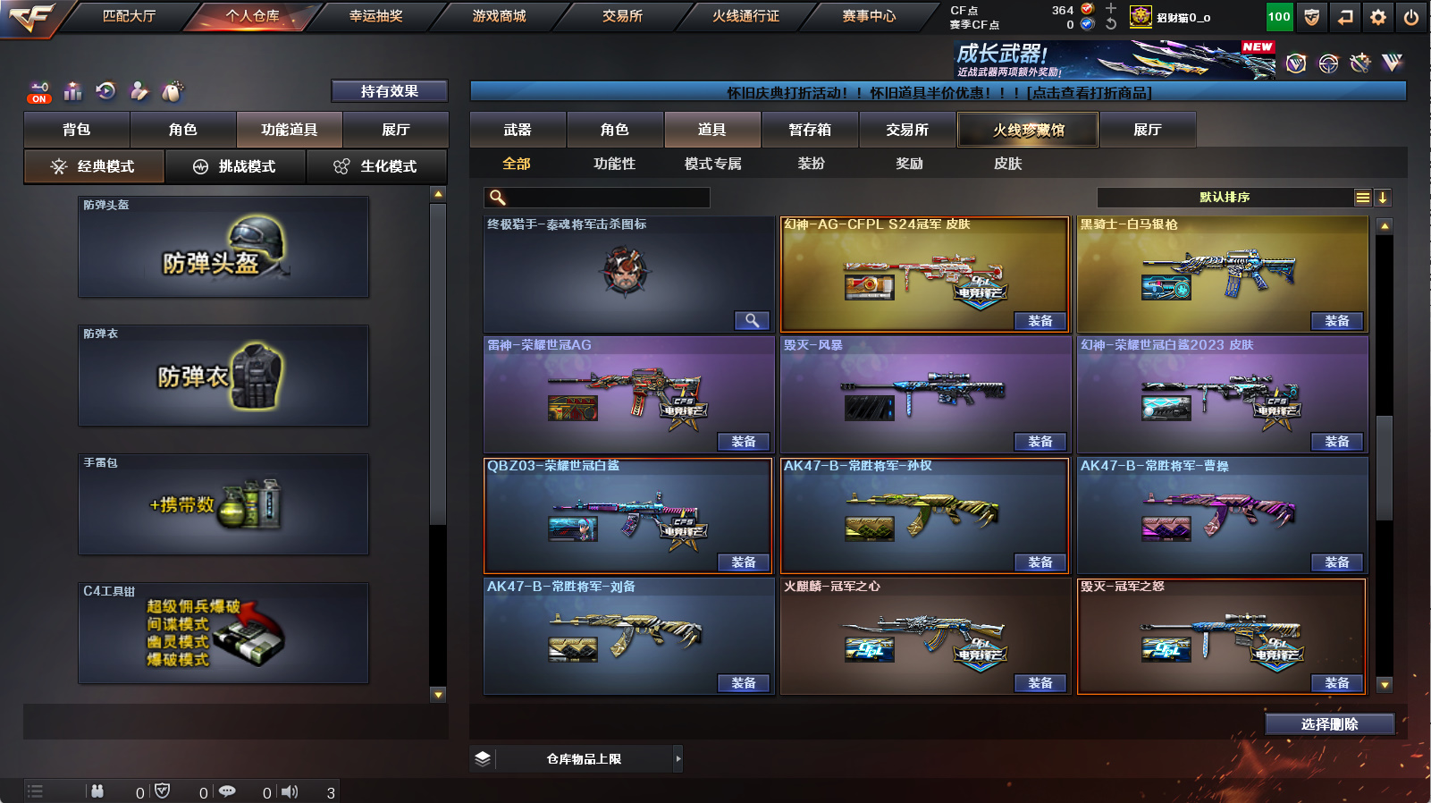 【m200幻神+幻神ag24冠军+幻神荣耀世冠白鲨2023+幻神音效卡】【竞技柯尔特+柯尔特荣耀世冠白鲨2023】【m200竞技荣光】【竞技荣光套+云悠悠】【qbz荣耀世冠白鲨+雷神荣耀世冠+火麒麟华夏之心+火麒麟冠军之心+雷神荣耀之魄+毁灭冠军之怒】【金色蔷薇音效卡+毁灭音效卡+黑骑士音效卡+死神雪域霜狐怀旧音效卡】【王者葵貂蝉+王者葵惊若翩鸿+满配雪域霜狐】【金色蔷薇】【火麒麟+雷神+毁灭】【cop白鲨+芭蕾特零水下丽影】【1911大黄蜂】【闪光护目镜+超级背包+炫彩背包】【工具钳+手雷包】