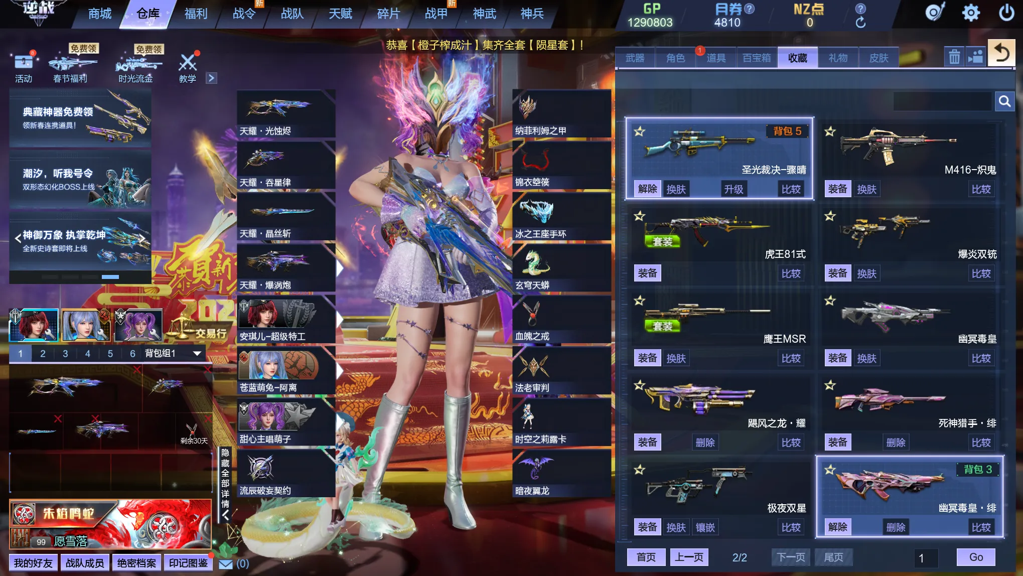 最强史诗天耀套/星寰套/神御近战副武器/毒皇死神龙耀/双铳/毒王虎王天王鹰王朱雀炽鬼混沌圣光裁决