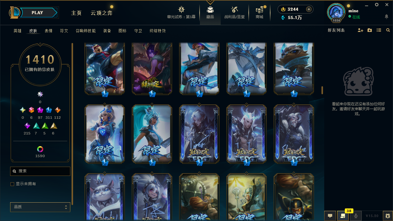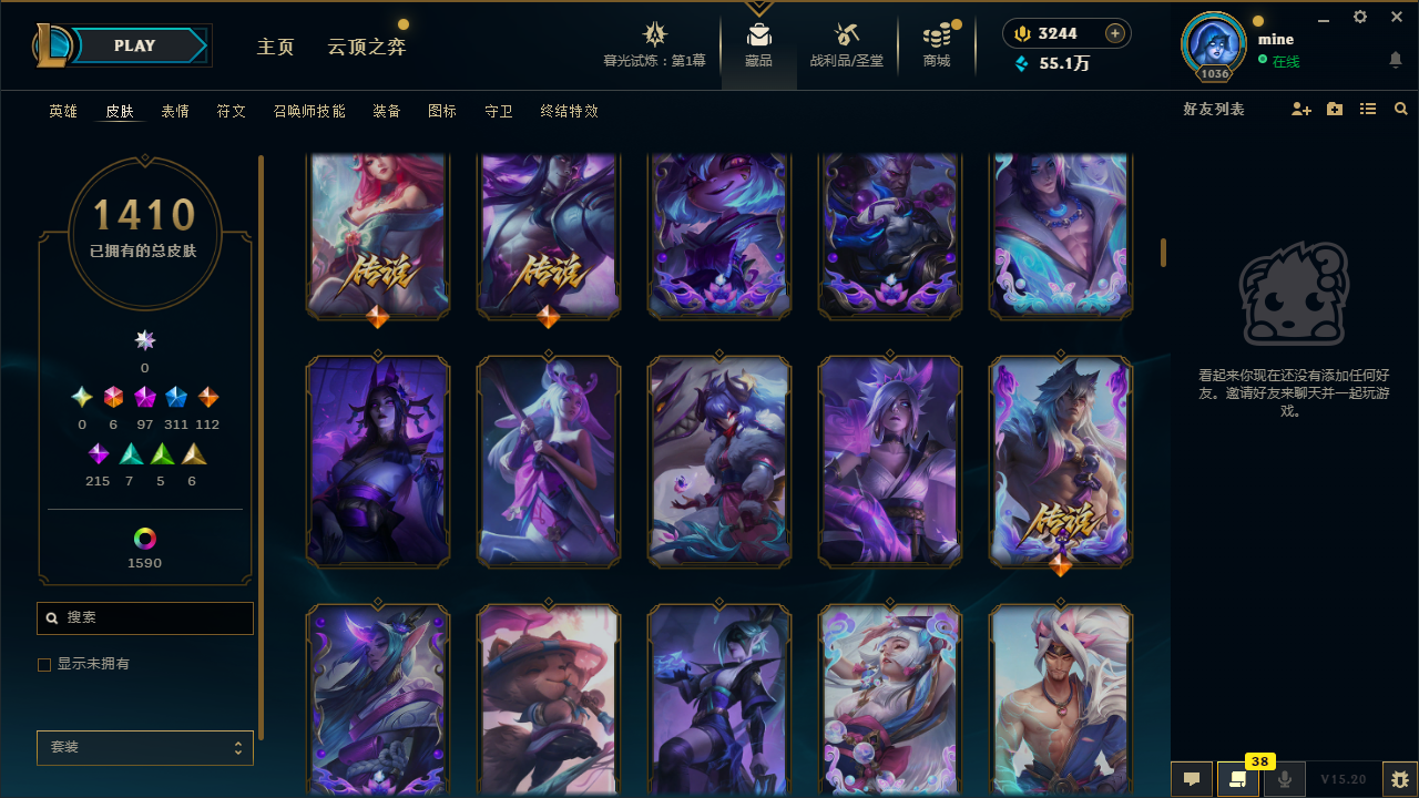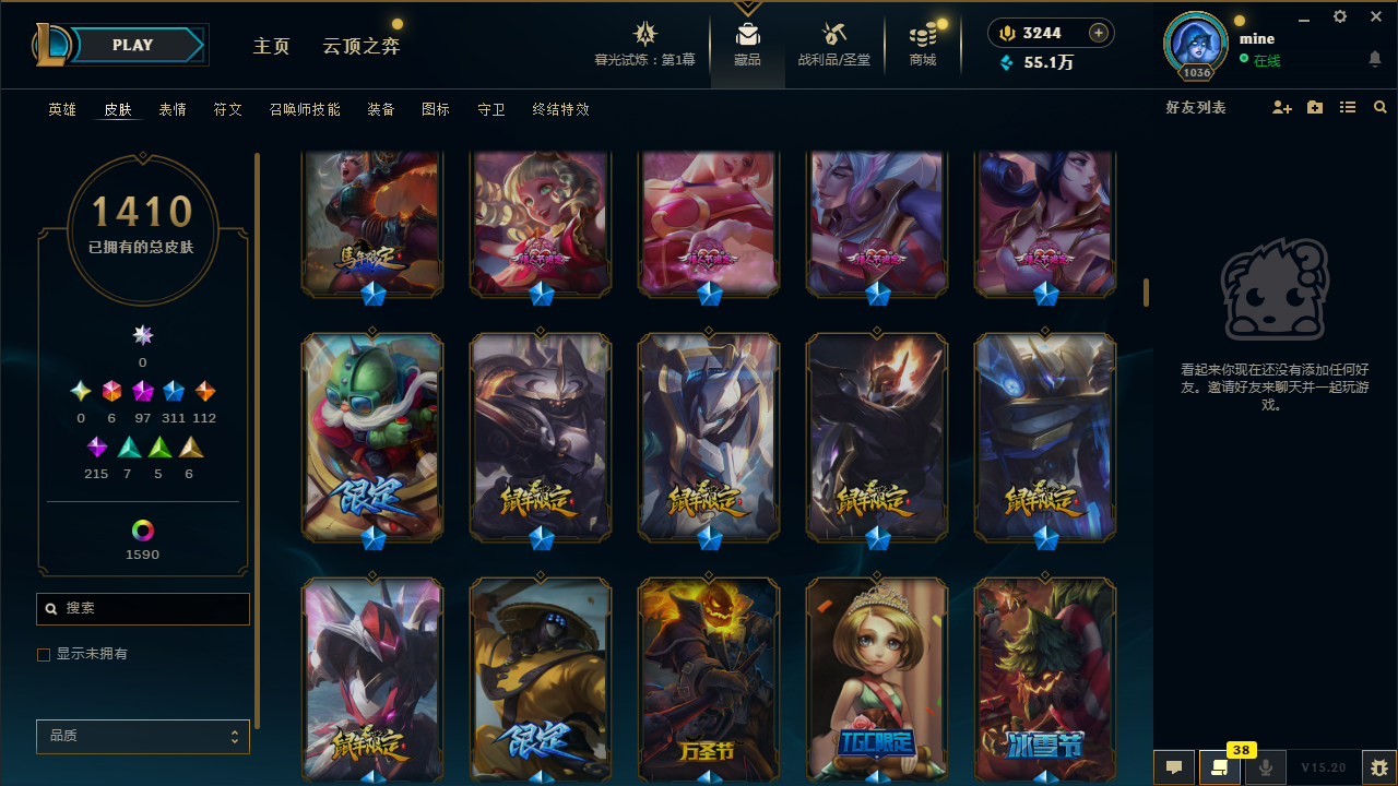 【重要皮肤】墨之影武者亚索至臻 花仙使者卡特琳娜至臻 绝息圣堂厄运小姐至臻 剪纸仙灵希维尔至臻 青花瓷丽桑卓至臻 北极星使者沃里克至臻 太空律动魔音海妖娜美至臻 至高天奎桑提至臻 灵魂莲华易至臻 海珀利安小队X09星环灵风迦娜至臻 星之守护者辛德拉至臻 星之守护者艾克至臻 海之歌萨勒芬妮至臻 西部魔影猎天使恶魔泰隆至臻 月蚀骑士赛娜至臻 幻灵战斗猫金克丝至臻 青花瓷拉克丝至臻 神凰行者烈羽焰凰霞至臻 女帝黛安娜至臻 战斗学院蕾欧娜至臻 太空律动璐璐至臻 魔女婕拉至臻 魔女乐芙兰至臻 奥术师佐伊至臻 未来战士卢锡安至臻 真实伤害亚索至臻 真实伤害赛娜至臻 灵魂莲华提莫至臻 灵能特工伊泽瑞尔至臻 福牛守护者菲奥娜至臻 源计划逆流塞拉斯至臻 源计划阴劫至臻 王国机神玄武盖伦至臻 暗星墨菲特至臻 神龙尊者炎龙瑟提至臻 黑夜使者凯隐至臻 神龙尊者均衡之龙沃利贝尔至臻 征服者贾克斯至臻 飞升战神潘森至臻 焰执事布兰德至臻 KDA二代卡莎至臻 KDA一代卡莎至臻 KDA卡莎2022至臻 KDA阿狸至臻 KDA阿狸2022至臻 KDA伊芙琳至臻 KDA伊芙琳2022至臻 KDA阿卡丽至臻 KDA阿卡丽2022至臻 战斗学院拉克丝至臻 战斗学院拉克丝2022至臻 烈焰美人薇恩至臻 烈焰美人薇恩2022至臻 电玩女神凯特琳至臻 电玩女神凯特琳2022至臻 魅惑女巫厄运小姐至臻 魅惑女巫厄运小姐2022至臻 星之守护者妮蔻至臻 星之守护者妮蔻2022至臻 源计划正义艾瑞莉娅至臻 源计划正义艾瑞莉娅2022至臻 真实伤害奇亚娜至臻 绒毛菲兹至臻 绒毛菲兹2022至臻 玉剑传说武剑仙至臻 玉剑传说武剑仙2022至臻 腥红之月亚托克斯至臻 腥红之月亚托克斯2022至臻 未来战士锤石至臻 未来战士锤石2022至臻 黑夜使者李青至臻 黑夜使者李青2022至臻 灰烬守护者慎 灰烬骑士莫德凯撒 灰烬骑士派克 灰烬征服者潘森 灰烬杀手塞拉斯 海克斯科技安妮 海克斯科技瑟庄妮 海克斯科技斯维因 海克斯科技吉格斯 海克斯科技玛尔扎哈 海克斯科技波比 海克斯科技嘉文四世 海克斯科技阿利斯塔 海克斯科技阿木木 海克斯科技崔丝塔娜 星之守护者塔莉垭 永恒之森奥恩 暗星科加斯 光明哨兵奥拉夫 黎明使者卡尔玛 恐惧新星德莱厄斯 零之枪骑赫卡里姆 摄魂使者薇恩 青年瑞兹 胜利女神希维尔 胜利之王泰达米尔 哥特萝莉安妮 冰原狙击凯特琳 舞会公主安妮 创星之灵璐璐 钢铁军团拉克丝 荣誉使者玛尔扎哈 养蜂人辛吉德 安妮梦游仙境 勇敢的心德莱厄斯 电玩女神厄运小姐 电玩勇者锐雯 电玩女神阿狸 星之守护者伊泽瑞尔 玉剑传说无影 玉剑传说舞剑仙 神凰行者幽羽玄凰萨勒芬妮 神凰行者烈羽焰凰霞 海珀利安小队Z01猎户座卢锡安 海珀利安小队Y03权天使卡蜜尔 星之守护者佐伊 灵能特工易 黎明使者薇恩 银龙裁决泰隆 剪纸仙灵艾瑞莉娅 剪纸仙灵希维尔 剪纸仙灵盖伦 剪纸仙灵婕拉 剪纸仙灵加里奥 虎头虎脑崔丝塔娜 烈焰仙子黛安娜 龙腾虎跃瑟提 猛虎下山赵信 招财进宝提莫 替父从军花木兰 神龙烈焰金克丝 碧玉之牙卡西奥佩娅 春晖神女拉克丝 你看见过我的熊猫吗安妮 北辰之威内瑟斯 南天之怒沃里克 美猴王孙悟空 玉净夜叉凯特琳 紫金罗刹莫甘娜 广寒仙子嫦娥 虎痴之拳蔚 张辽文远 司马懿仲达 金猪烈焰瑟庄妮 烈焰美人薇恩 纳财大帝塔姆 醒狮克格莫 神龙之翼库奇 征服者贾克斯 王国机神青龙德莱文 王国机神朱雀蕾欧娜 王国机神苍狼瑟提 王国机神白虎贾克斯 王国机神玄武盖伦 福牛守护者安妮 福牛守护者厄斐琉斯 福牛守护者德莱厄斯 福牛守护者阿利斯塔 福牛守护者嘉文四世 福牛守护者菲奥娜 胜利女神瑟庄妮 胜利之树茂凯 胜利机器人布里茨 胜利女神奥莉安娜 胜利枪神格雷福斯 胜利女神莫甘娜 胜利之剑亚托克斯 怦然心动凯特琳 意乱情迷蔚 黯然心伤阿木木 水晶玫瑰阿克尚 水晶玫瑰迦娜 幽梦玫瑰伊莉丝 碎心之拳蔚 甜心之羽霞 甜心之翎洛 甜心宝贝安妮 甜心宝贝娑娜 穿心之剑菲奥娜 觅心游侠卢锡安 觅心魔灵奥莉安娜 觅心女王艾希 觅心之翼奎因 觅心萝莉金克丝 觅心猫猫悠米 觅心猎手薇恩 幽梦玫瑰辛德拉 幽梦玫瑰泰隆 水晶玫瑰婕拉 水晶玫瑰斯维因 北极星神黛安娜 北极星守望者佐伊 北极星圣贤基兰 北极星猎人斯维因 北极星使者沃里克 北极星使者萨科 冬境仙灵索拉卡 寒冬精灵璐璐 冬季仙境奥莉安娜 雪球也能爆炸吉格斯 圣诞捣蛋鬼金克丝 圣诞老人布隆 圣诞老人德莱文 冰雪驯鹿波比 冰雪风暴希维尔 冬季仙境卡尔玛 持胡萝卜的雪人易 狂心冰王图奇 冰封王子蒙多 冰雪女神辛德拉 魄罗骑士瑟庄妮 夺命美人卡特琳娜 平安夜女神娑娜 圣诞糖果棒厄运小姐 魅惑女巫艾尼维亚 魅惑女巫卡西奥佩娅 魅惑女巫乐芙兰 魅惑女巫妮蔻 魅惑女巫赛娜 魅惑女巫迦娜 魅惑女巫厄运小姐 魅惑女巫莫甘娜 魅惑女巫崔丝塔娜 魅惑女巫奈德丽 魅惑女巫伊莉丝 伯爵卡萨丁 大魔法锅布里茨 大魔王提莫 死亡誓约卡特琳娜 死亡誓约劫 死亡誓约维克托 灵魂收割者索拉卡 克烈古拉伯爵 小恶魔菲兹 南瓜头王子阿木木 海之歌艾希 海之歌奈德丽 海之歌萨勒芬妮 海之歌永恩 海之歌泽丽 泳池派对凯特琳 泳池派对佐伊 泳池派对普朗克 泳池派对辛德拉 泳池派对奥莉安娜 泳池派对嘉文四世 泳池派对黑默丁格 泳池派对塔莉垭 泳池派对厄运小姐 泳池派对塔里克 泳