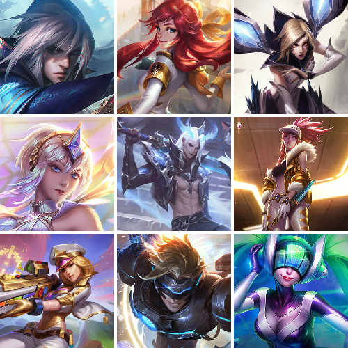 【传说皮肤】星之守护者阿卡丽 泳池派对吉格斯 源计划毁灭派克 恶魔男爵瑞兹 西部天使赛娜 星之守护者卡莎 陆地王者4WD布里茨 西部魔影卢锡安 源计划超体莫德凯撒 电玩女神娑娜 西部天使艾希 上古战魂魔腾 腥红之月鬼武姬阿卡丽 苍穹之光韦鲁斯 丧尸布兰德 银河魔装机神兰博 星之守护者金克丝 铁哥们儿奥拉夫 最终BOSS维迦 魔幻卡牌崔斯特 战斗学院凯特琳 星之守护者阿狸 驯龙炮手崔丝塔娜 地狱之门卫士加里奥 黑夜使者亚索 提莫约德尔人的一大步 驯龙学者黑默丁格 合金巨兽努努和威朗普 至尊魔女莫甘娜 源计划林易 苹果机器人布里茨 战斗学院伊泽瑞尔 魔女伊芙琳 恶魔之刃泰达米尔 女皇艾希 星之守护者霞 律政大亨蒙多 灵魂莲华锤石 女主播迦娜 第三类接触黑默丁格 钢铁军团盖伦 烈焰雄心崔丝塔娜 女帝卡特琳娜 黎明使者永恩 神龙尊者夜月幻龙亚索 战场女武神凯尔 死亡骑士盖伦 约德尔国队长提莫 月蚀骑士蕾欧娜 女警狙击凯特琳 源计划净化薇恩 灵魂莲华瑟提 源计划联合艾希 冰川巨兽墨菲特 大天使长米迦勒凯尔 双重冰晶艾尼维亚 屠龙勇士潘森 冰霜亚龙希瓦娜 欧米伽小队幽灵特工 黑夜使者索拉卡 幻灵战斗队长厄运小姐 青花瓷伊泽瑞尔 黯黑魔龙希瓦娜 日蚀骑士蕾欧娜 暗星锤石 焰尾妖狐阿狸 神王德莱厄斯 星之守护者洛 蔷薇绅士杰斯 暗星女王拉克丝 黯晶凤凰艾尼维亚 星之守护者拉克丝 黎明使者锐雯 红色男爵库奇 神王盖伦 炼狱魔犬内瑟斯 鬼魂新娘莫甘娜 神龙尊者圣龙李青 血石领主弗拉基米尔 冰霜之刃艾瑞莉娅 黎明使者索拉卡 战地巨兽科加斯 灌篮高手德莱厄斯 偶像歌手阿狸 邪鸦魅影乐芙兰 枯萎之壤泽拉斯 影执事劫 符文战熊沃利贝尔 至高天派克 霸天零式赛恩 源计划泯灭雷克顿 灵能特工娑娜 真实伤害艾克 战地机甲厄加特 钢铁之翼凯尔 光明哨兵薇恩 神龙尊者昼日真龙亚索 天煞劫 太空律动猫猫布里和里茨 耀星女神拉克丝 灵魂莲华阿狸 地狱行者孙悟空 神拳李青 光明哨兵格雷福斯 宇航员诺提勒斯 暗星尊烬 霸天异形卡兹克 奥德赛凯隐 女校长菲奥娜 绅士科加斯 金牌主播德莱文 未来战士凯特琳