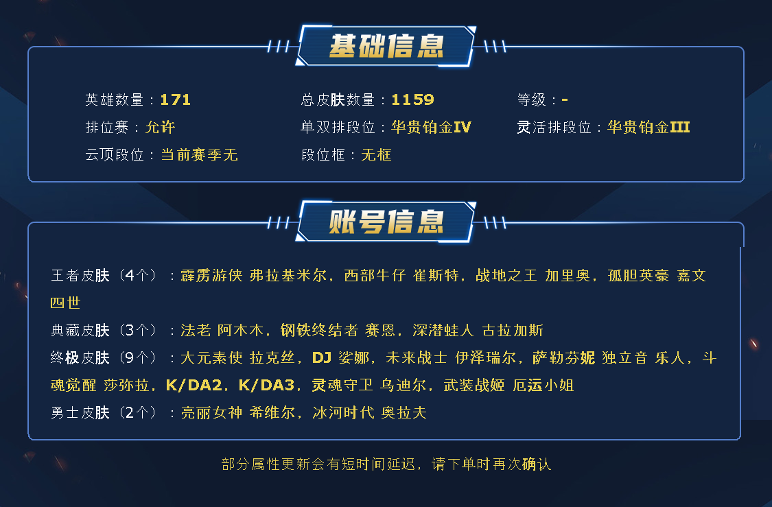 【重要皮肤】殿堂传奇卡莎 双城之战2破碎者金克丝 金蛇巨星瑟提 T1塞拉斯至臻 暗裔英雄嘉文四世至臻 莲华温泉厄斐琉斯至臻 灵魂莲华劫至臻 灵魂莲华拉克丝至臻 凯旋将军德莱厄斯至臻 双城之战2指挥官凯特琳至臻 魔域梦魇泽丽至臻 至高天凯尔至臻 心之钢永恩至臻 魔女阿卡丽至臻 DRX亚托克斯至臻 绝息圣堂厄运小姐至臻 剪纸仙灵希维尔至臻 幻灵战斗猫金克丝至臻 神凰行者烈羽焰凰霞至臻 女帝黛安娜至臻 战斗学院蕾欧娜至臻 真实伤害亚索至臻 真实伤害赛娜至臻 灵能特工伊泽瑞尔至臻 暗星墨菲特至臻 征服者贾克斯至臻 KDA二代卡莎至臻 KDA一代卡莎至臻 魅惑女巫厄运小姐至臻 真实伤害奇亚娜至臻 殿堂传奇薇恩 殿堂传奇乐芙兰 幻灵战斗兔司令厄运小姐 西部魔影炽天使永恩 暗星绝杀烬 水晶泰坦诺提勒斯 双城之战2范德尔沃里克 双城之战2孤勇者艾克 双城之战2教授黑默丁格 胜利剑圣易 胜利女神娑娜 创星之灵璐璐 庆典女皇艾尼维亚 电玩女神阿狸 星之守护者伊泽瑞尔 玉剑传说舞剑仙 神凰行者幽羽玄凰萨勒芬妮 海珀利安小队Z01猎户座卢锡安 海珀利安小队Y03权天使卡蜜尔 女帝格温 玉剑传说神机花火 灵能特工易 黎明使者薇恩 剪纸仙灵烬 天龙之子斯莫德 剪纸仙灵艾瑞莉娅 剪纸仙灵希维尔 剪纸仙灵盖伦 剪纸仙灵婕拉 剪纸仙灵加里奥 虎头虎脑崔丝塔娜 神龙烈焰金克丝 碧玉之牙卡西奥佩娅 春晖神女拉克丝 美猴王孙悟空 玉净夜叉凯特琳 紫金罗刹莫甘娜 广寒仙子嫦娥 烈焰美人薇恩 征服者贾克斯 王国机神白虎贾克斯 胜利机器人布里茨 胜利枪神卢锡安 怦然心动凯特琳 意乱情迷蔚 黯然心伤阿木木 水晶玫瑰迦娜 幽梦玫瑰伊莉丝 甜心之羽霞 甜心之翎洛 甜心宝贝娑娜 穿心之剑菲奥娜 觅心游侠卢锡安 觅心魔灵奥莉安娜 觅心之翼奎因 觅心萝莉金克丝 觅心猫猫悠米 幽梦玫瑰辛德拉 幽梦玫瑰泰隆 水晶玫瑰斯维因 双城之战2指挥官凯特琳 双城之战2斗士蔚 双城之战2幸存者杰斯 北极星发明家塞拉斯 北极星使者彗 北极星守护者卢锡安 北极星神黛安娜 北极星守望者佐伊 北极星猎人斯维因 北极星使者沃里克 北极星使者萨科 寒冬精灵璐璐 雪球也能爆炸吉格斯 圣诞捣蛋鬼金克丝 圣诞老人布隆 圣诞老人德莱文 冰雪驯鹿波比 冰雪风暴希维尔 冬季仙境卡尔玛 持胡萝卜的雪人易 狂心冰王图奇 冰封王子蒙多 冰雪女神辛德拉 魄罗骑士瑟庄妮 平安夜女神娑娜 魅惑女巫乐芙兰 魅惑女巫迦娜 魅惑女巫厄运小姐 魅惑女巫崔丝塔娜 魅惑女巫奈德丽 魅惑女巫伊莉丝 伯爵卡萨丁 大魔法锅布里茨 大魔王提莫 死亡誓约卡特琳娜 死亡誓约劫 死亡誓约维克托 克烈古拉伯爵 小恶魔菲兹 海之歌艾希 海之歌奈德丽 海之歌萨勒芬妮 海之歌永恩 海之歌泽丽 泳池派对凯特琳 泳池派对佐伊 泳池派对普朗克 泳池派对辛德拉 泳池派对奥莉安娜 泳池派对嘉文四世 泳池派对黑默丁格 泳池派对塔莉垭 泳池派对厄运小姐 泳池派对塔里克 泳池派对菲奥娜 泳池派对格雷福斯 泳池派对李青 泳池派对蕾欧娜 泳池派对雷克顿 泳池派对瑟提 泳池派对布隆 电玩战魂赫卡里姆 送披萨的小姐姐希维尔 克格汪 制胜金靴李青 制胜金球拉莫斯 T1韦鲁斯 T1金克丝 DRX凯特琳 DRX艾希 EDG厄斐琉斯 EDG佛耶戈 EDG格雷福斯 EDG悠米 EDG佐伊 DWG崔斯特 DWG烬 DWG凯南 DWG奈德丽 FPX锤石 FPX薇恩 FPX李青 FPX普朗克 FPX墨菲特 iG洛 iG卡莎 iG艾瑞莉娅 iG乐芙兰 SSG霞 SSG洛 SSG纳尔 SSG塔莉垭 SSG嘉文四世 SKTT1扎克 SKTT1烬 SKTT1辛德拉 SKTT1娜美 SKTT1艾克 SKTT1奥拉夫 SKTT1阿利斯塔 SKTT1卡莉丝塔 SKTT1瑞兹 SKTT1阿兹尔 SKTT1伊莉丝 SSW锤石 SSW雷恩加尔 SSW图奇 SSW辛吉德 SKTT1劫 SKTT1婕拉 SKTT1李青 SKTT1薇恩 暗杀星奥莉安娜 暗杀星蒙多 暗杀星努努和威朗普 暗杀星伊泽瑞尔 暗杀星慎 Fnatic迦娜 Fnatic库奇 Fnatic古拉加斯 Fnatic嘉文四世 Fnatic卡尔萨斯 冰雪节格雷福斯 冰雪兽纳尔 防暴机器人布里茨 防暴士兵格雷福斯 防暴天使凯尔 冠军典狱长锤石 冠军掠夺者卡兹克 冠军蔷薇乐芙兰 冠军之矛卡莉丝塔 冠军之刃锐雯2016 冠军之隐劫 冠军之志瑞兹 春晖大帝锤石 春晖海神卡兹克 春晖山神墨菲特 春晖神女艾希 春晖神女奇亚娜 鬼影森森茂凯 鬼影重重魔腾 海贼瑞兹 红桃杰克崔斯特 胡桃夹子萨科 惊悚派对阿木木 警用试作体K9内瑟斯 魅惑女巫娜美 魅惑女巫悠米 南瓜头费德提克 破空枪骑孙悟空 圣诞精灵崔丝塔娜 圣诞开心鬼提莫 圣诞狂欢基兰 圣诞狂欢努努和威朗普 圣诞老人古拉加斯 圣诞玩偶波比 圣诞驯鹿克格莫 糖果使徒费德提克 无头骑士赫卡里姆 喜庆之树茂凯 幸福女神乐芙兰 雪默丁格 雪装奈德丽 野兽猎人德莱文 野兽猎人瑟庄妮 野兽猎人泰达米尔 英勇玩具兵普朗克 永恒之森乐芙兰 勇者奈德丽 征服者阿利斯塔 征服者卡尔玛 征服者诺提勒斯 征服者韦鲁斯 暗影沃里克 冠军之箭艾希 魅惑女巫波比 战场BOSS吉格斯 阿木木主人不要我了 2023全球总决赛雷克顿 2022全球总决赛阿兹尔 2021全球总决赛嘉文四世 波比的巧克力工坊 十五周年纪念希维尔 十周年纪念安妮 斗魂觉醒莎弥拉 暗裔英雄盖伦 DJ娑娜 大元素使拉克丝 灵魂守卫乌迪尔 未来战士伊泽瑞尔 武装战姬厄运小姐 KDAALLOUT萨勒芬妮独立音乐人 KDAALLOUT萨勒芬妮明日新星 KDAALLOUT萨勒芬妮超级巨星