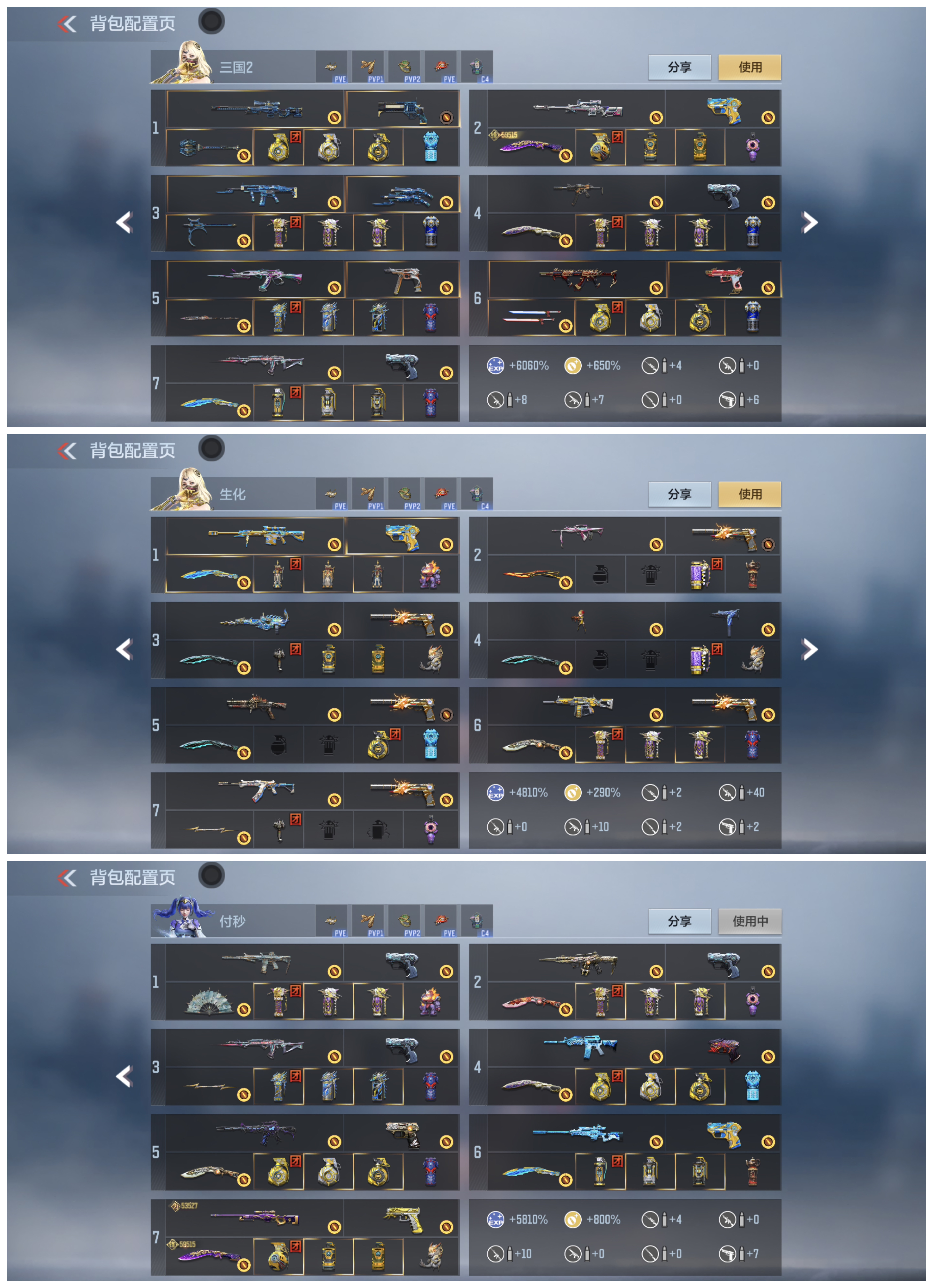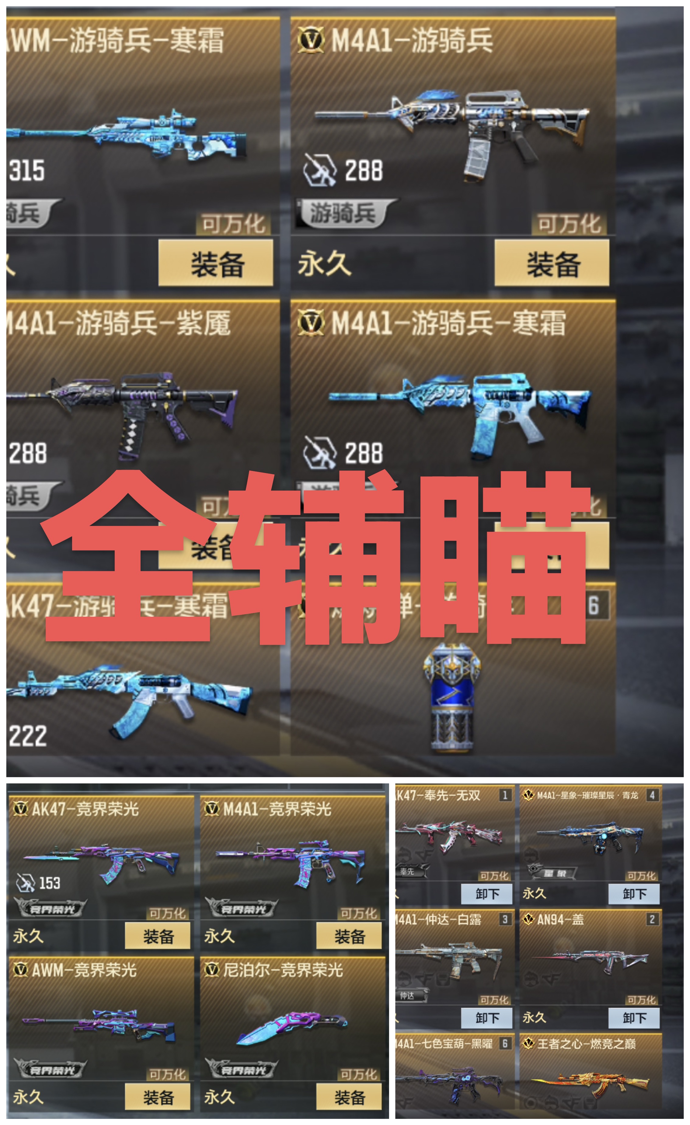 其他:awm游骑兵寒霜、m4游骑兵紫魇、ak游骑兵紫魇、七色宝葫黑曜等蜻蜓98k