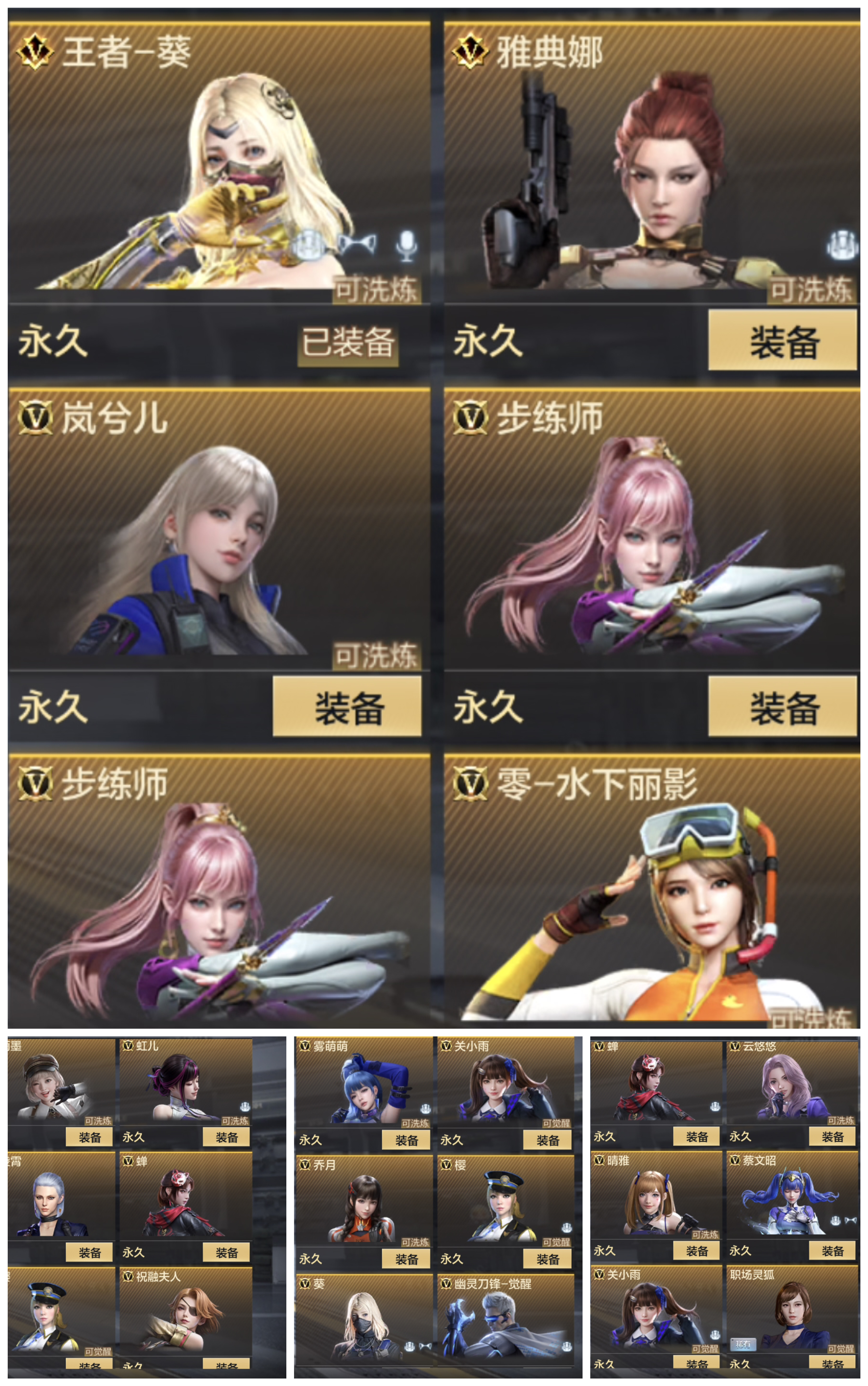 角色:蔡文姬、王者葵、蝉、雅典娜、全女团(悠悠、晴雅+全惊蛰皮、雨墨雾萌萌、岚兮儿)等
