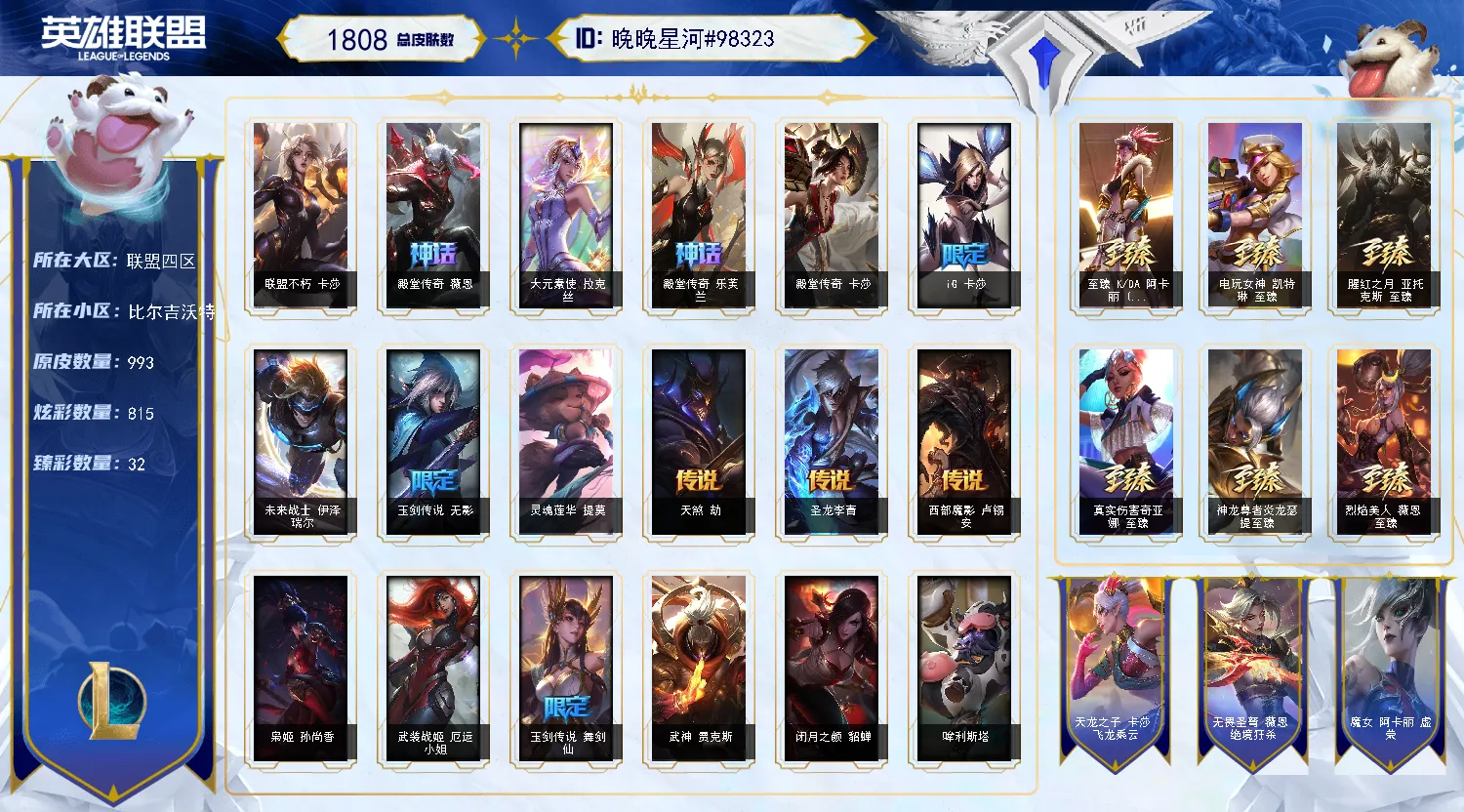1806质量皮丨uzi签名联盟不朽卡莎丨氪金神话幻想劫丨云顶莲花狐狸棋盘丨81神话丨冰雪节皎月梅尔