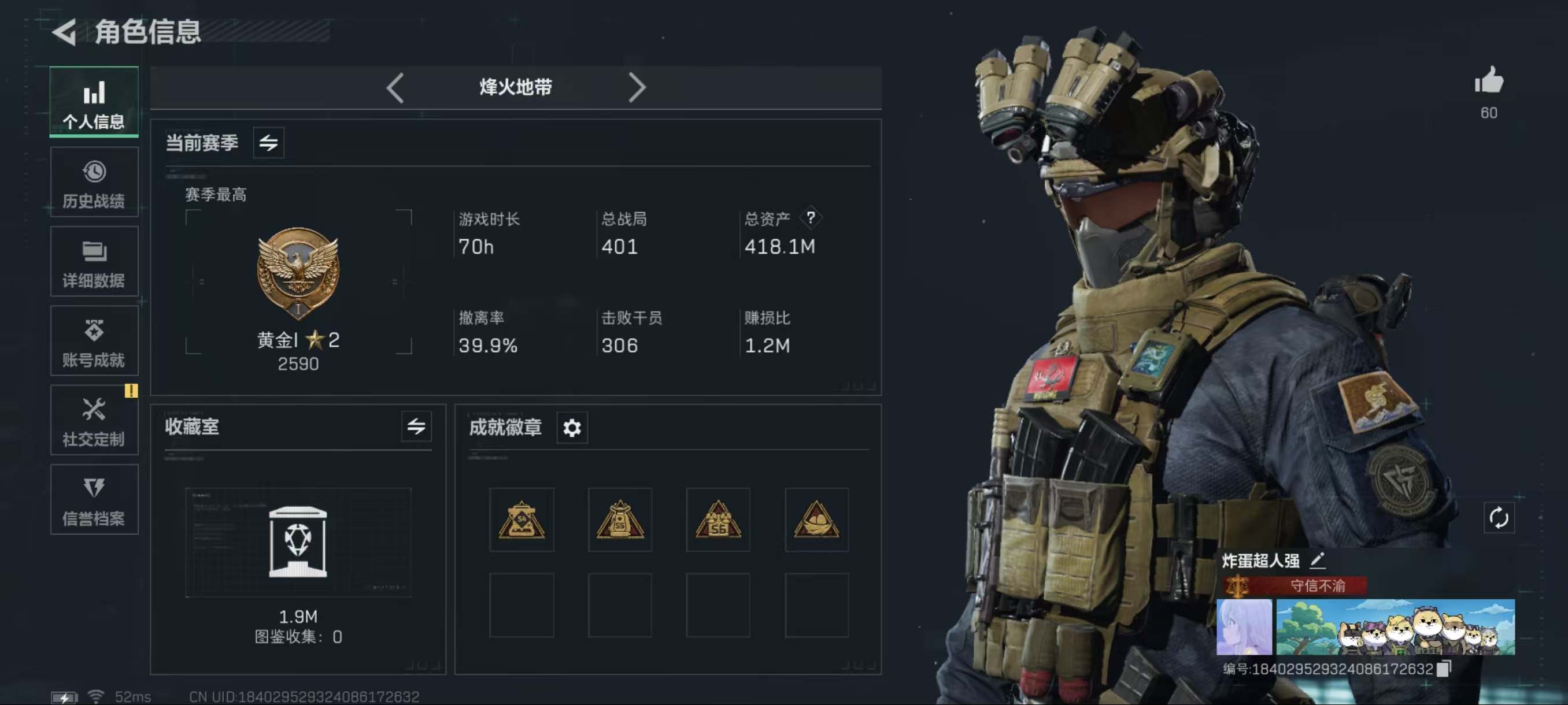 - 烽火地带段位: 黄金