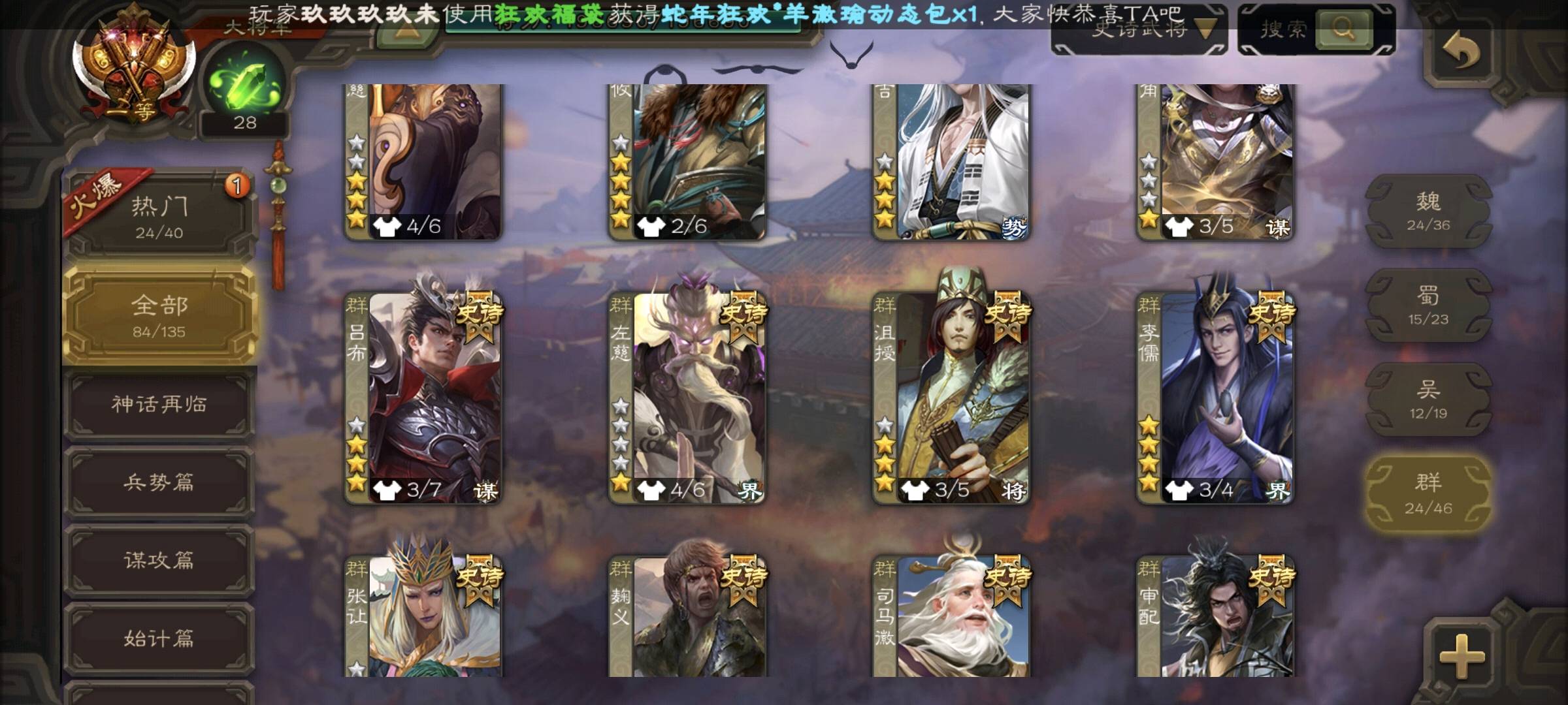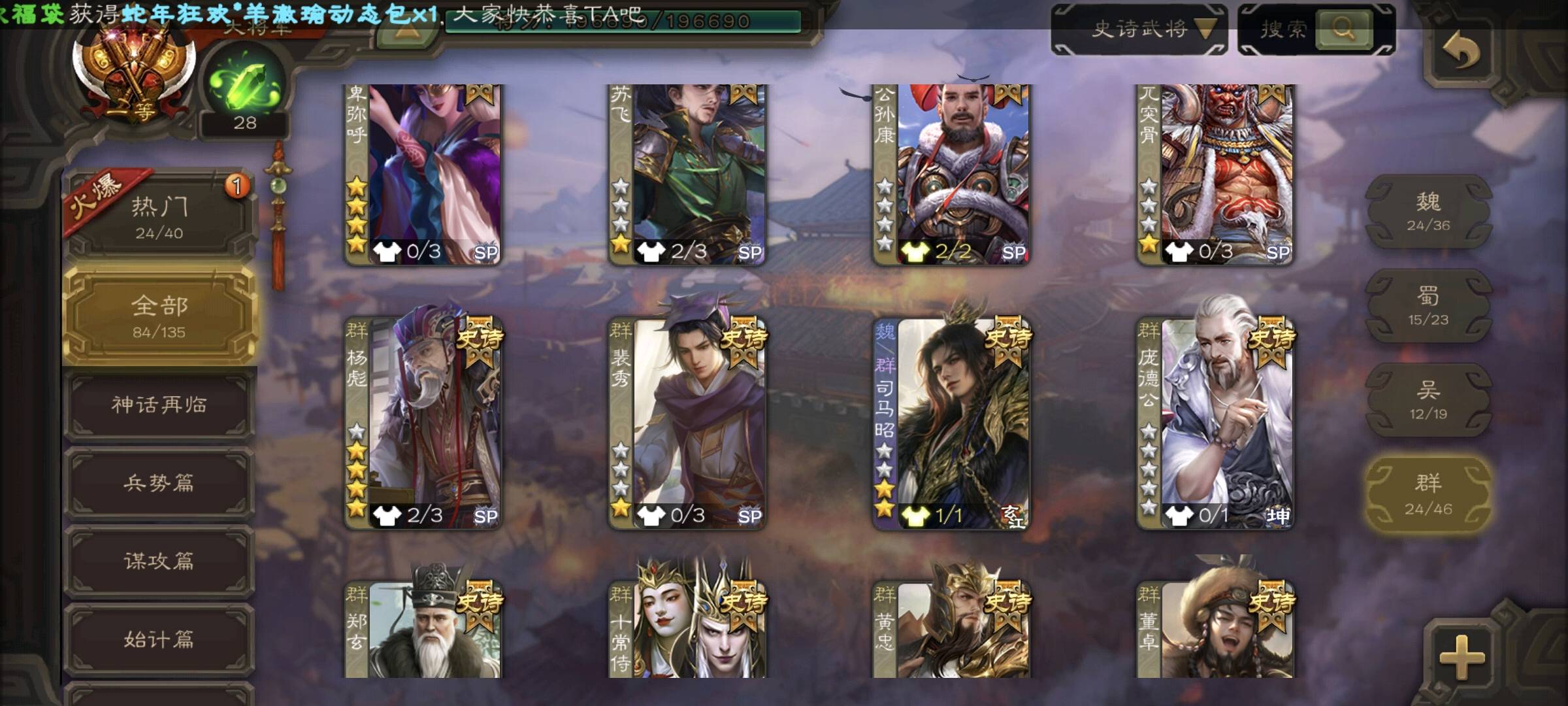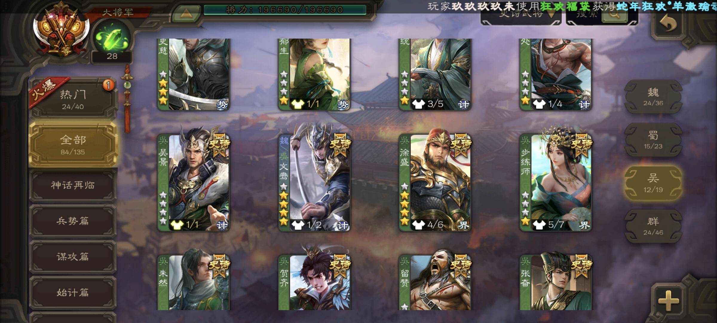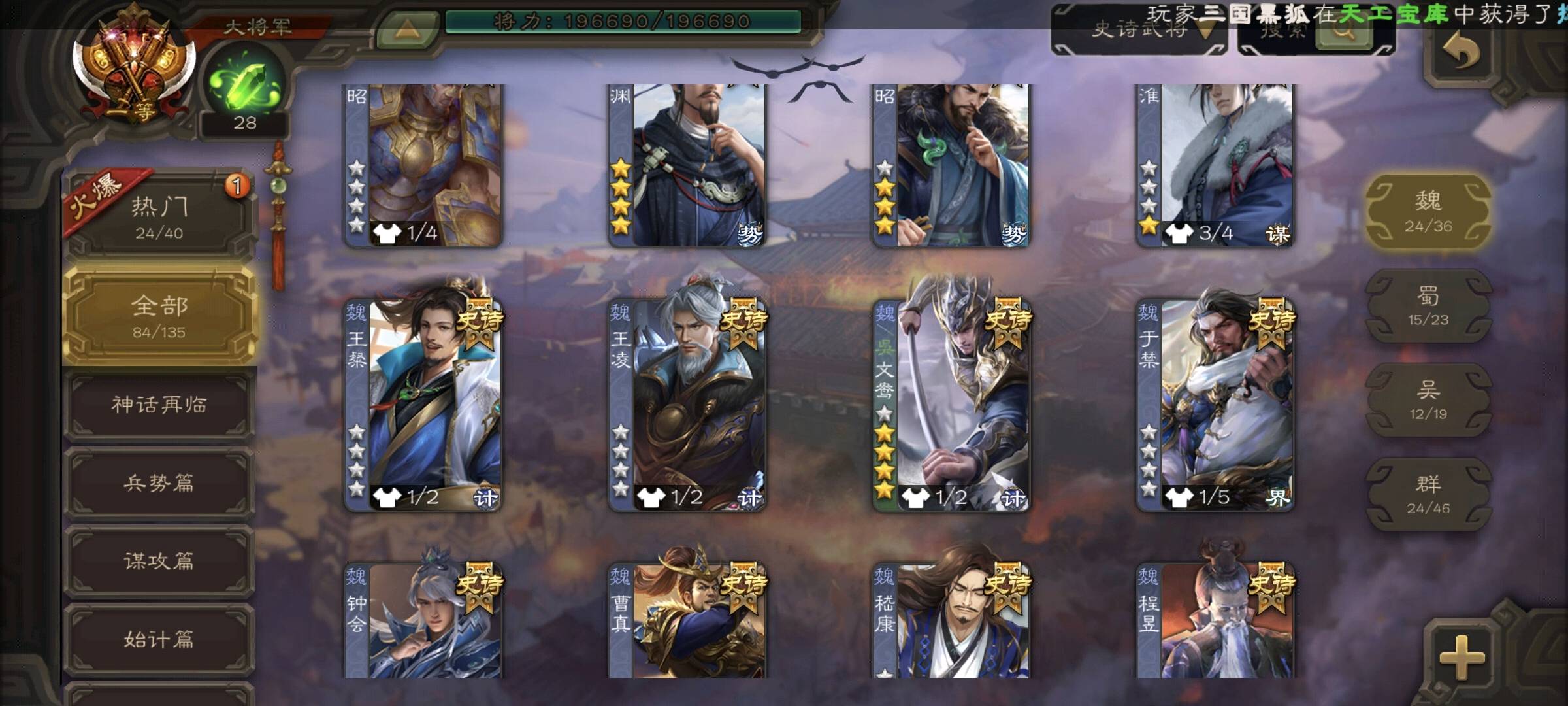 【全平台】 有花有三卡【木木】84史诗势国渊/势魏延/势太史慈?势于吉/回廊十常侍回廊张奋/排位173将