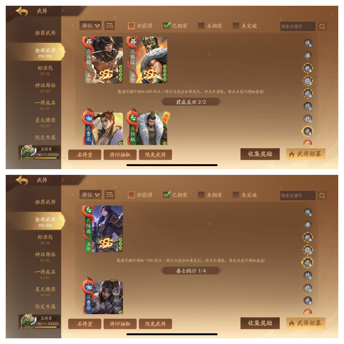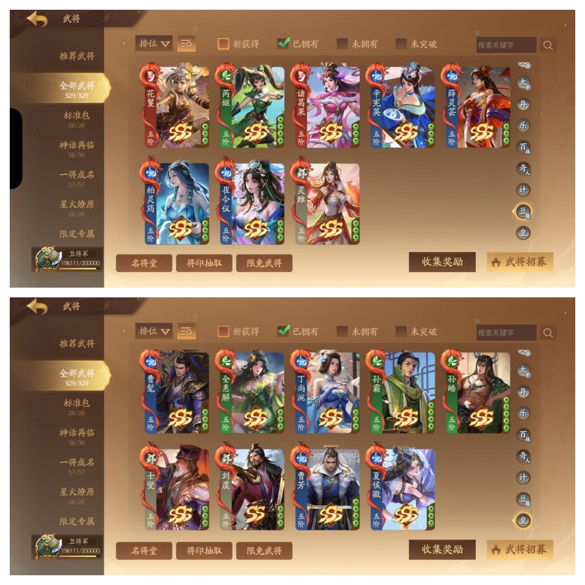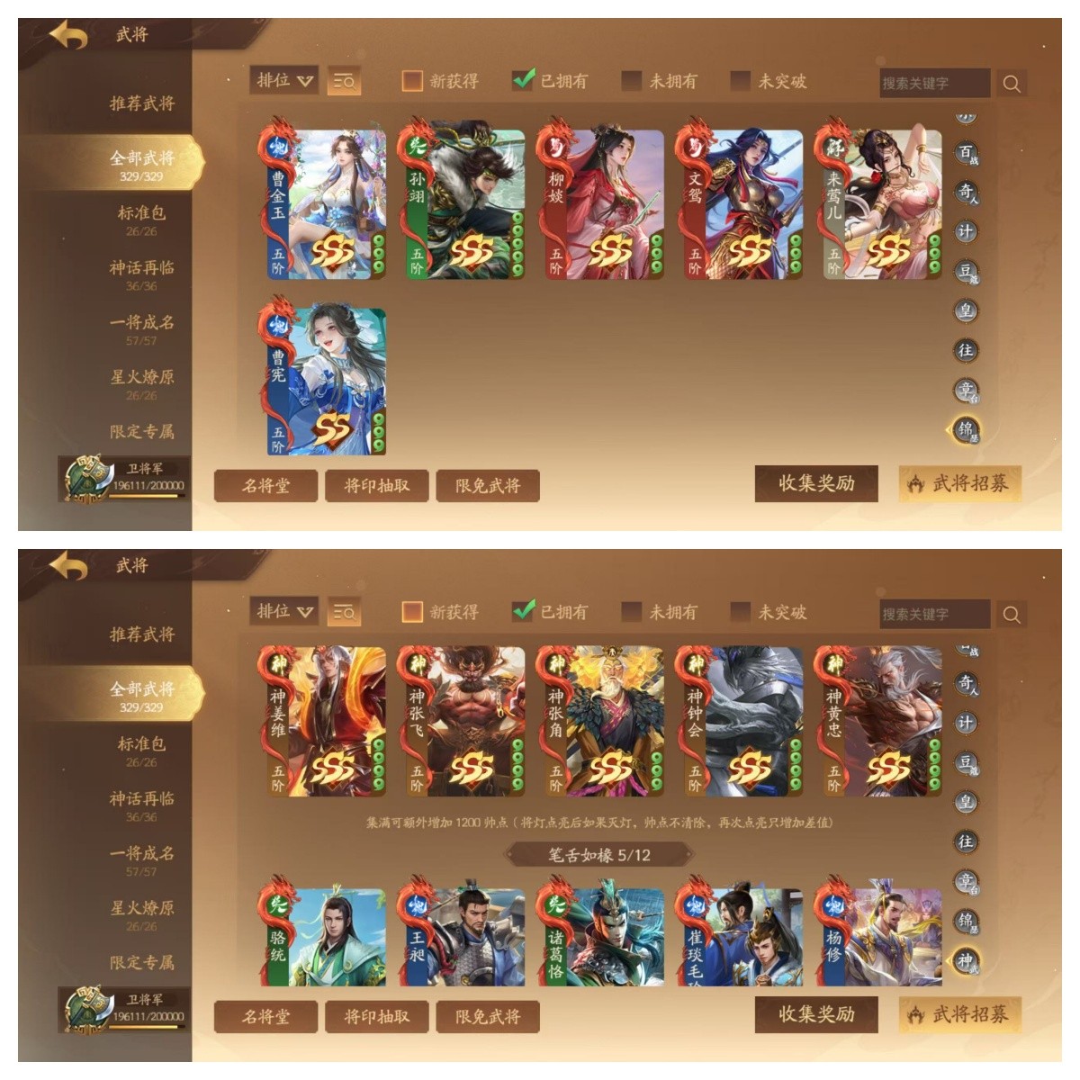 【三国杀一将成名官服三端互通/安卓苹果手机电脑网页平板都可以玩】/卫将军400将/武陆逊/五威/六神武/谋姜维/威马超/威曹丕/威张辽/威孙权/夏侯玄/许靖特效动/二刘特效动/崔令仪/夏侯徽/柏灵筠/柳婒/曹芳/神张飞/神黄忠/神姜维/神钟会/神张角/谋曹昂/曹金玉动/周夷动/孙翎动/SP甄姬/周宣/关索动/张琪瑛动/星袁绍/星袁术/星文丑/周不疑/文鸳/曹宪/孙霸/丁尚涴/薛灵雲金蛟动/和尚/蒲元/文钦/胡遵/乐蔡文姬动/乐周瑜/乐祢衡/乐貂蝉/张曼成/诸葛均/刘巴/袁胤/吉平/黄承彦/孙綝/陈珪/庞宏/黄舞蝶动/张嫙/张奂/许劭水龙动/马均/陈式/等各种