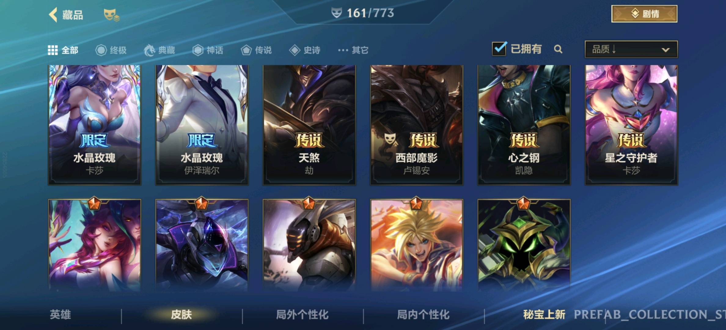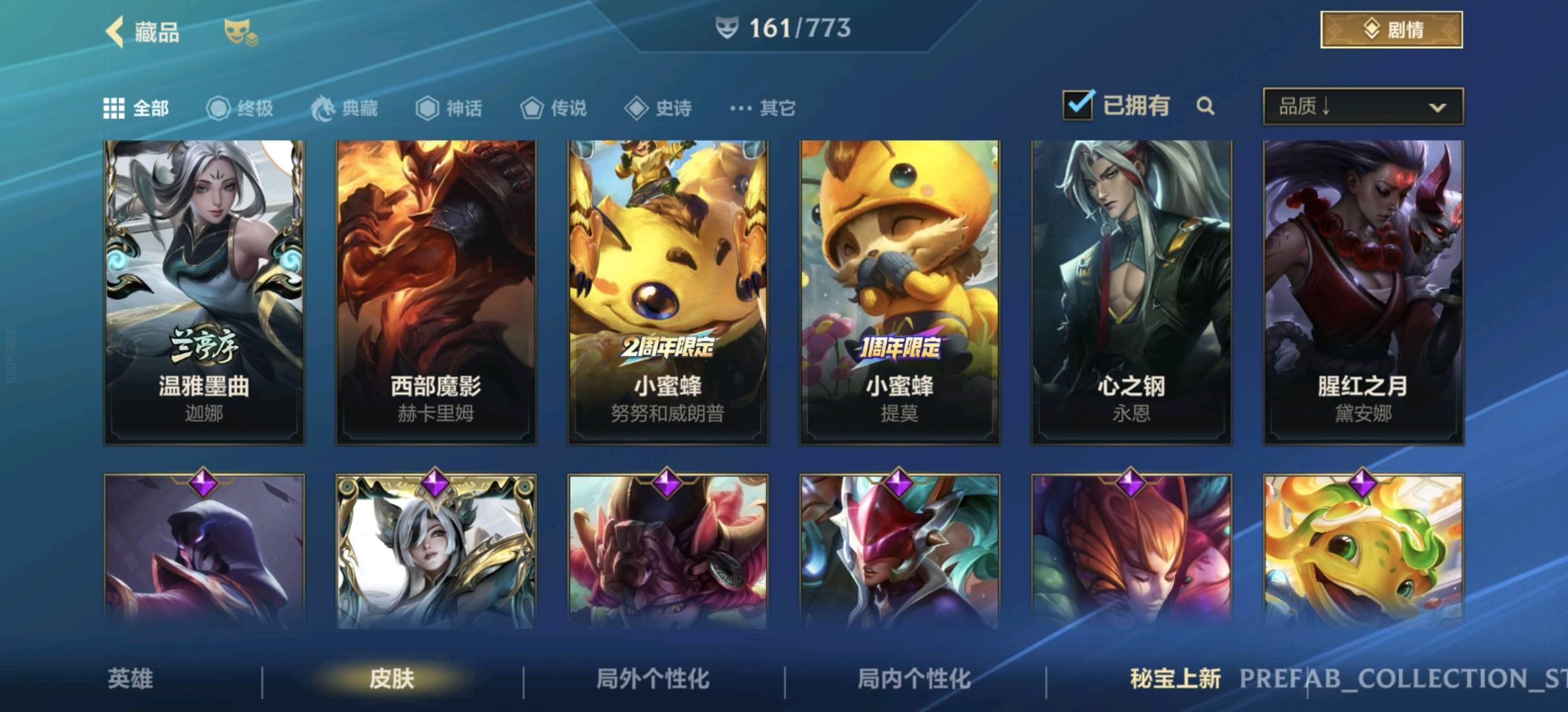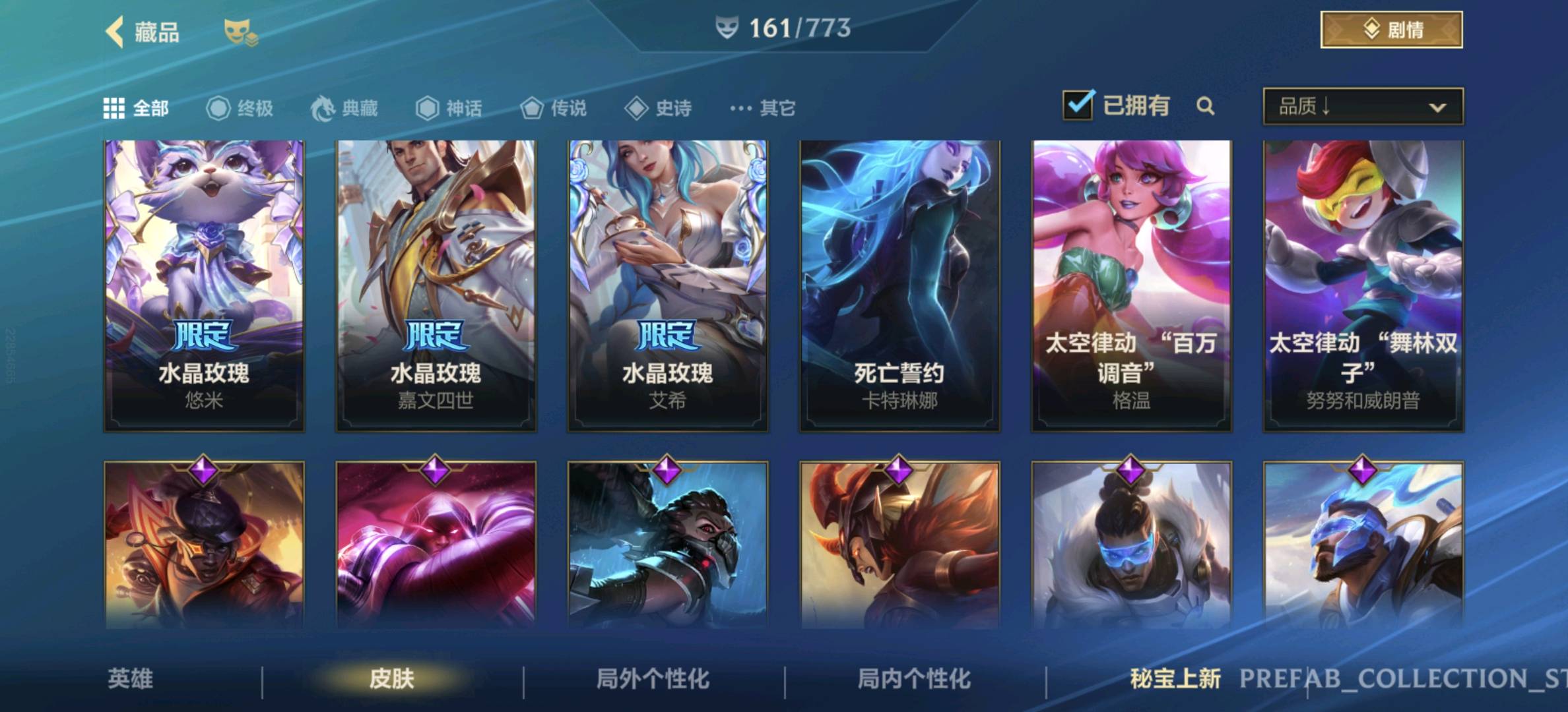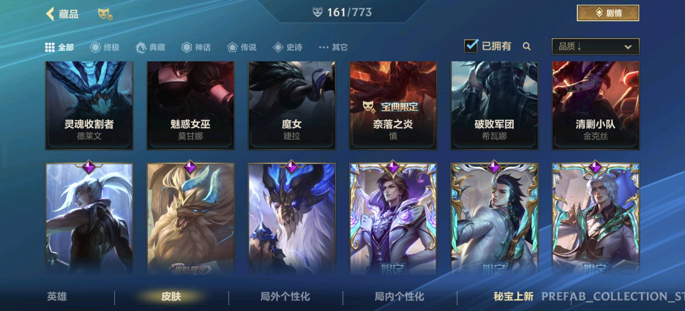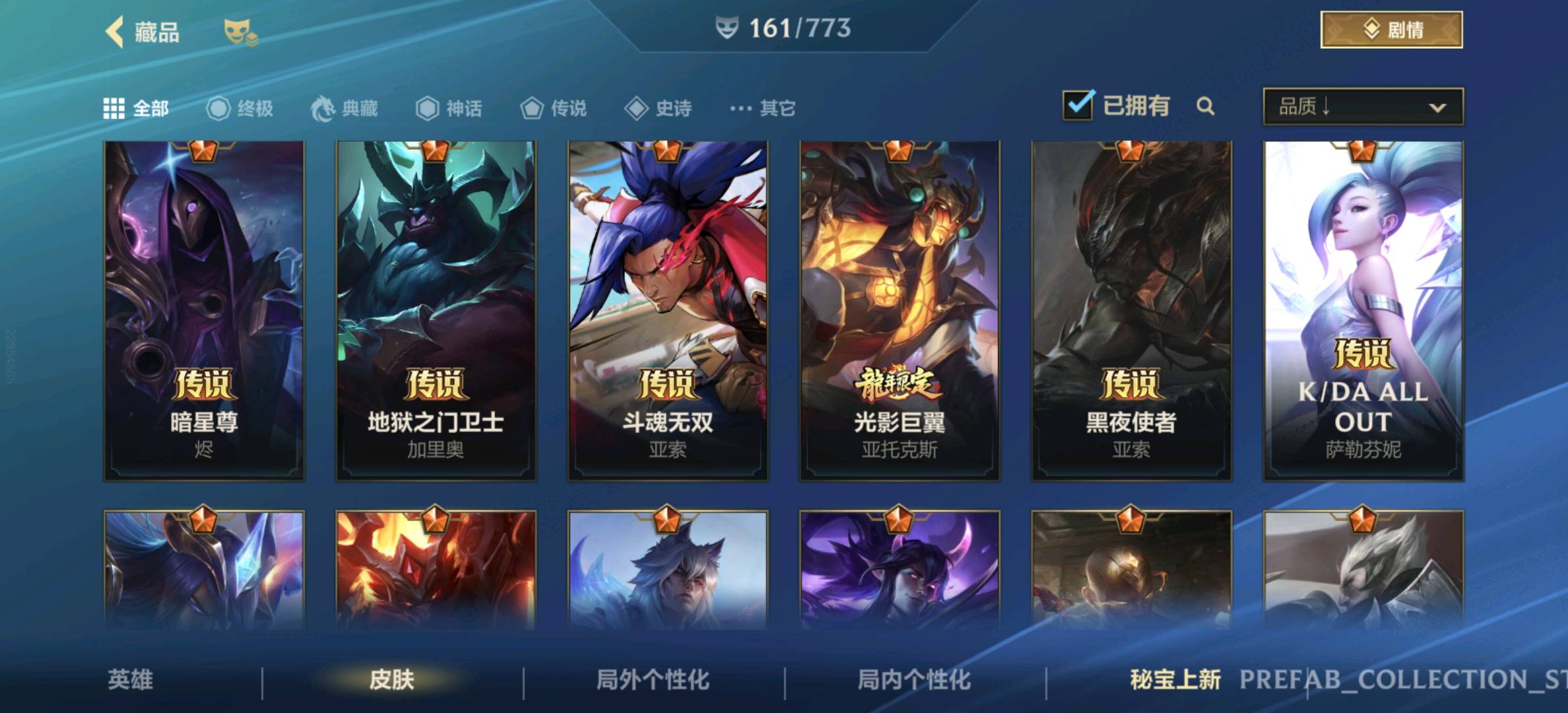 【安卓】 【允许排位】161皮,23传说,82史诗,3神话,水晶玫瑰套,黑夜黎明,兰亭序