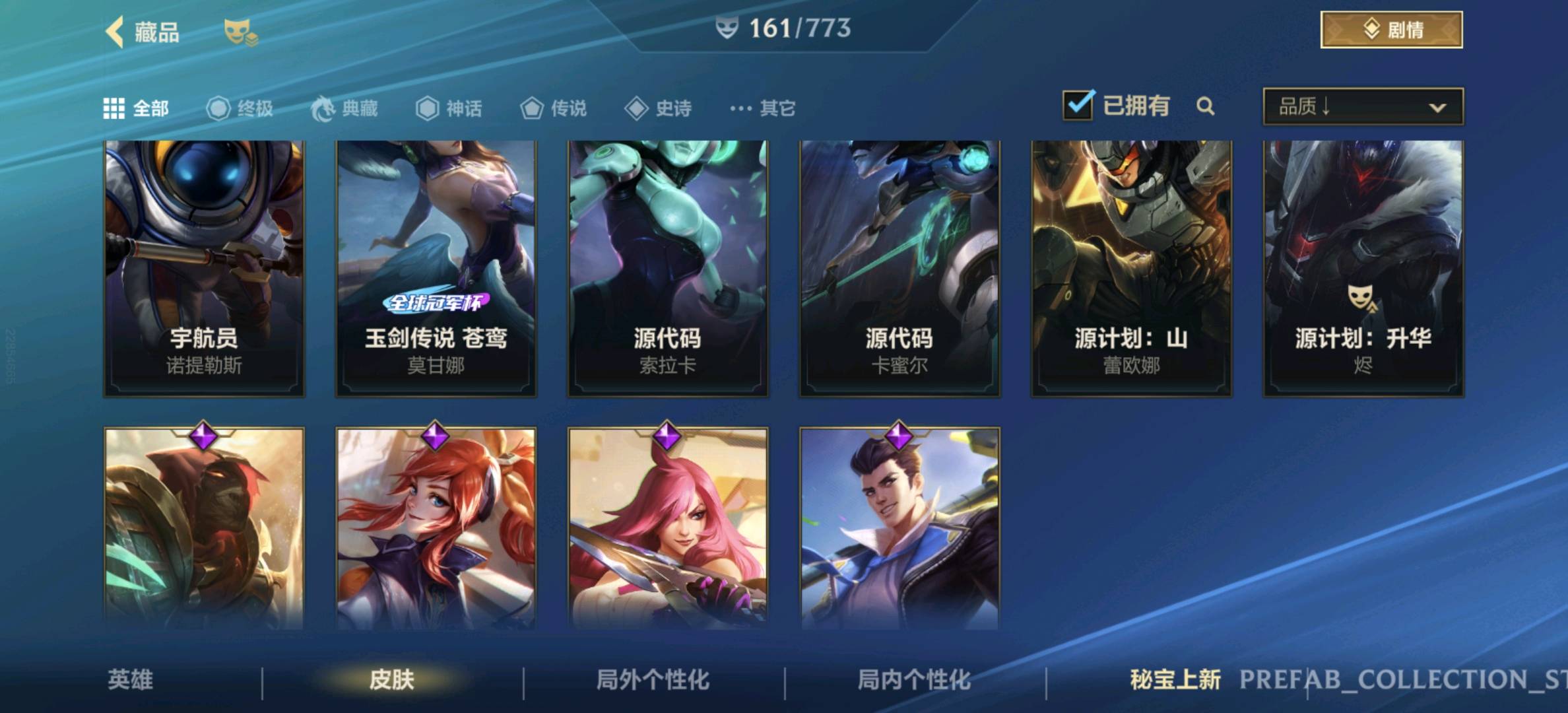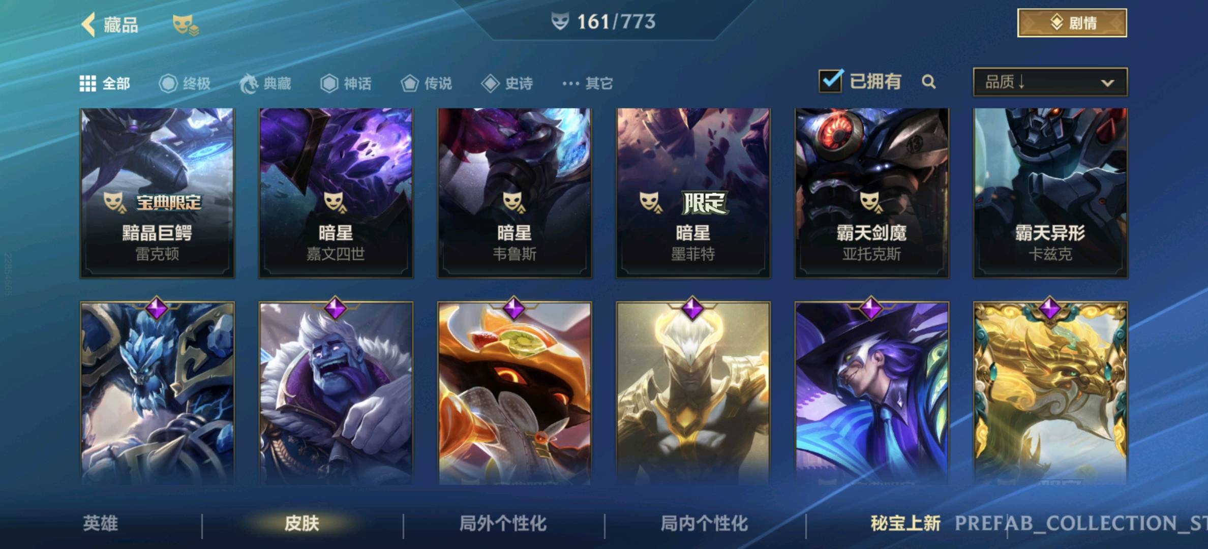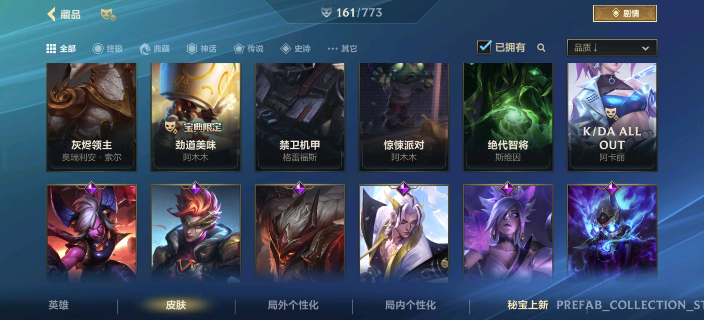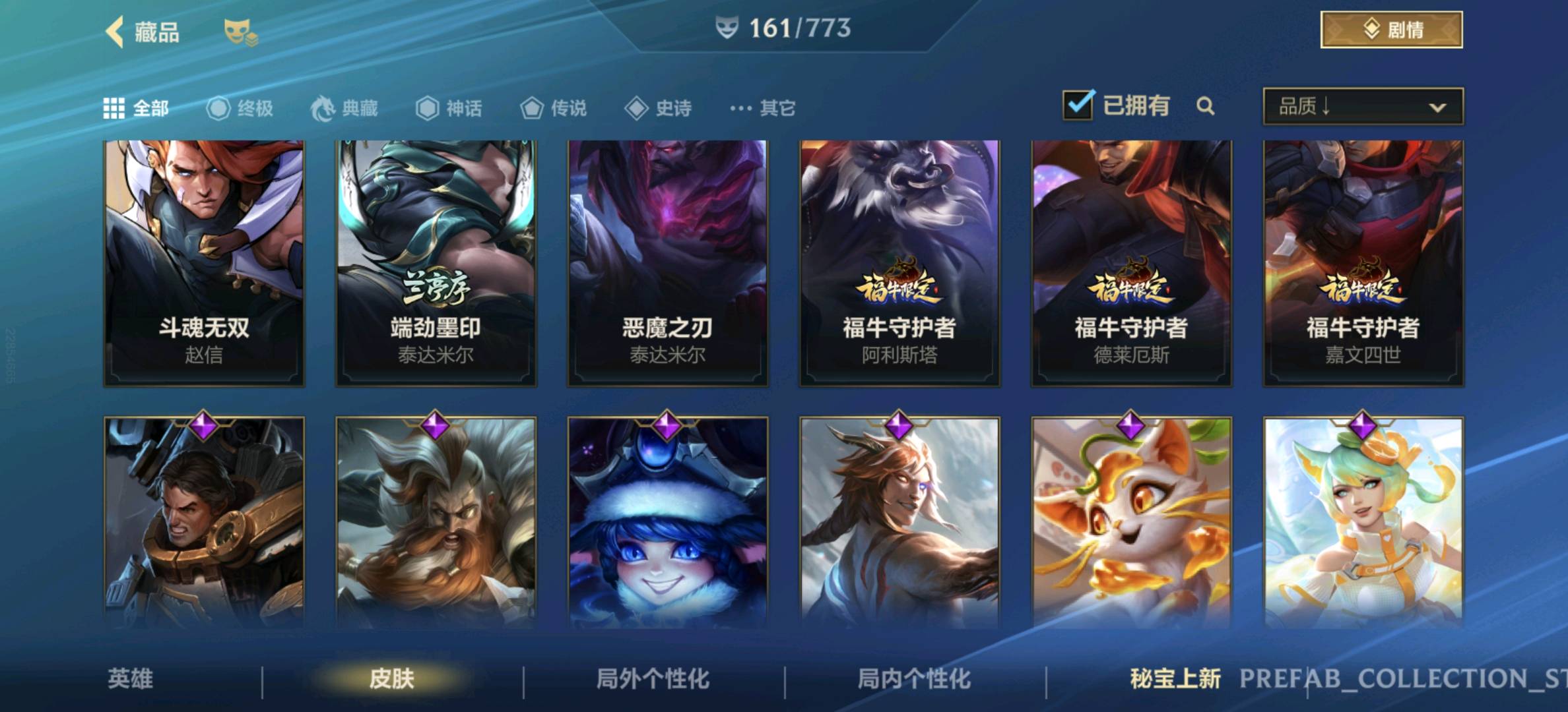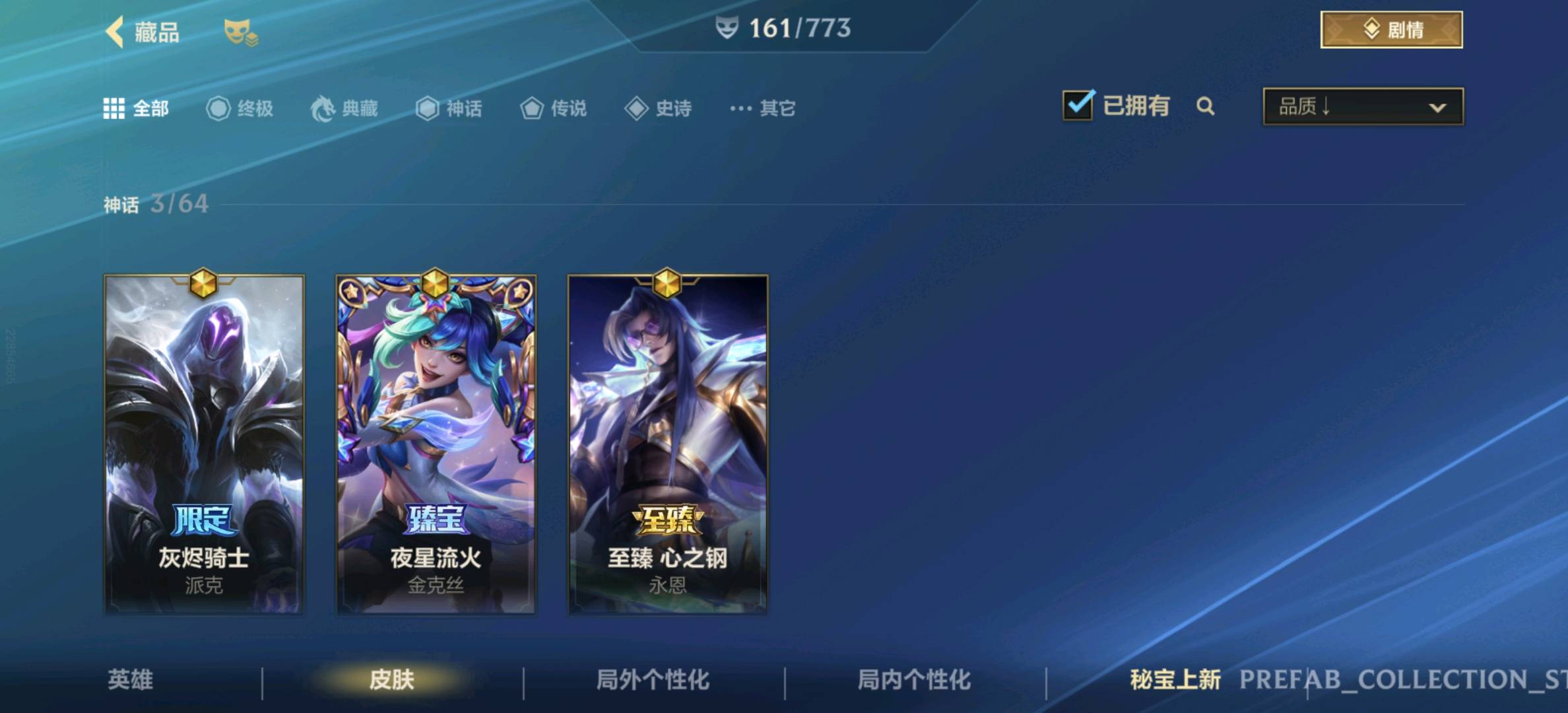 【安卓】 【允许排位】161皮,23传说,82史诗,3神话,水晶玫瑰套,黑夜黎明,兰亭序