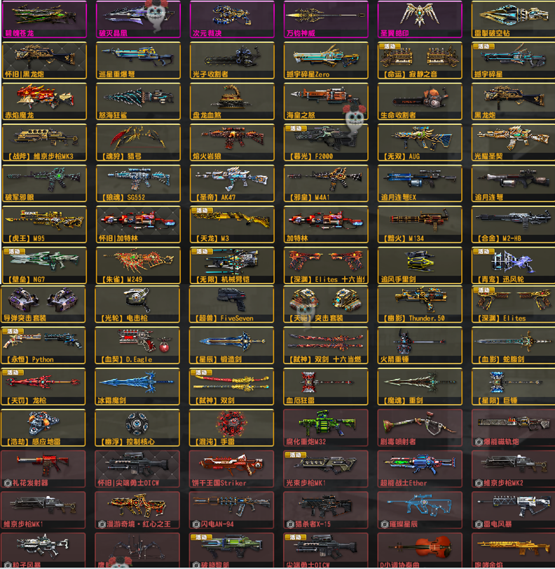 3. 更新:已去黑雾!光束1,维京全套,双闪电94野牛汽锤!赛季武器有第1,14,16到22赛季!配件武器最少5阶,强化武器全满