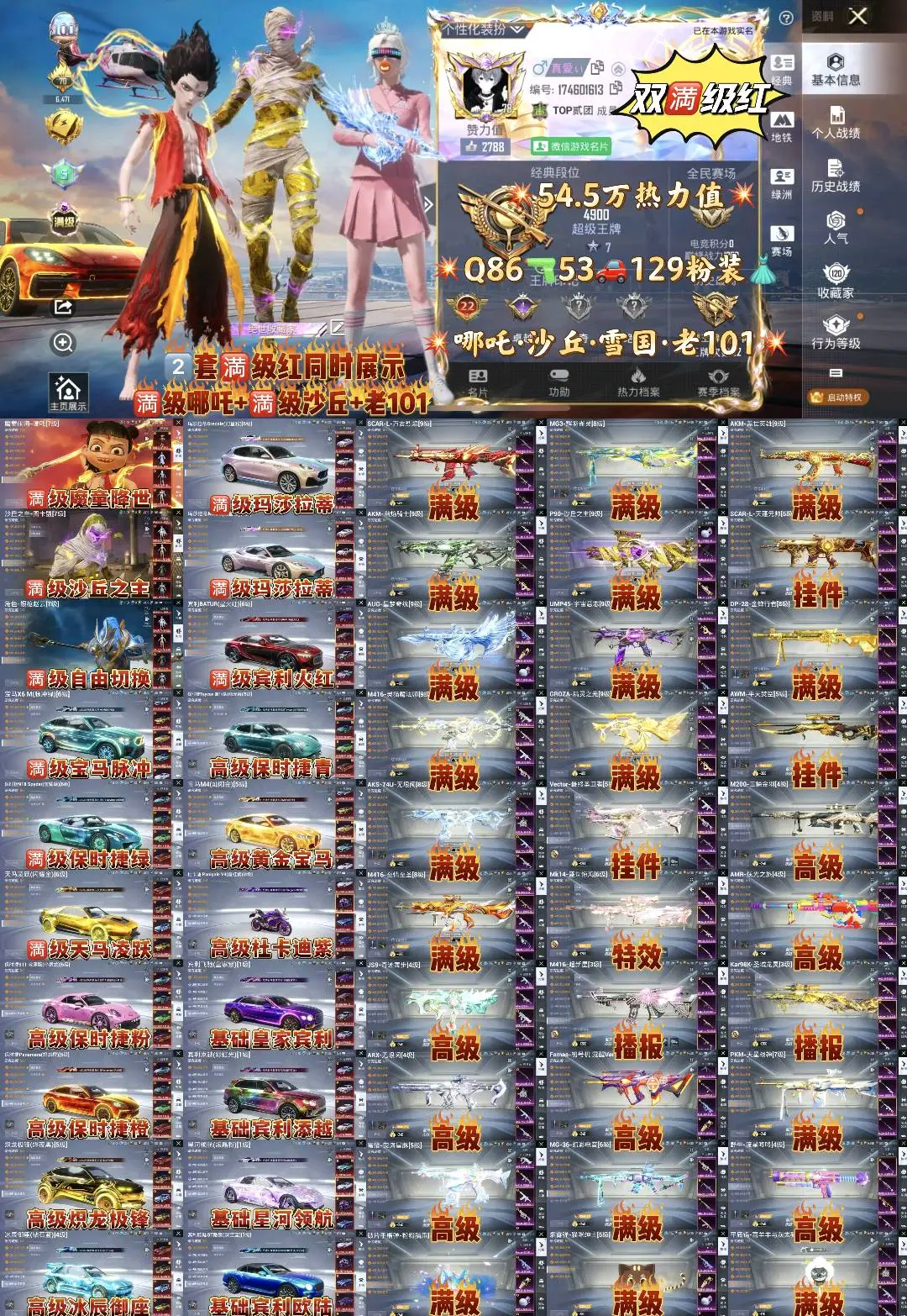 【苹果】 双满级红/新满级霜月狼主 满级云歌 天马神君 满级哪吒/满级图卡盟/10把满级枪/6台满级保时捷/