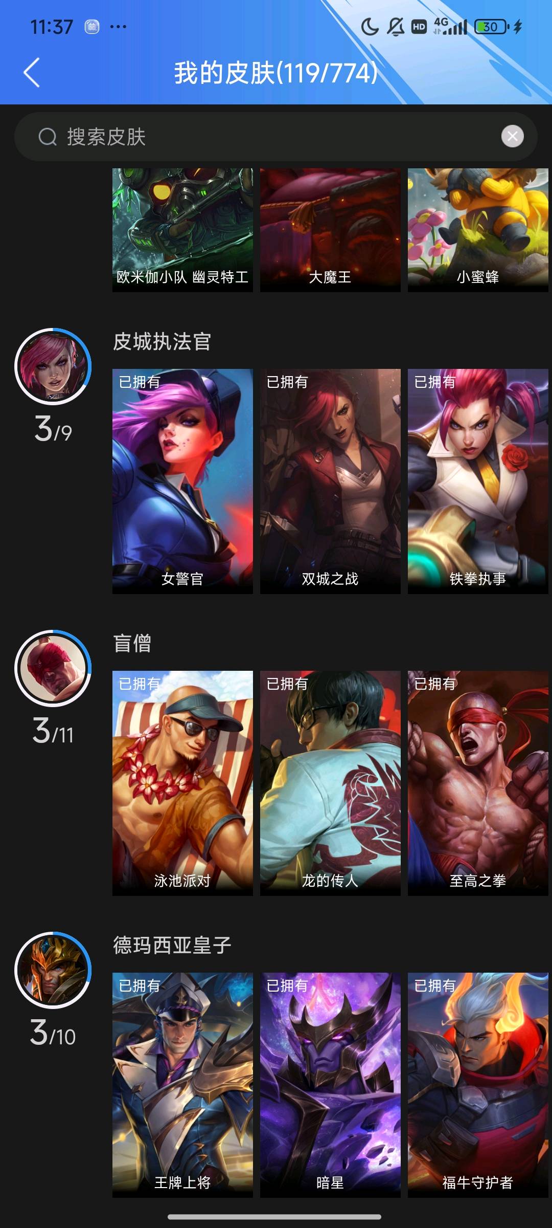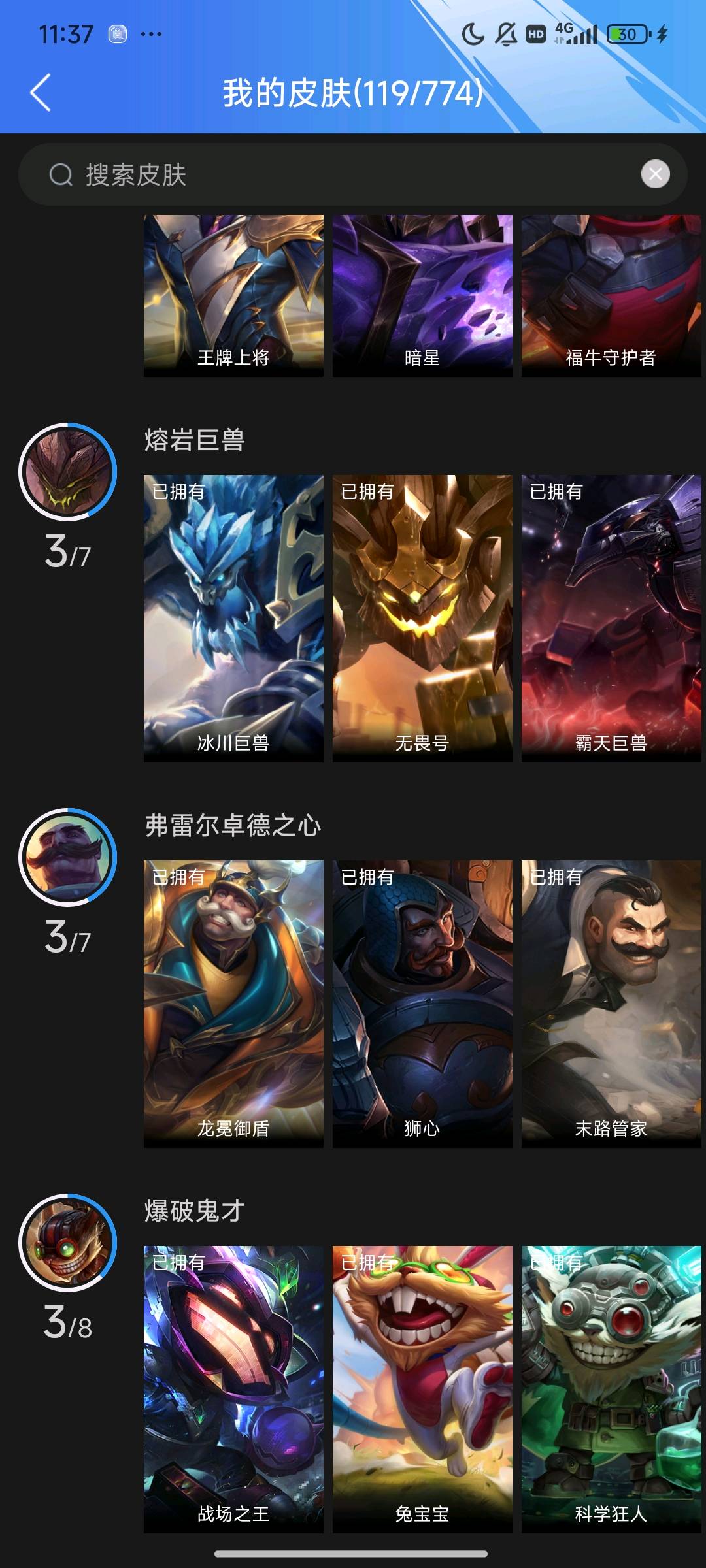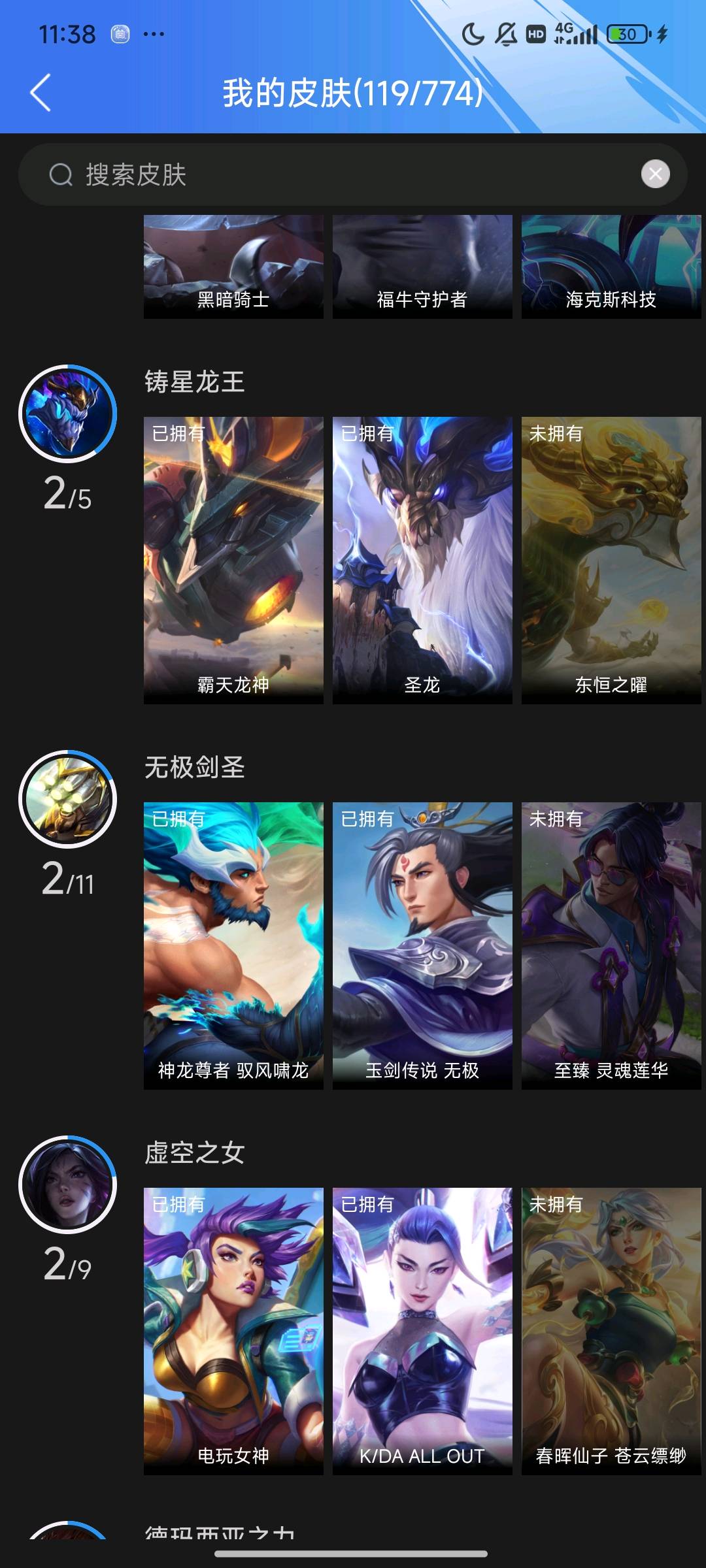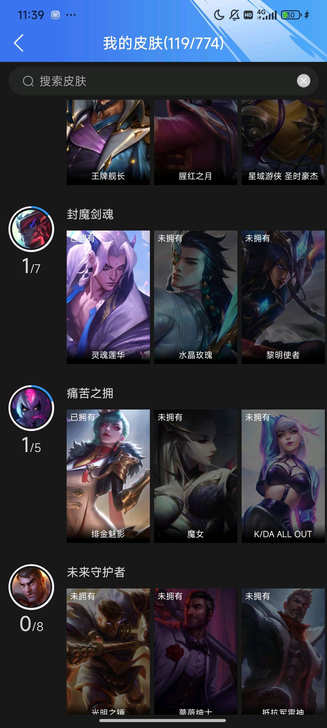 5传说 40史诗 119皮肤