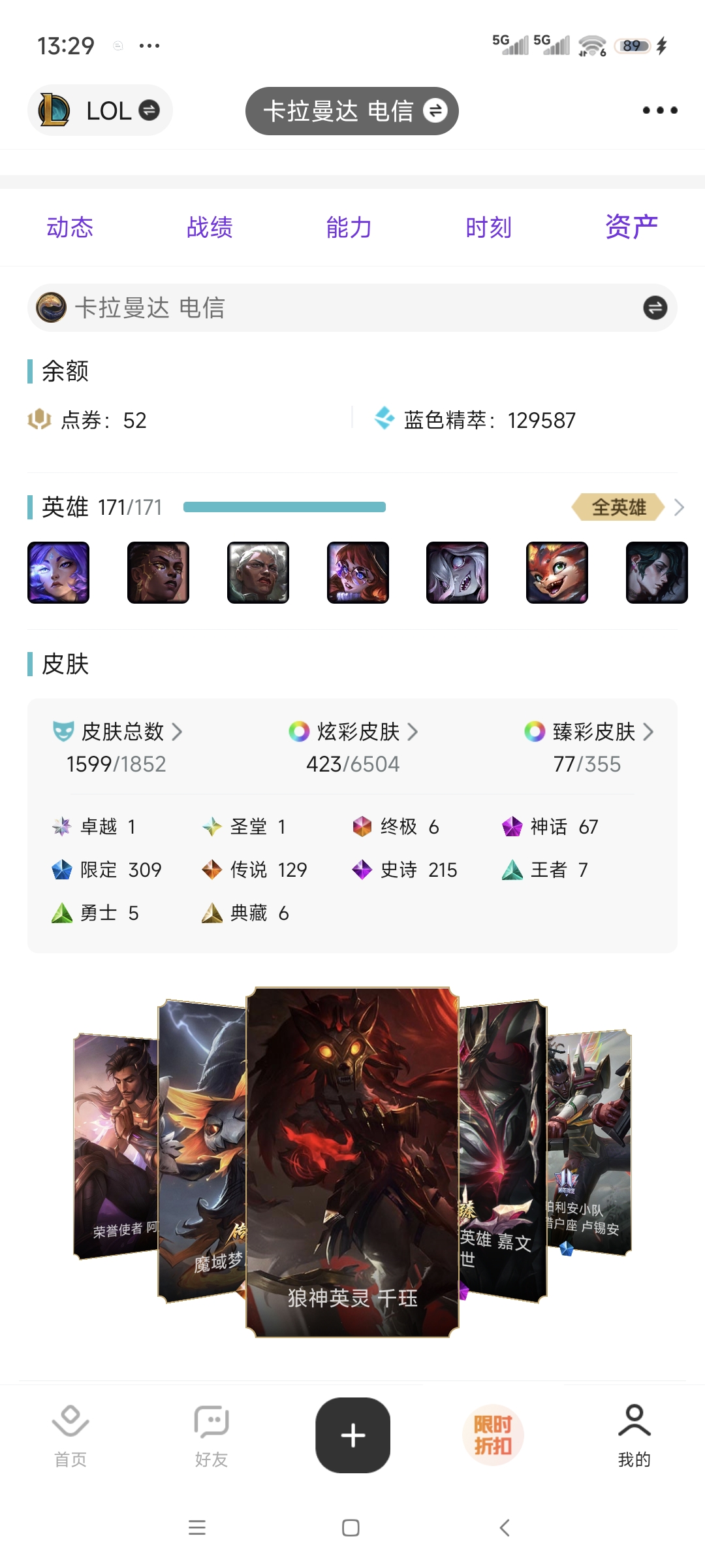 卡拉曼达原皮1600/️全英雄圣堂铁男/幻想狐狸/幻想女枪/殿堂卡莎/6终极️/67神话至臻/