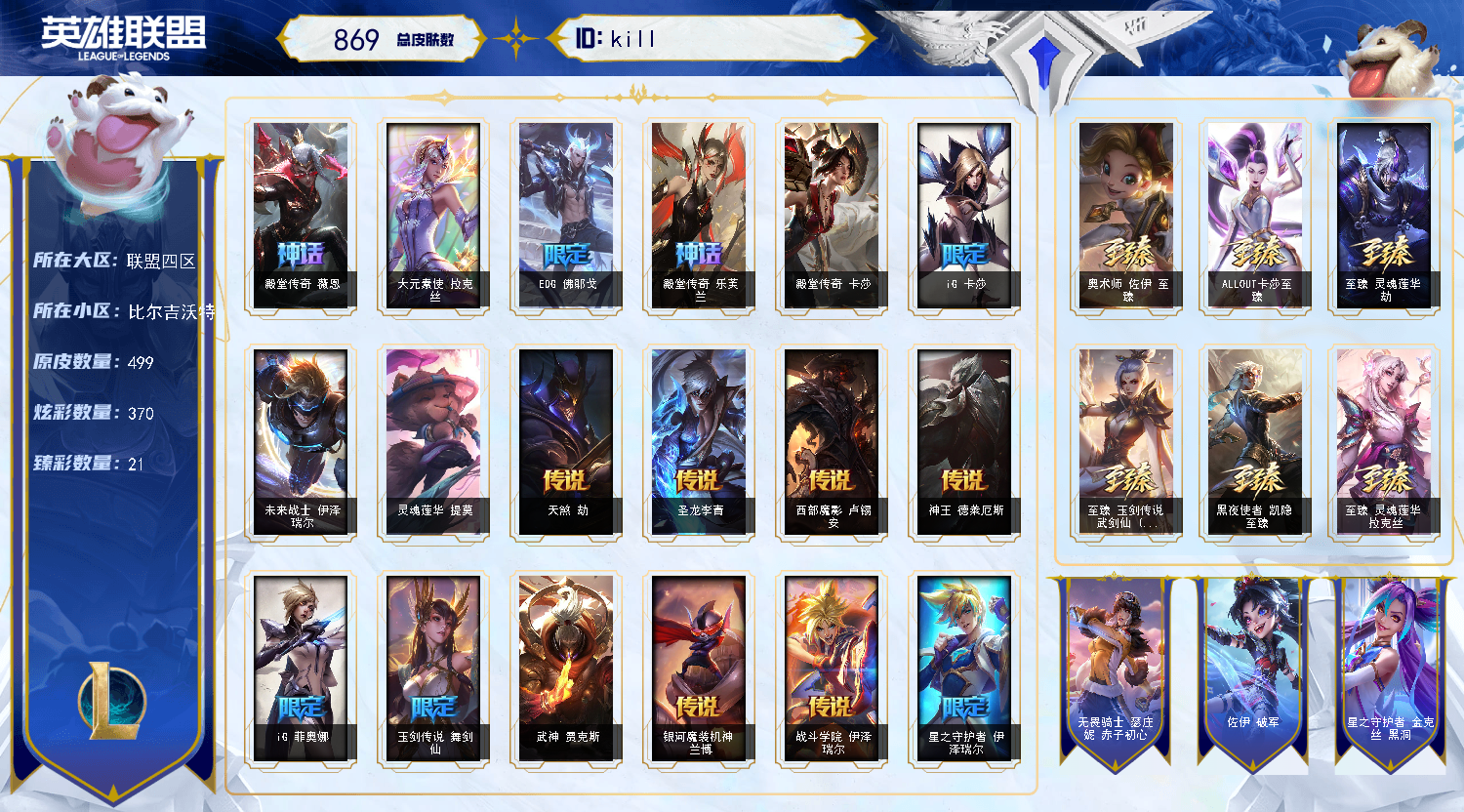 【比尔吉沃特】855P丨31神话至臻丨殿堂卡莎丨神龙李青亚索丨EDG冠军套丨北极星神戴安娜丨大元素使