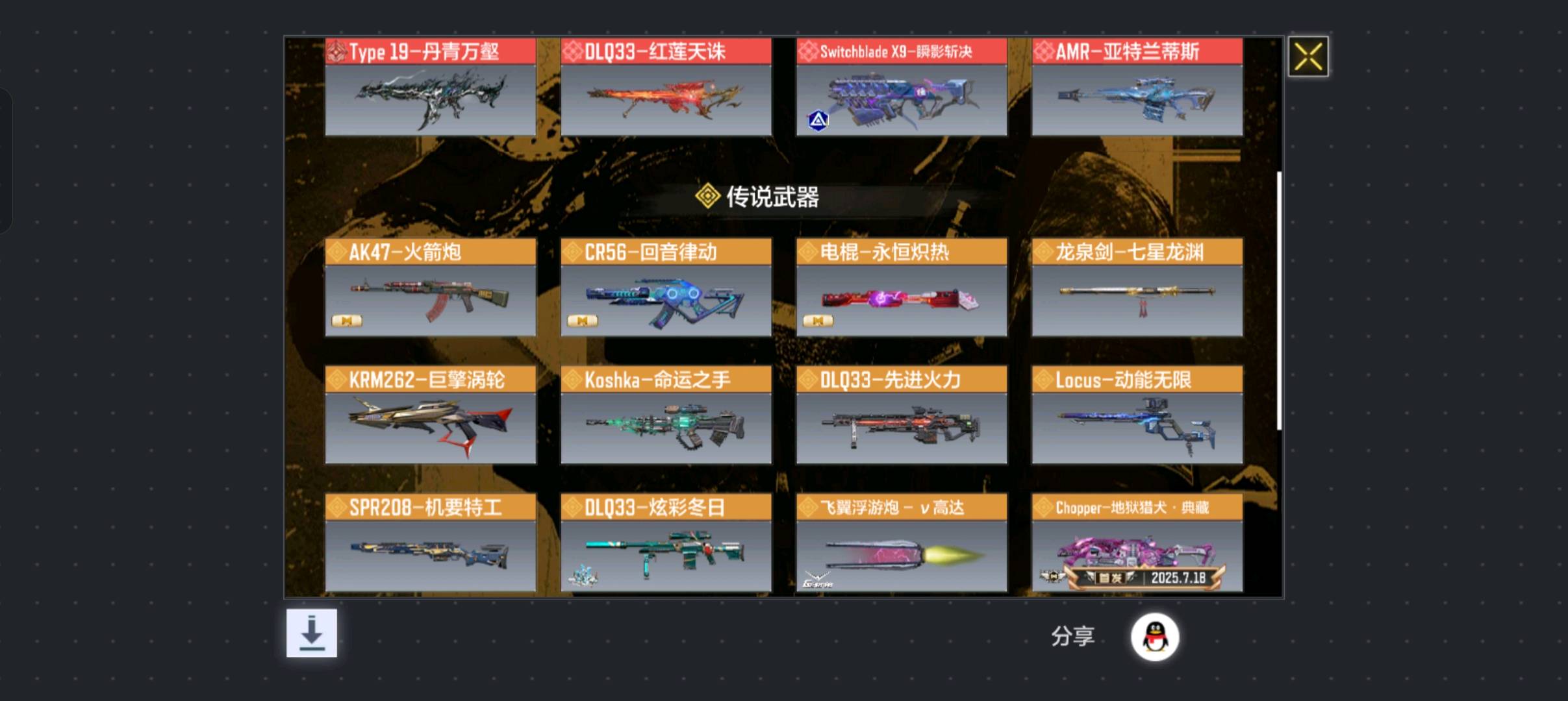 【安卓】 q区 一个满级神话,三个未满级神话,6把传说皮,热门狙皮,两个典藏,龙泉剑,多把突击匕首……